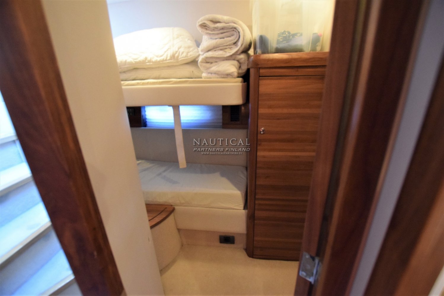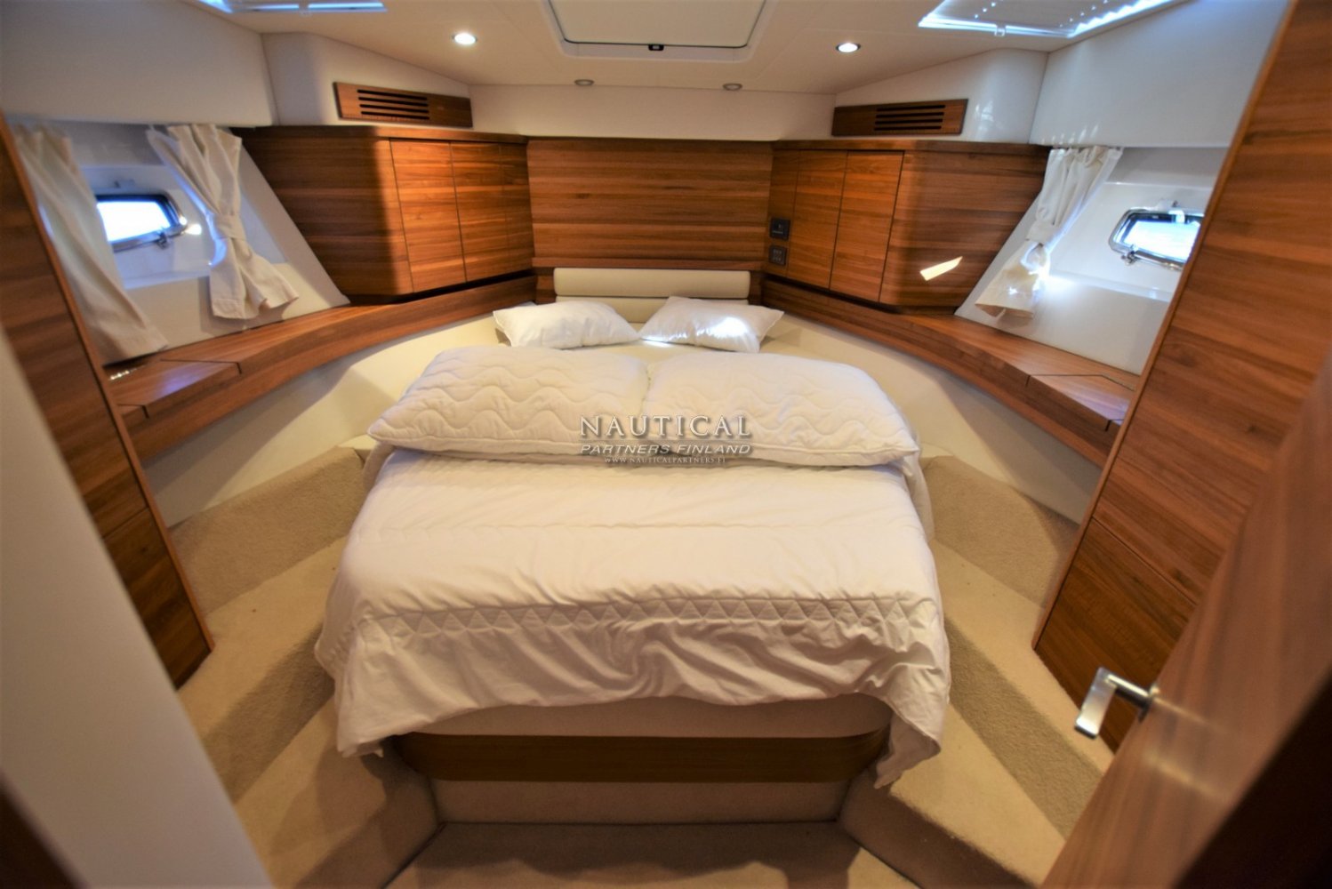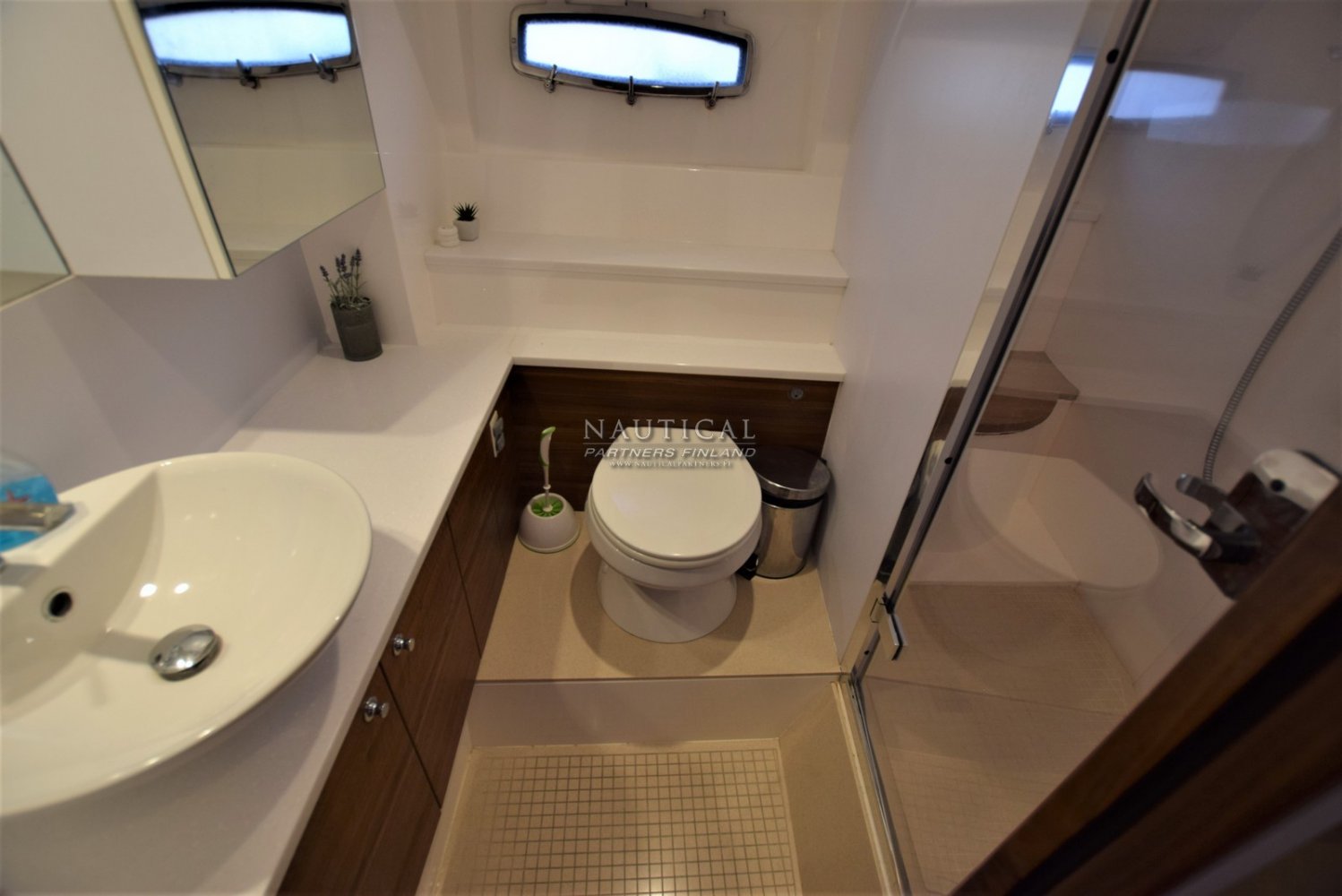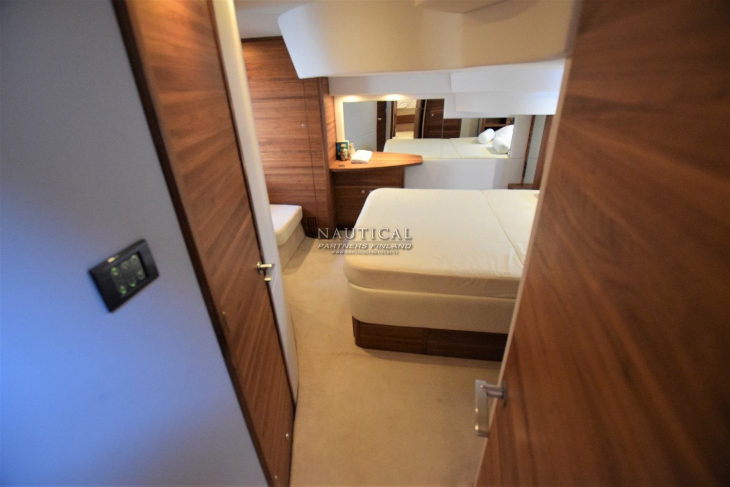 Vaatwasser Vriezer Magnetron Oven Koelkast Koffiezetapparaat Kooktoestel Afzuigkap televisies Stereo Airconditioning Hydraulisch gangpad Zoeklicht op afstand Cockpit tafel Boog zonneklapper Teakhouten dekken Flybridge BBQ met grill, spoelbak, koelkast en ijsblokjesmachine Boegschroef Stuwraket Radar Plotter Stuurautomaat Diepte Logboek Snelheid Elektrische ankerlier + kettingteller VHF Trimvlakken Walstroom + lader Generator Bimini