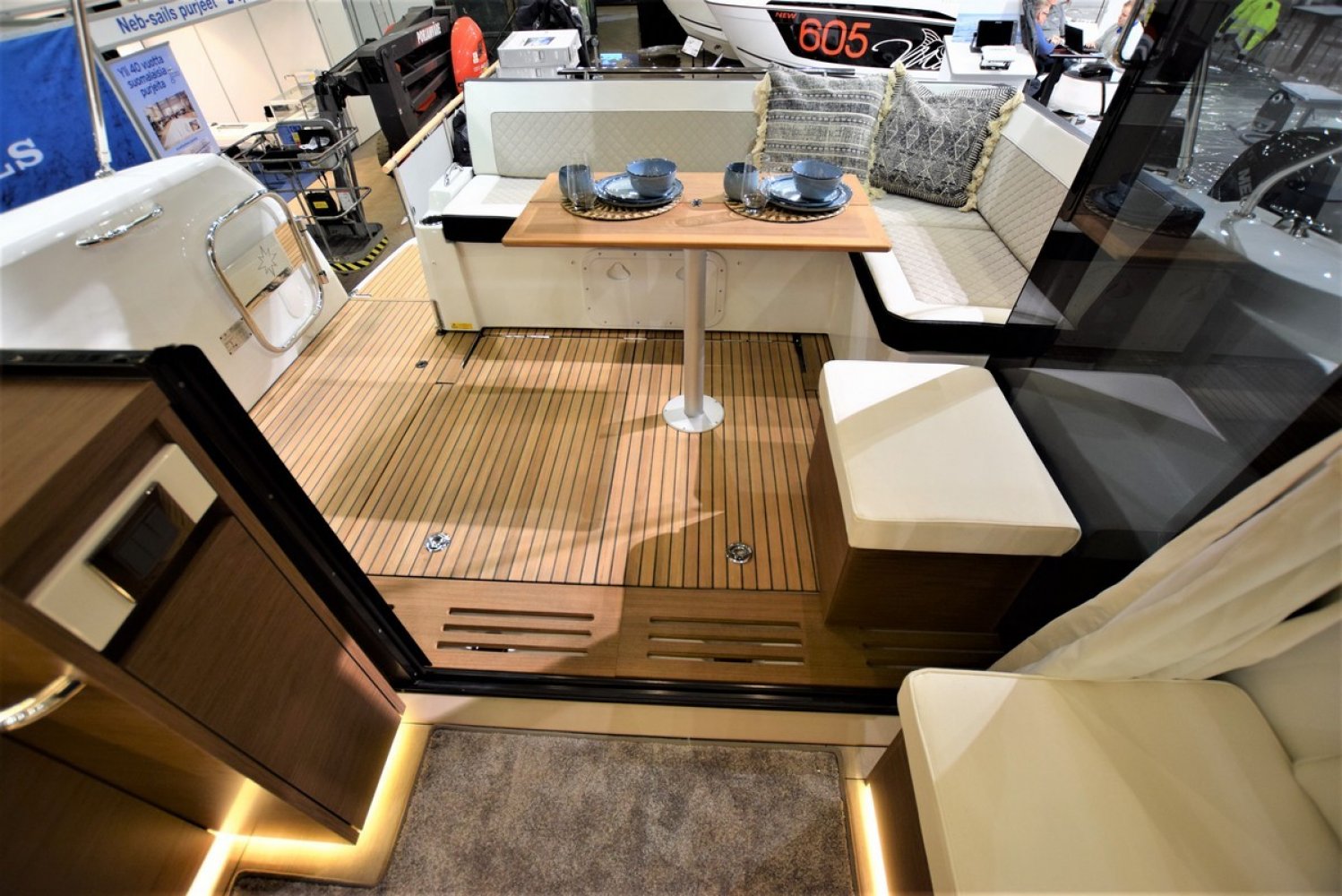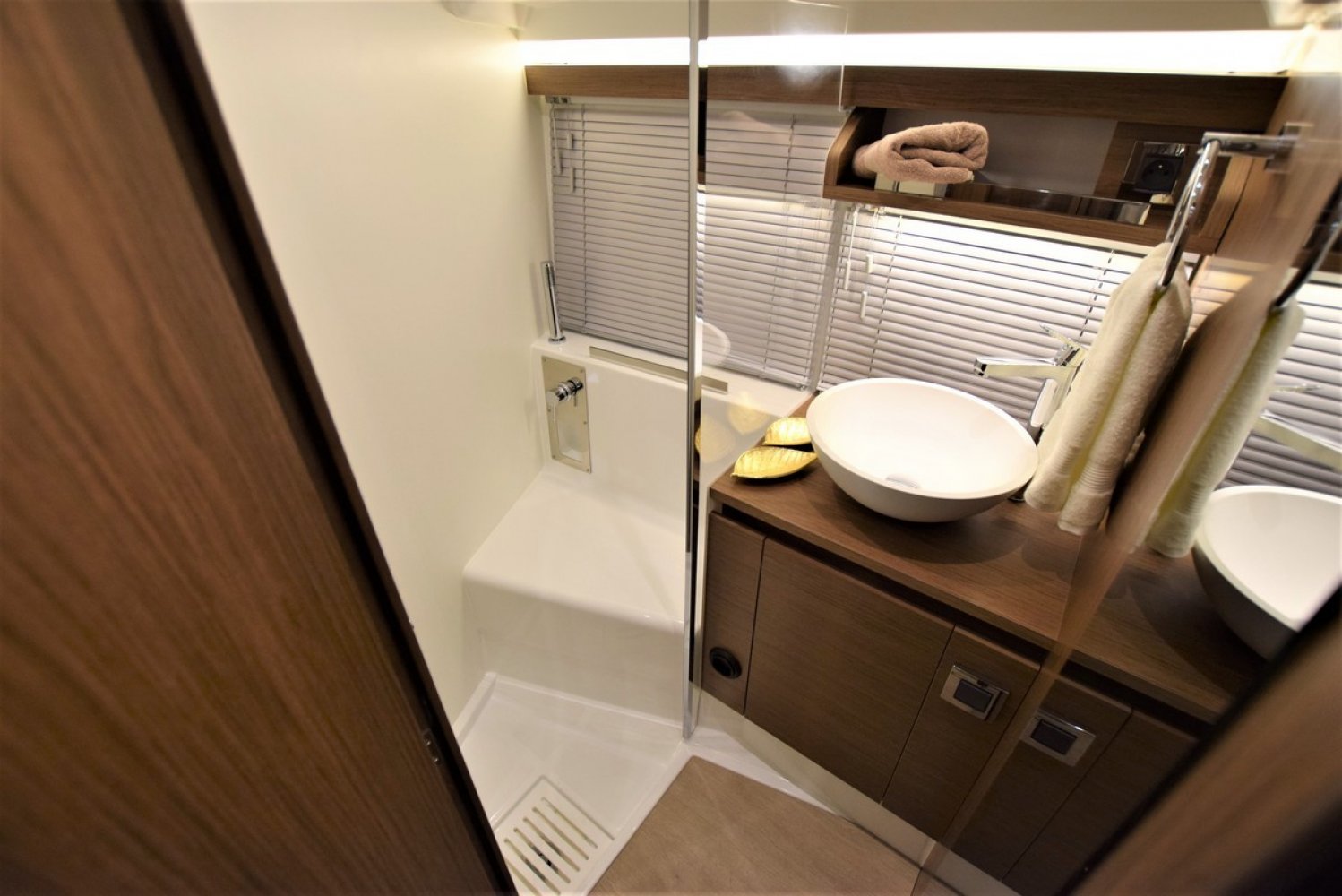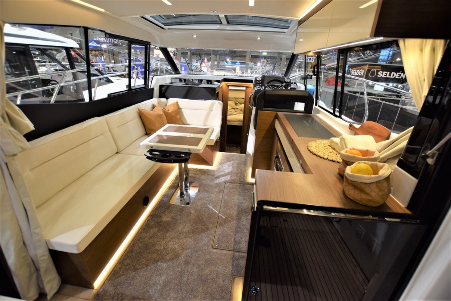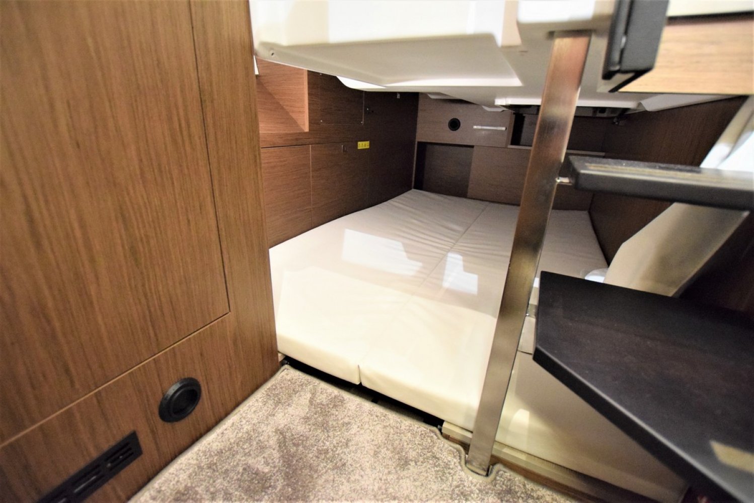 NOTENHOUTEN INTERIEUR HOUTBEWERKING ELEKTRISCHE SCHUIFDAKVERSIE TRIMNIVEAU PREMIÈRE 2019 INCLUSIEF : - ZINKEN IN HET WC-COMPARTIMENT AAN BAKBOORD - INDIRECTE VERLICHTING VAN DE BUITENSTE TREDEN - INDIRECTE VERLICHTING IN DE VOOR- EN BAKBOORDCABINES - ELEKTRISCHE WC - OPSLAG IN DE MOTORKAST - VENTILATIEPAKKET : openingsluik in de bakboordzijde van de cabine + tweede openingsluik in het dak van de voorkajuit COMFORTPAKKET 2019 INCLUSIEF : - OPBERGDOZEN IN EEN KLUISJE - AANSLUITING VOOR DIRECTE WATERTOEVOER VANAF DE WAL - LUXE BOCCANEGRA STUURWIEL - HEKANKERS VOOR CROSSDOCKING ELEKTRONISCHE VERPAKKING 2019 RAYMARINE INCLUSIES: - AXIOM 12 (GPS-kaartplotter/oprichter met 12''touchscreen): audiobediening wanneer de verpakking FUSIE is geïnstalleerd - WIFI CONNECTIVITEIT om controle te krijgen van tablet of smartphone - P79 DIEPTETRANSDUCER ANCHORINGSIT ACHTERSTE COCKPIT ZONWERING DONKERE ROOK BESCHERMHOES VOOR DE ACHTERSTE COCKPITBANK COCKPIT TABEL DOW THRUSTER WALSTROOMKABEL 230V NAVICOLOR-SCHERM VOOR BOOTBEWAKING DEKZOEKLAMP COCKPITACHTERPROJECTOR EXTRA KOELKAST MET OPENING AAN DE VOORZIJDE (80 LITER - 12V) DIESEL VERWARMING GEPULSEERDE LUCHT 2X5,5KW VERWARMINGSUITLAAT IN DE COCKPIT DUBBELE KOOIVULLING IN ACHTERKAJUIT WALNOOT OVERHEAD LOCKERS IN DE VOORKAJUIT 1 PLAATS IN DE SALON MATRAS EN GORDIJN VOOR 3E HUT TAPIJT IN STUURHUIS EN HUTTEN EXTRA BATTERIJ 110AH OMVORMER 12V-230V50 700W ELEKTRISCHE FLAPS FUSIE-AUDIOSYSTEEM RA70N VOLVO-EVC-INTERFACE VOOR RAYMARIENE SCHERMEN CARTOGRAFIE RAYMARINE-NAVIONICA EUROPA TEAKHOUT OP DE ACHTERSTE PLATVORM EN DE COCKPITVLOER