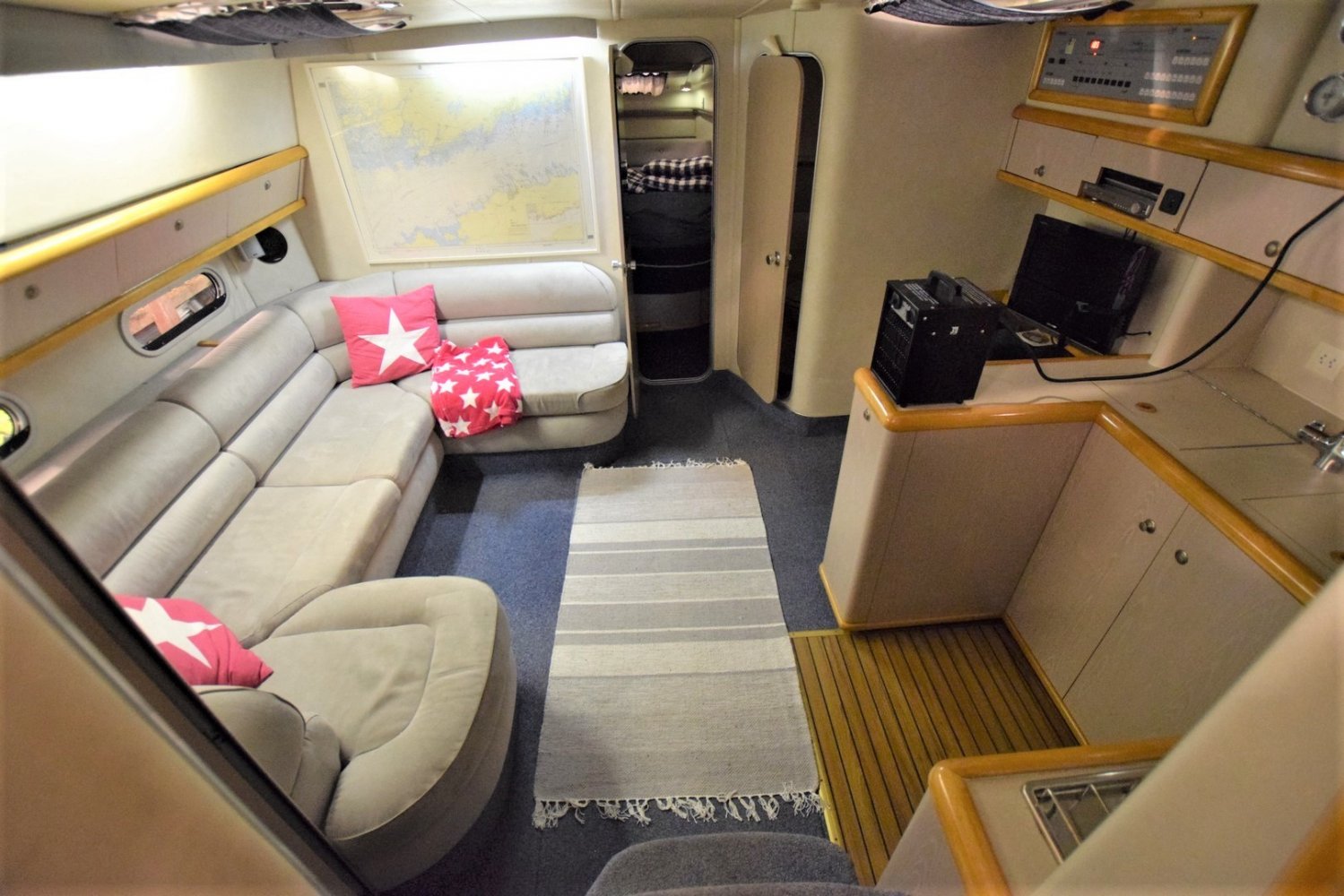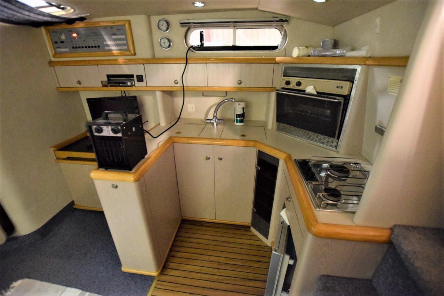Motoren Volvo Penta KAD 42, 2 x 230pk dieselmotoren. Urentellers werken niet, geschat op ongeveer 1000 uur. Cruise 20+ knopen, topsnelheid ~30 knopen