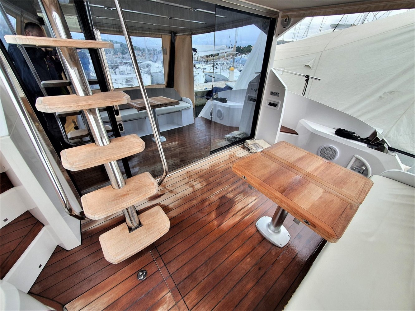 Sessa 47 flybridge met Volvo Penta motoren en IPS joystick.