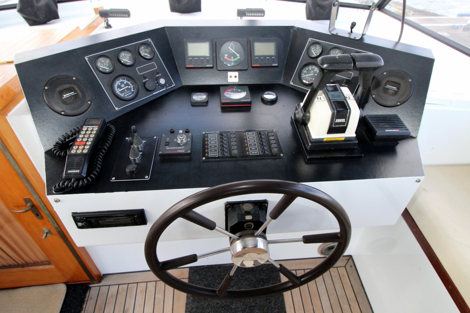 Kortom, deze Valk Super Falcon 45 is uitermate geschikt voor een langer verblijf op het water en om mooie reizen mee te maken. Varen en manoeuvreren is met dit schip  een waar genot, 2 sterke Volvo Penta dieselmotoren en een boeg -en hekschroef, wat wilt u nog meer!!