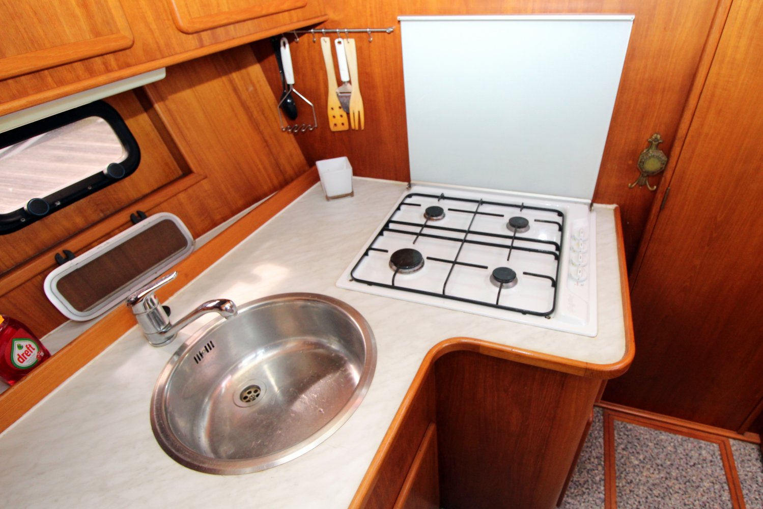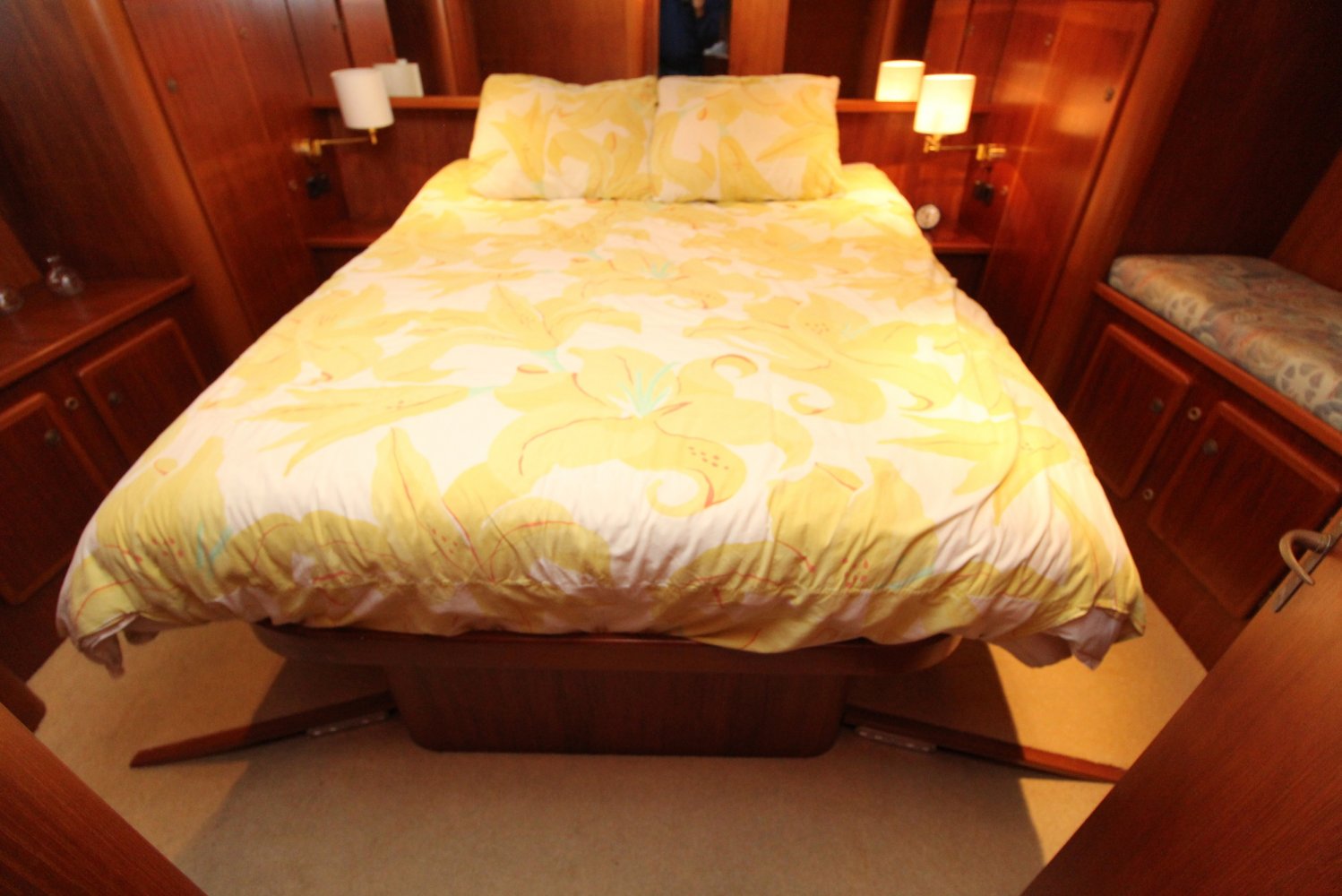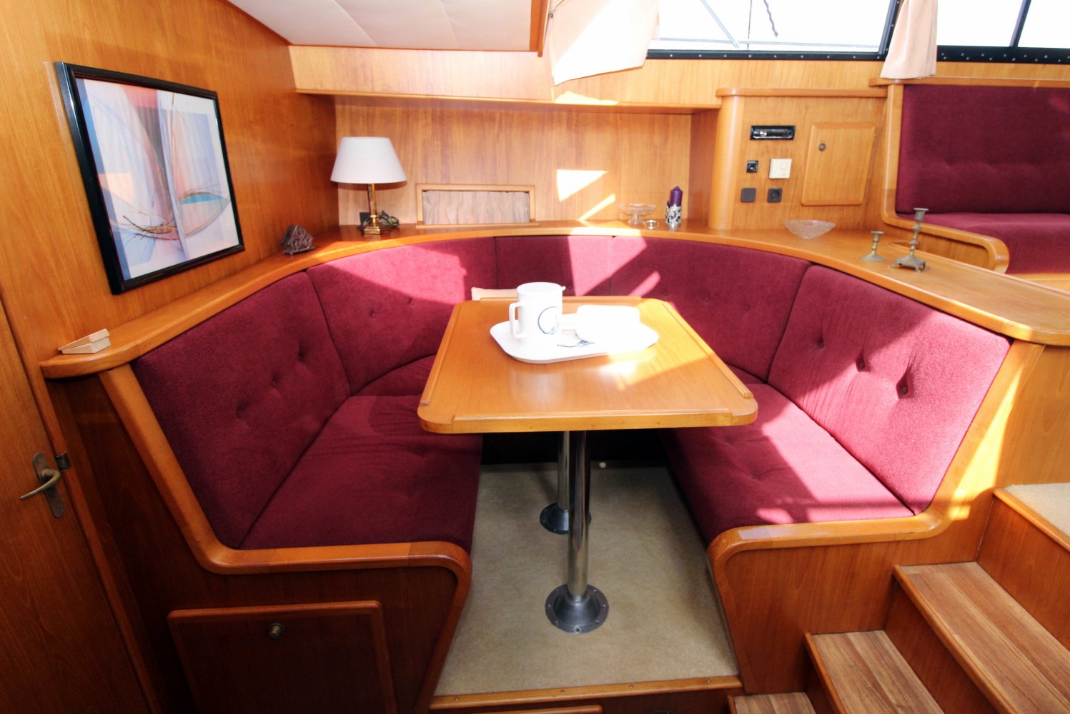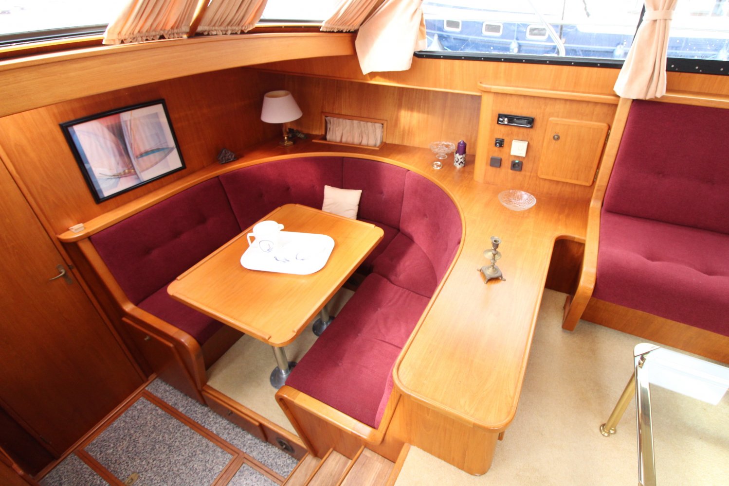 Aan boord van deze Valk Super Falcon 45 loopt men makkelijk en veilig naar voren via brede gangboorden welke over een hoge reling beschikken. Het achterdek is zeer ruim en uitgerust met een royale bank waarin dekkisten zijn geïntegreerd. Ook naast de stuurstand is een bank geplaatst met hierin bergruimte. Een makkelijk begaanbare trap leidt naar de leefruimte benedendeks. Door de grote ramen in de salon schijnt  heerlijk veel daglicht naar binnen wat voor een lichte gezellige uitstraling zorgt. De praktisch ingedeelde kombuis heeft voldoende werk- en kastruimte en is onder andere uitgerust met een 4 pits gasstel plus afzuigkap. Hier tegenover is een comfortabele rondzit  geplaatst waaraan het gezellig aanschuiven is voor een hapje of een drankje. Vanuit de kombuis bereikt men de gastenhut, welke is voorzien van 2 V-vormige bedden en een eigen toiletruimte met wastafel.  Een hal in het achterschip  geeft aan stuurboord toegang tot een zeer ruime badkamer met wastafel, aparte douchecabine en toilet. Hiertegenover, aan bakboord, is een tweede gastenhut met een eenpersoons bed en bergruimte. De hierachter gelegen eigenaars hut is ruim bemeten en voorzien van een vrijstaand 2 persoons bed en veel kastruimte voor persoonlijke spullen.