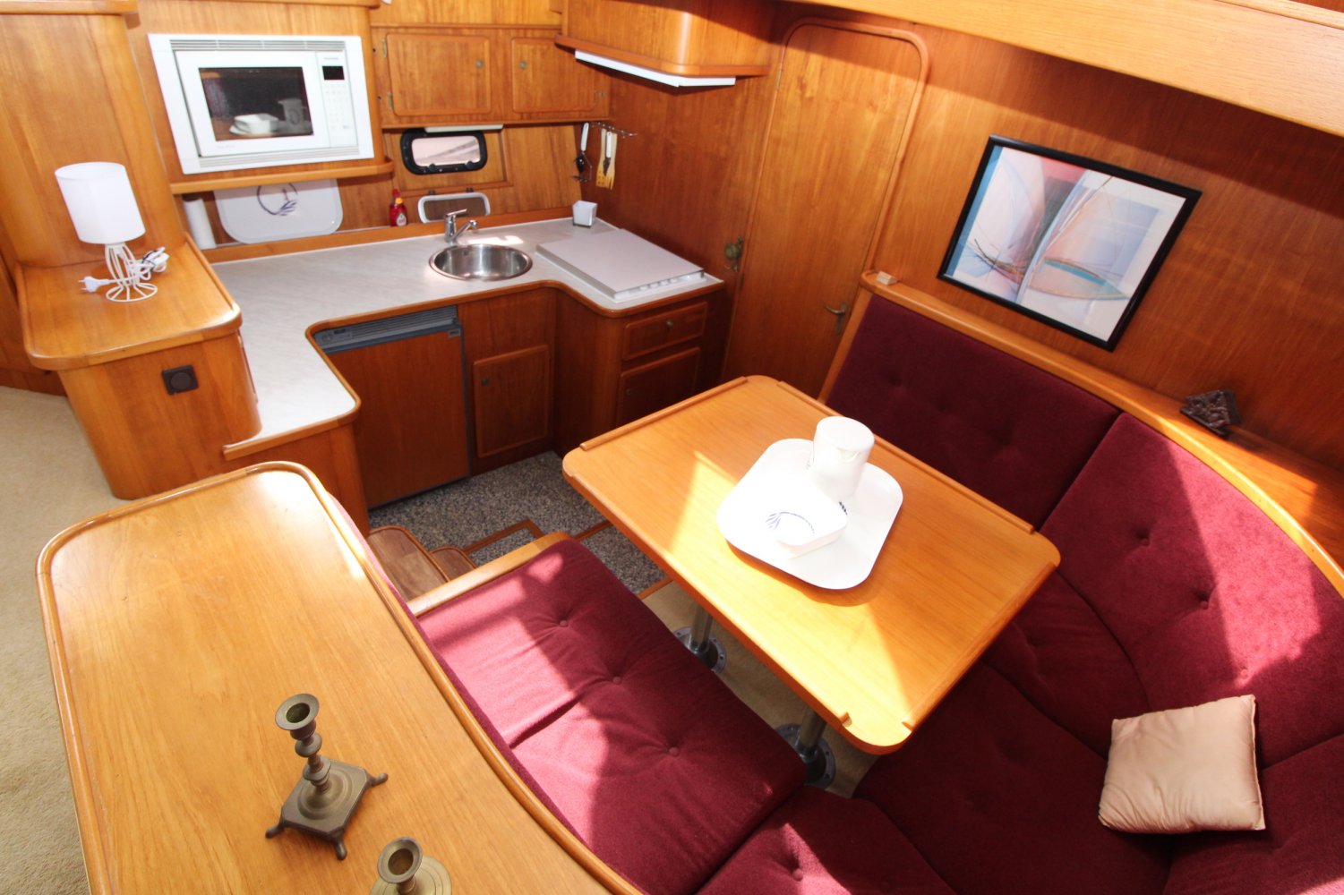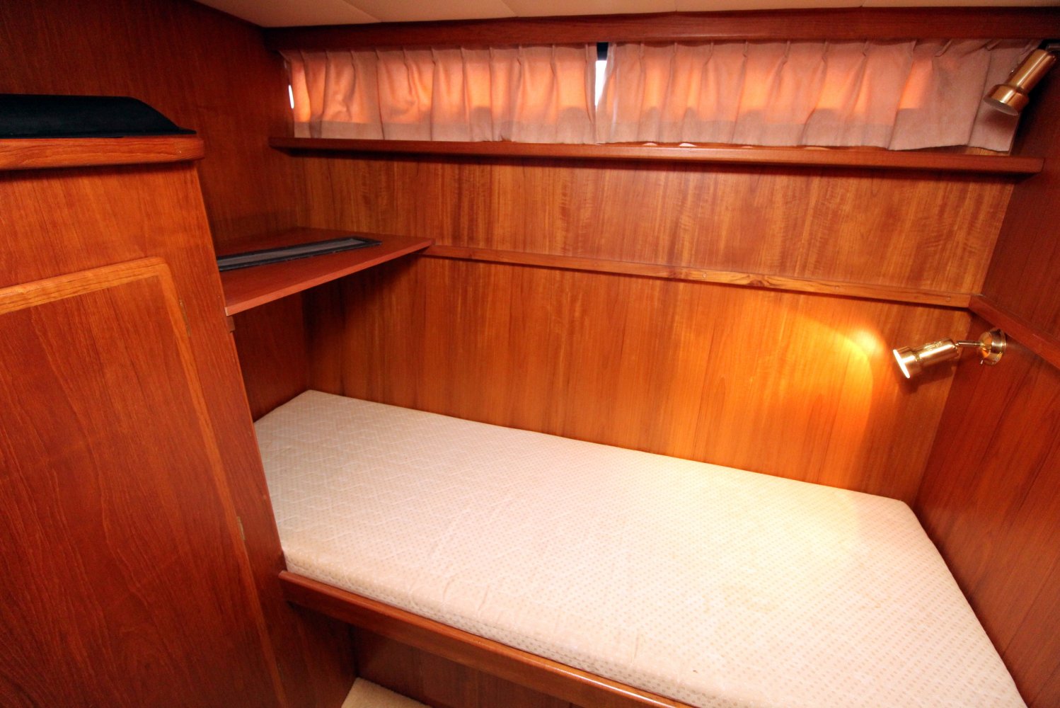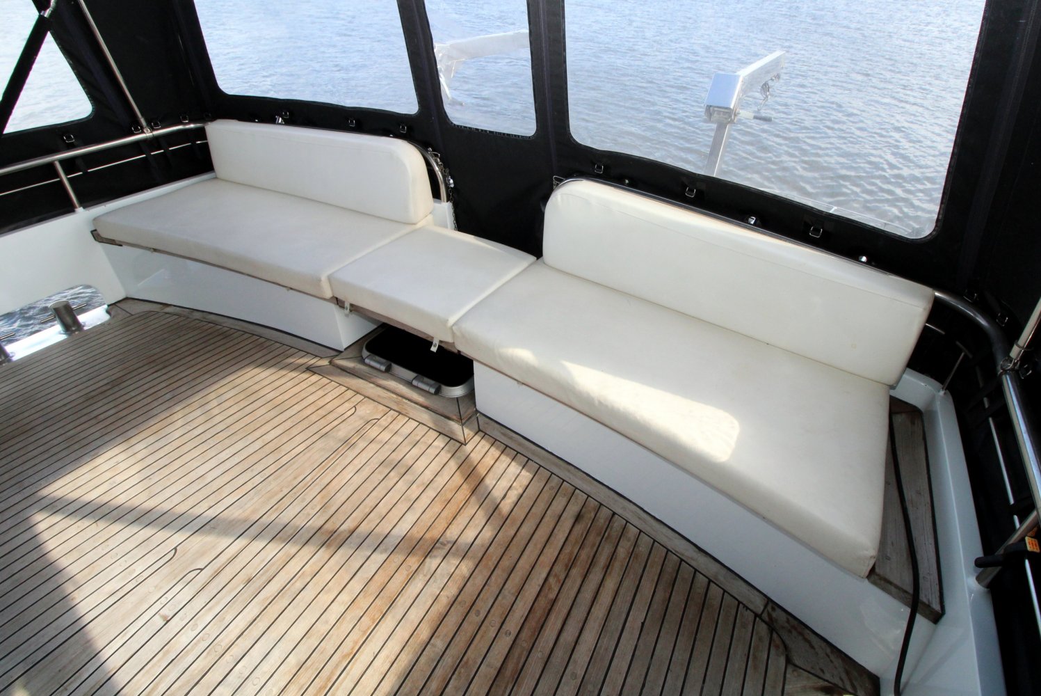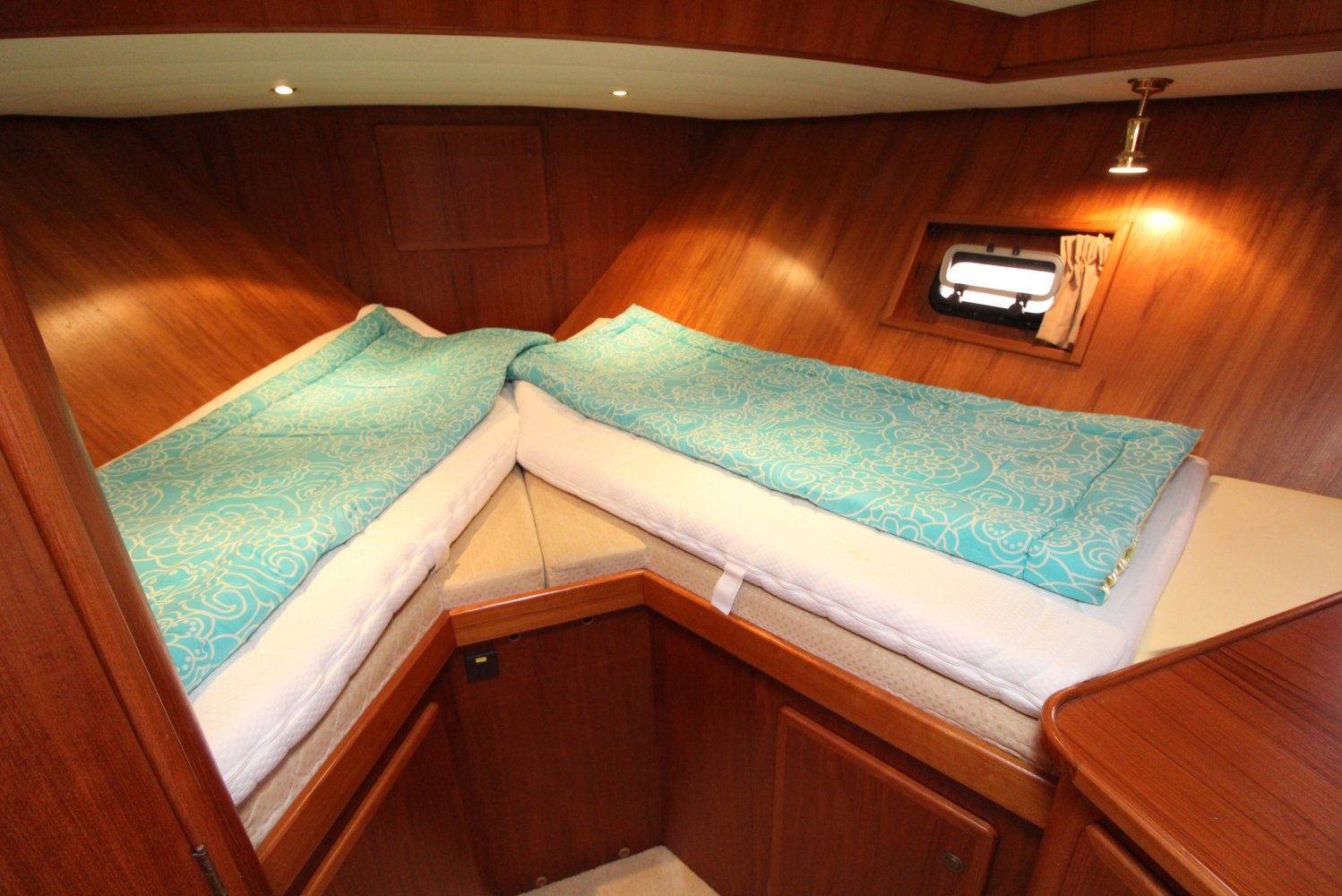 Aan boord van deze Valk Super Falcon 45 loopt men makkelijk en veilig naar voren via brede gangboorden welke over een hoge reling beschikken. Het achterdek is zeer ruim en uitgerust met een royale bank waarin dekkisten zijn geïntegreerd. Ook naast de stuurstand is een bank geplaatst met hierin bergruimte. Een makkelijk begaanbare trap leidt naar de leefruimte benedendeks. Door de grote ramen in de salon schijnt  heerlijk veel daglicht naar binnen wat voor een lichte gezellige uitstraling zorgt. De praktisch ingedeelde kombuis heeft voldoende werk- en kastruimte en is onder andere uitgerust met een 4 pits gasstel plus afzuigkap. Hier tegenover is een comfortabele rondzit  geplaatst waaraan het gezellig aanschuiven is voor een hapje of een drankje. Vanuit de kombuis bereikt men de gastenhut, welke is voorzien van 2 V-vormige bedden en een eigen toiletruimte met wastafel.  Een hal in het achterschip  geeft aan stuurboord toegang tot een zeer ruime badkamer met wastafel, aparte douchecabine en toilet. Hiertegenover, aan bakboord, is een tweede gastenhut met een eenpersoons bed en bergruimte. De hierachter gelegen eigenaars hut is ruim bemeten en voorzien van een vrijstaand 2 persoons bed en veel kastruimte voor persoonlijke spullen.