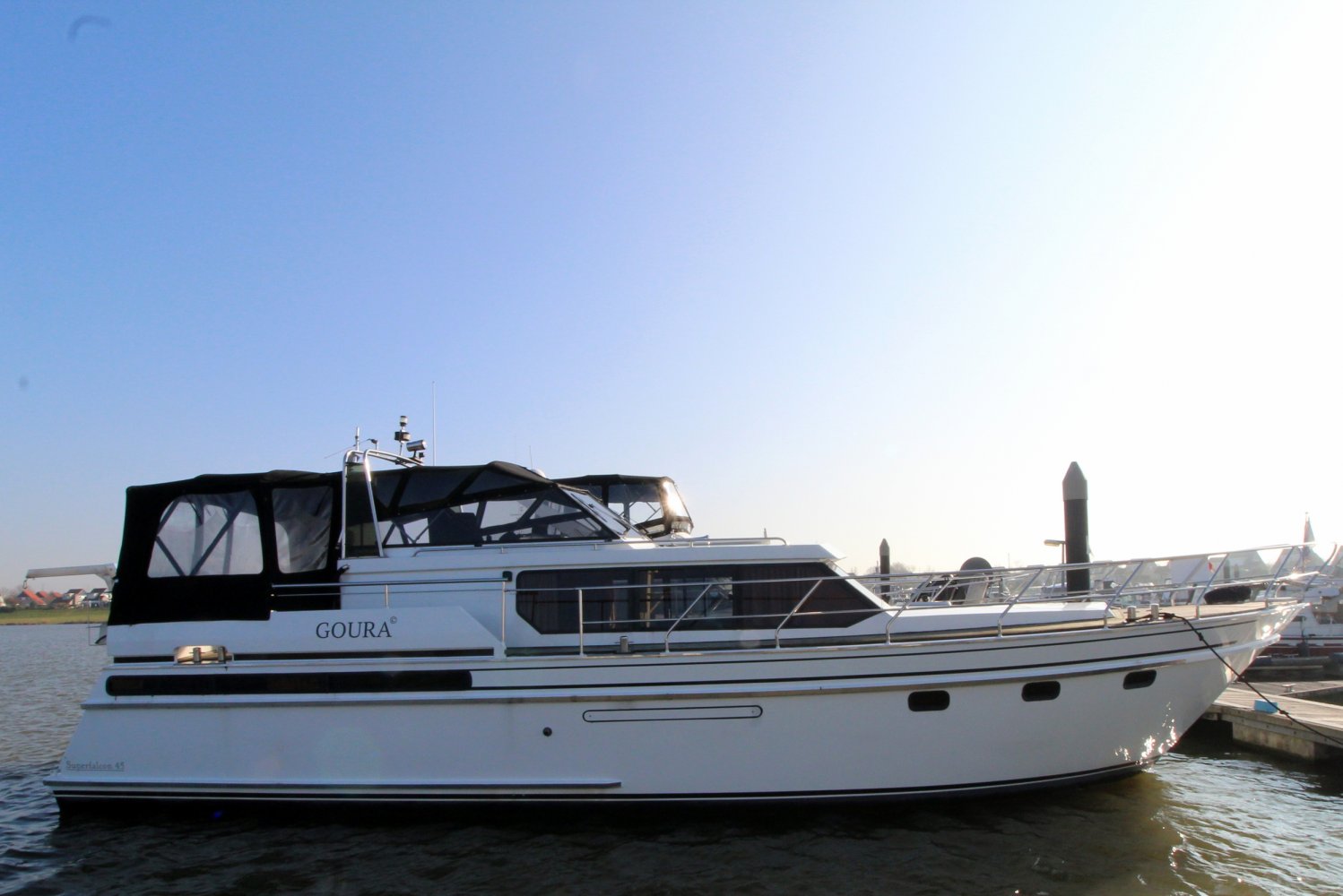 De Valk Super Falcon 45 is een mooi gelijnd motorjacht met veel binnenruimte, ontworpen en gebouwd voor een comfortabel verblijf op het water en afkomstig van de welbekende Nederlandse  werf: “ Van der Valk “ uit Waalwijk. Het exemplaar welke wij u aanbieden is goed onderhouden en voorzien van vele extra’s zoals bijvoorbeeld teak houten dekken. Verder zorgt een hete lucht verwarming ervoor dat u ook in voor -en najaar comfortabel kunt genieten van dit schip.