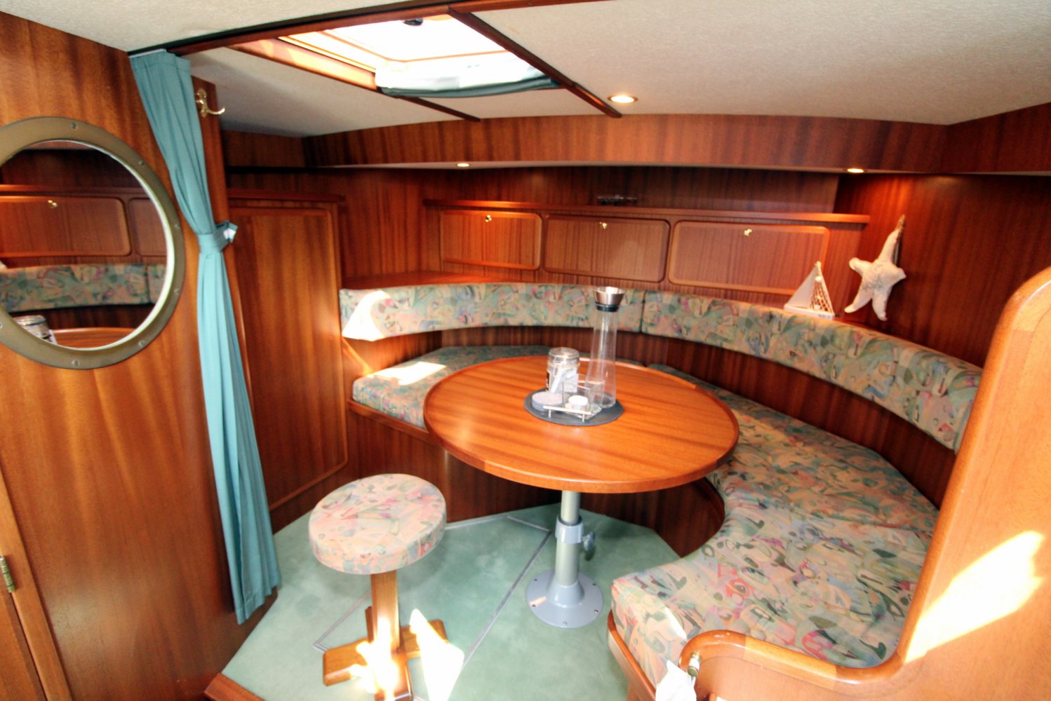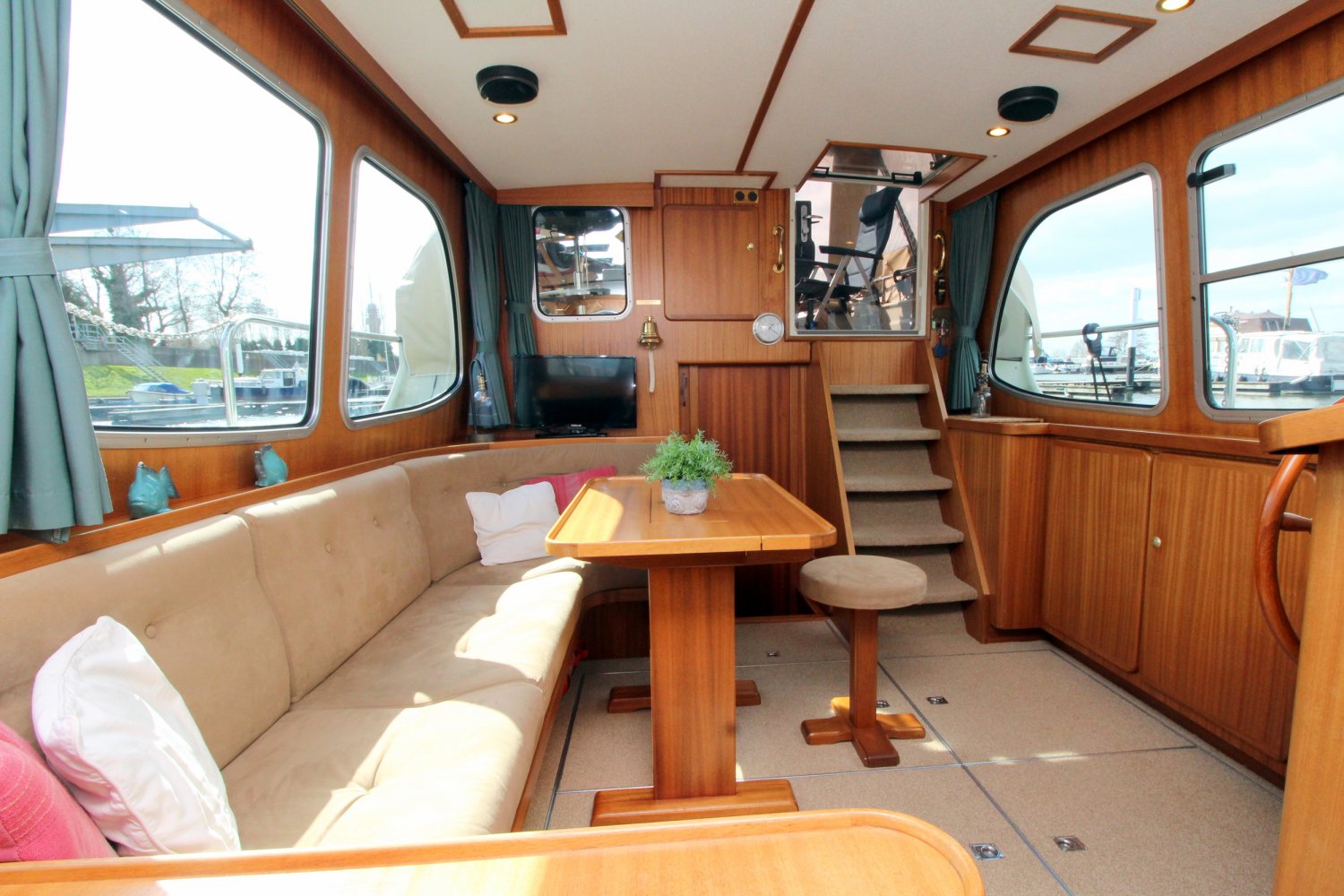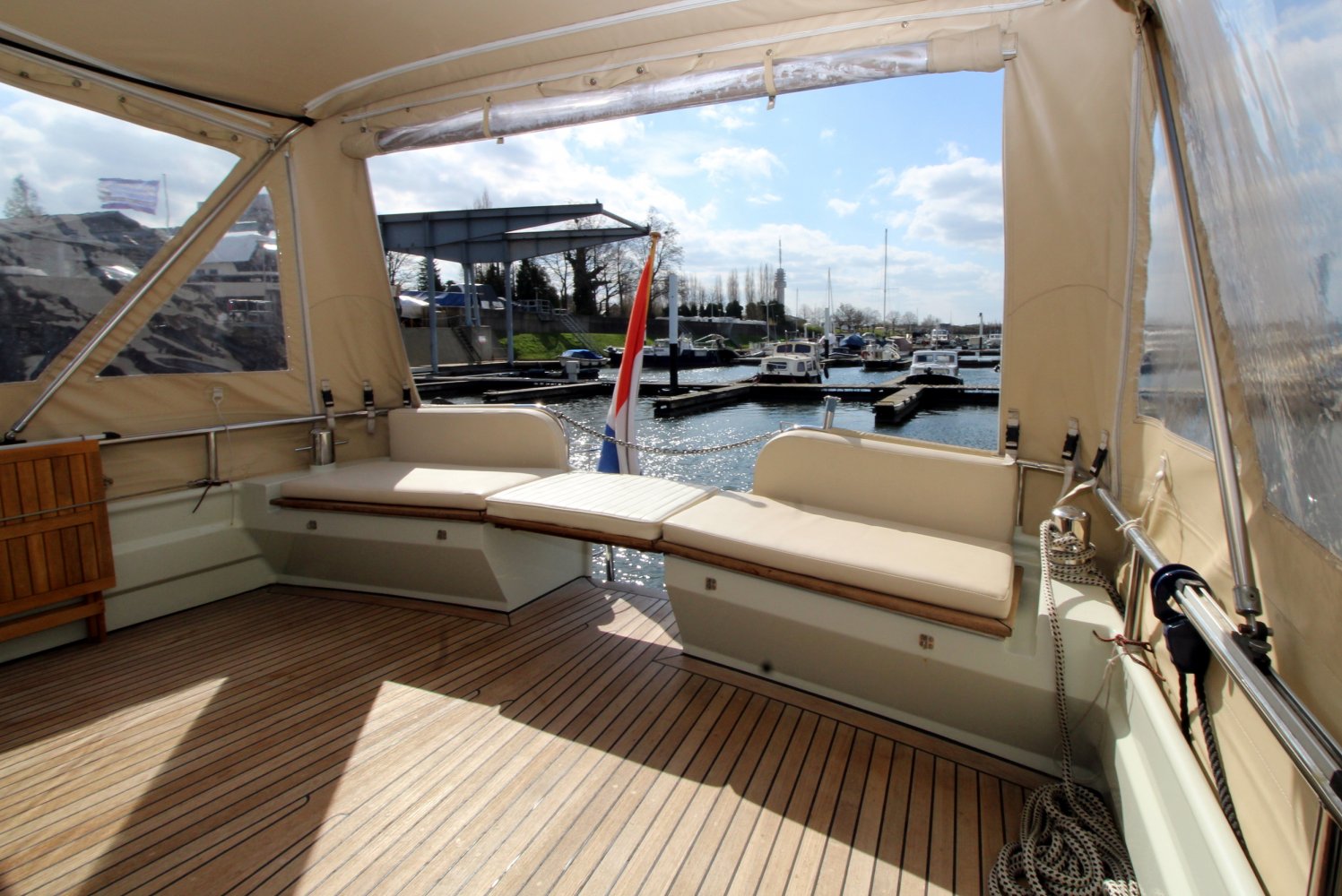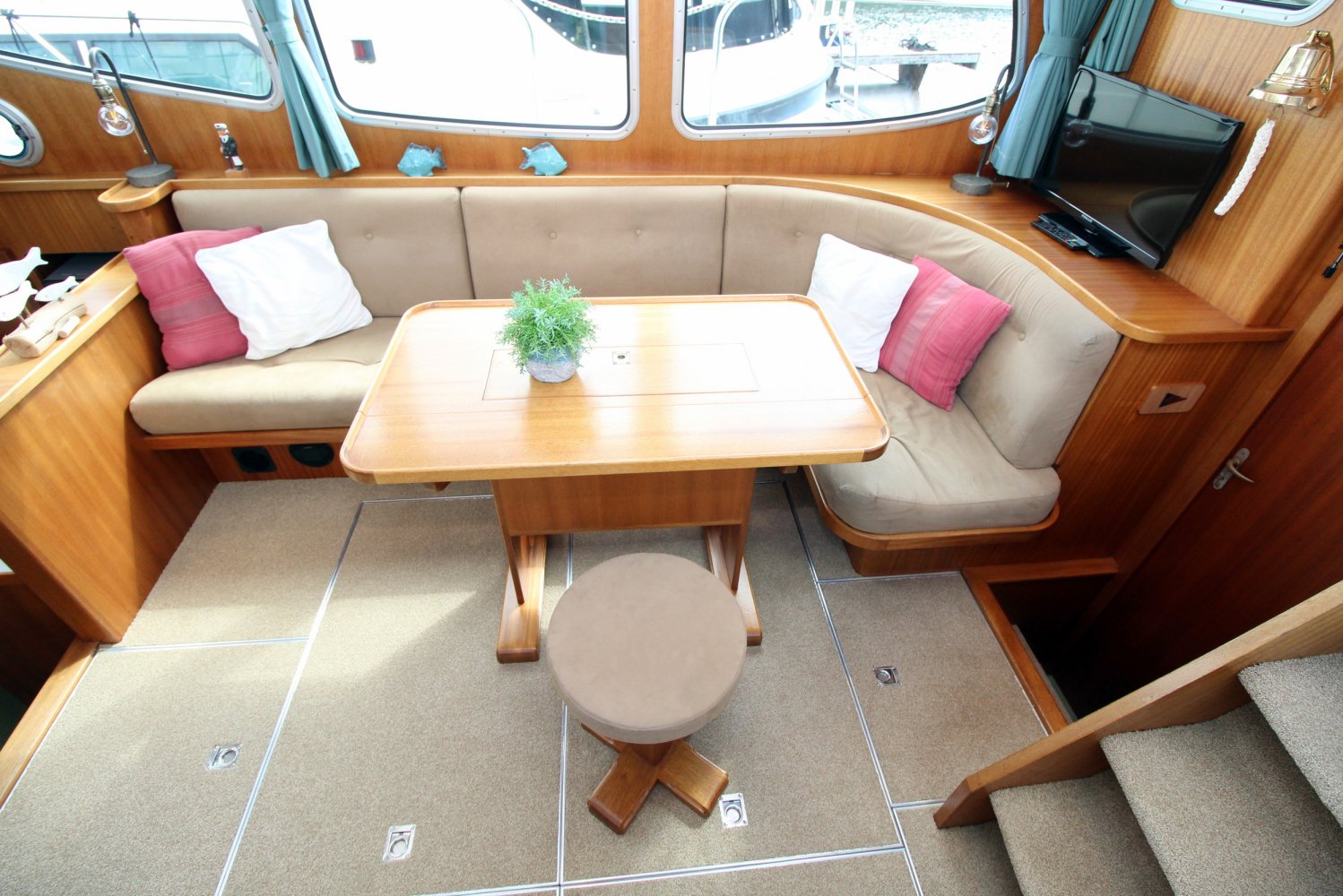 Dit exemplaar heeft in 2020 een Refit ondergaan waarbij de romp professioneel (2K) is geschilderd en het onderwaterschip van nieuwe antifouling en anodes is voorzien. Motorisch is er in 2019 groot onderhoud geweest waarbij tevens de koppakking en distributie riem zijn vervangen. Dit compacte schip heeft veel praktische binnenruimte en voor gasten kunt u de rondzit ombouwen tot bed, waarbij een gordijn zorgt voor de nodige privacy. Het interieur is fris en verzorgd, heeft een mooi mahonie houten interieur en nette bekleding. Een hete lucht verwarming zorgt ervoor dat u ook tijdens frissere dagen aangenaam van dit schip kunt genieten. Dankzij een Volvo Penta TAMD diesel motor met 105 PK en een boegschroef laat dit schip zich heerlijk varen en gemakkelijk manoeuvreren.