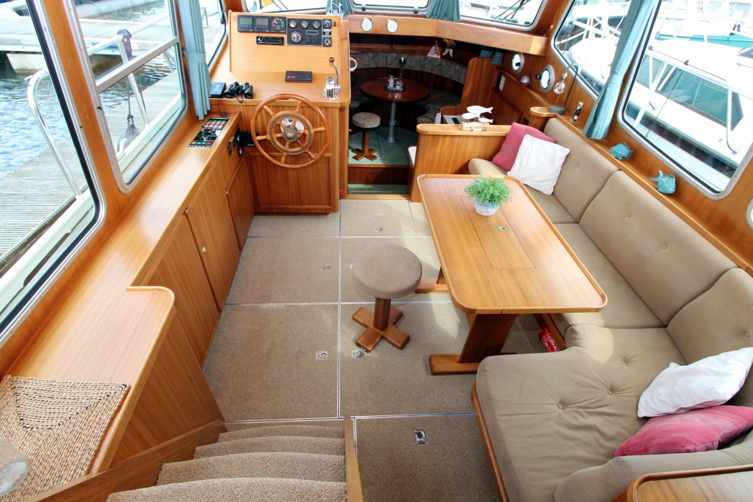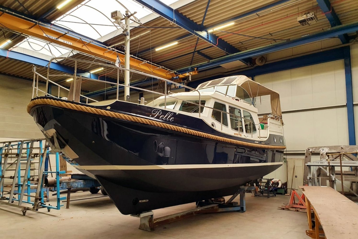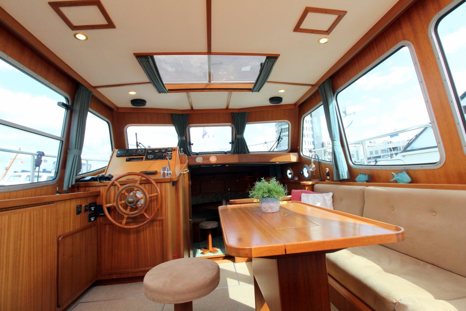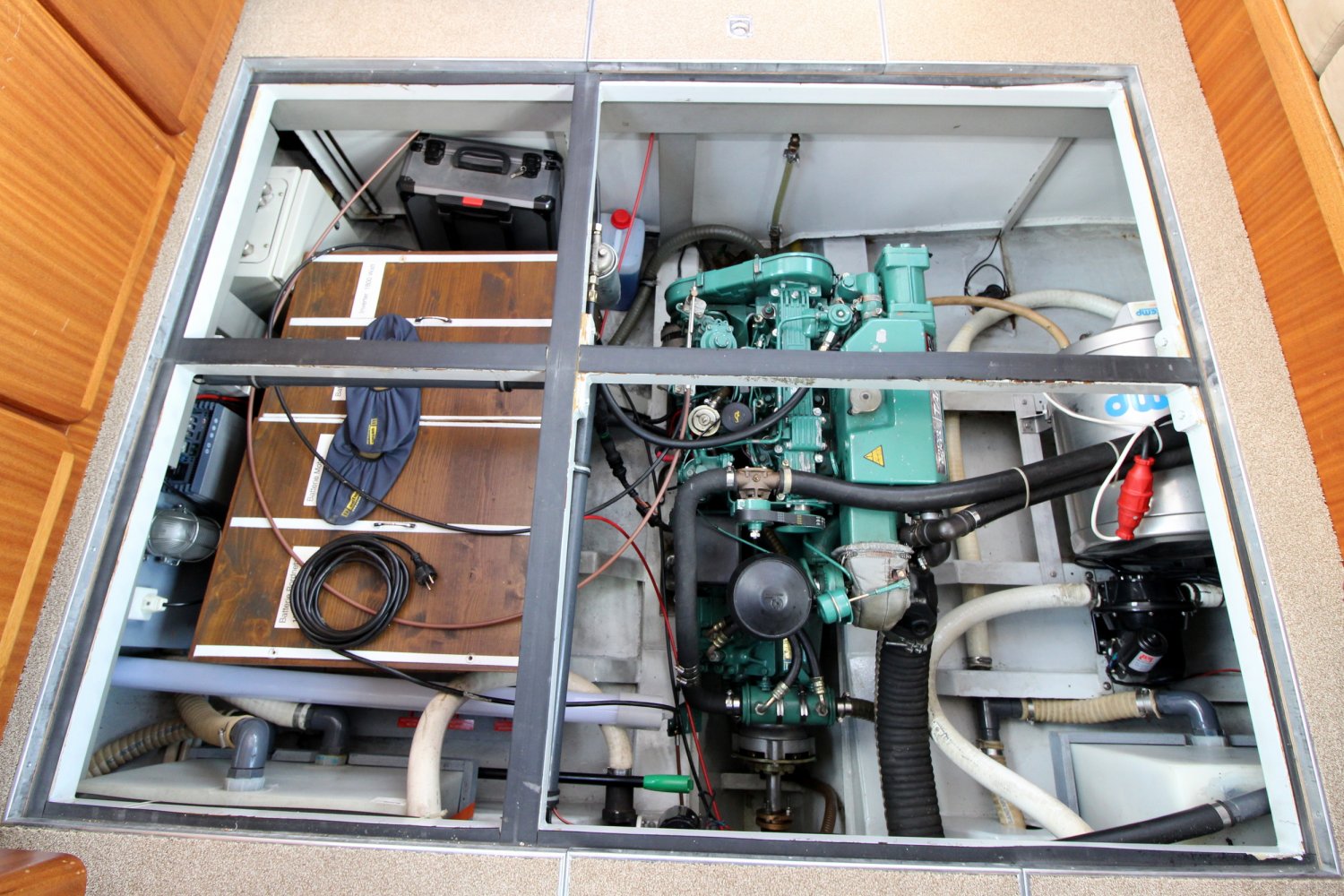Dit exemplaar heeft in 2020 een Refit ondergaan waarbij de romp professioneel (2K) is geschilderd en het onderwaterschip van nieuwe antifouling en anodes is voorzien. Motorisch is er in 2019 groot onderhoud geweest waarbij tevens de koppakking en distributie riem zijn vervangen. Dit compacte schip heeft veel praktische binnenruimte en voor gasten kunt u de rondzit ombouwen tot bed, waarbij een gordijn zorgt voor de nodige privacy. Het interieur is fris en verzorgd, heeft een mooi mahonie houten interieur en nette bekleding. Een hete lucht verwarming zorgt ervoor dat u ook tijdens frissere dagen aangenaam van dit schip kunt genieten. Dankzij een Volvo Penta TAMD diesel motor met 105 PK en een boegschroef laat dit schip zich heerlijk varen en gemakkelijk manoeuvreren.