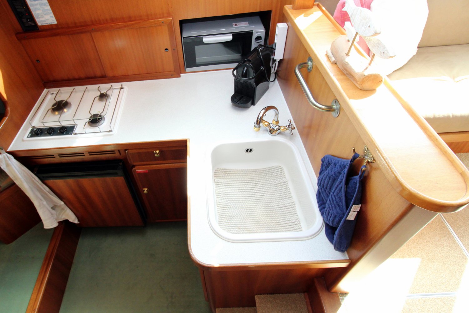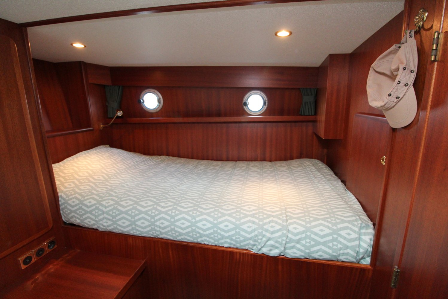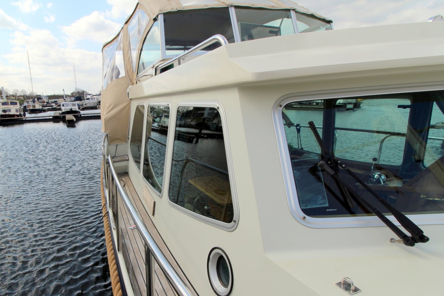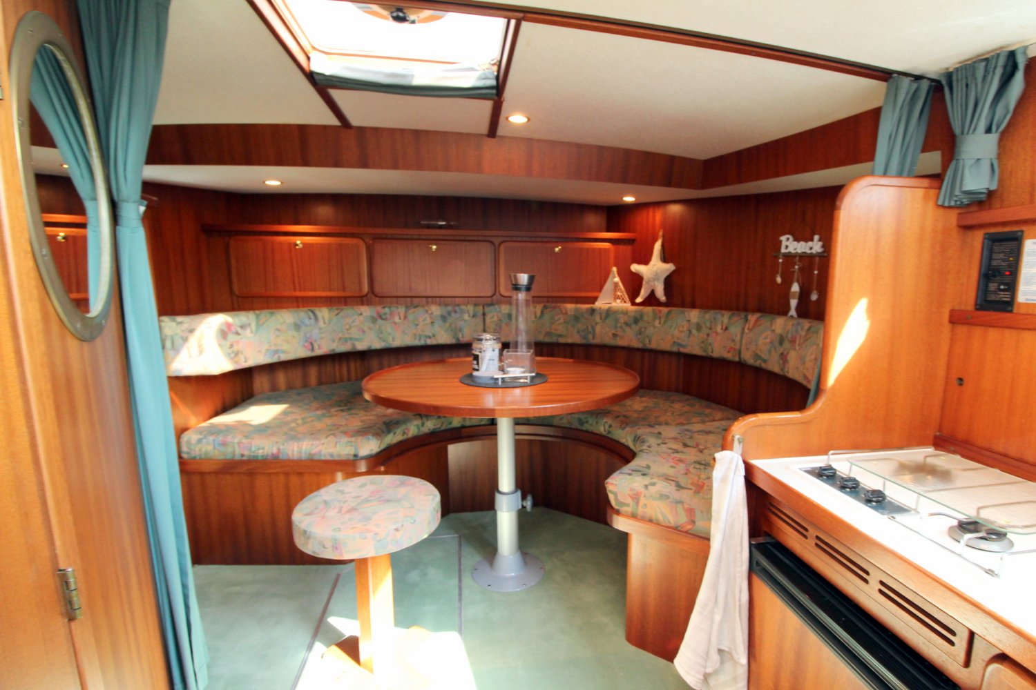 Dit exemplaar heeft in 2020 een Refit ondergaan waarbij de romp professioneel (2K) is geschilderd en het onderwaterschip van nieuwe antifouling en anodes is voorzien. Motorisch is er in 2019 groot onderhoud geweest waarbij tevens de koppakking en distributie riem zijn vervangen. Dit compacte schip heeft veel praktische binnenruimte en voor gasten kunt u de rondzit ombouwen tot bed, waarbij een gordijn zorgt voor de nodige privacy. Het interieur is fris en verzorgd, heeft een mooi mahonie houten interieur en nette bekleding. Een hete lucht verwarming zorgt ervoor dat u ook tijdens frissere dagen aangenaam van dit schip kunt genieten. Dankzij een Volvo Penta TAMD diesel motor met 105 PK en een boegschroef laat dit schip zich heerlijk varen en gemakkelijk manoeuvreren.