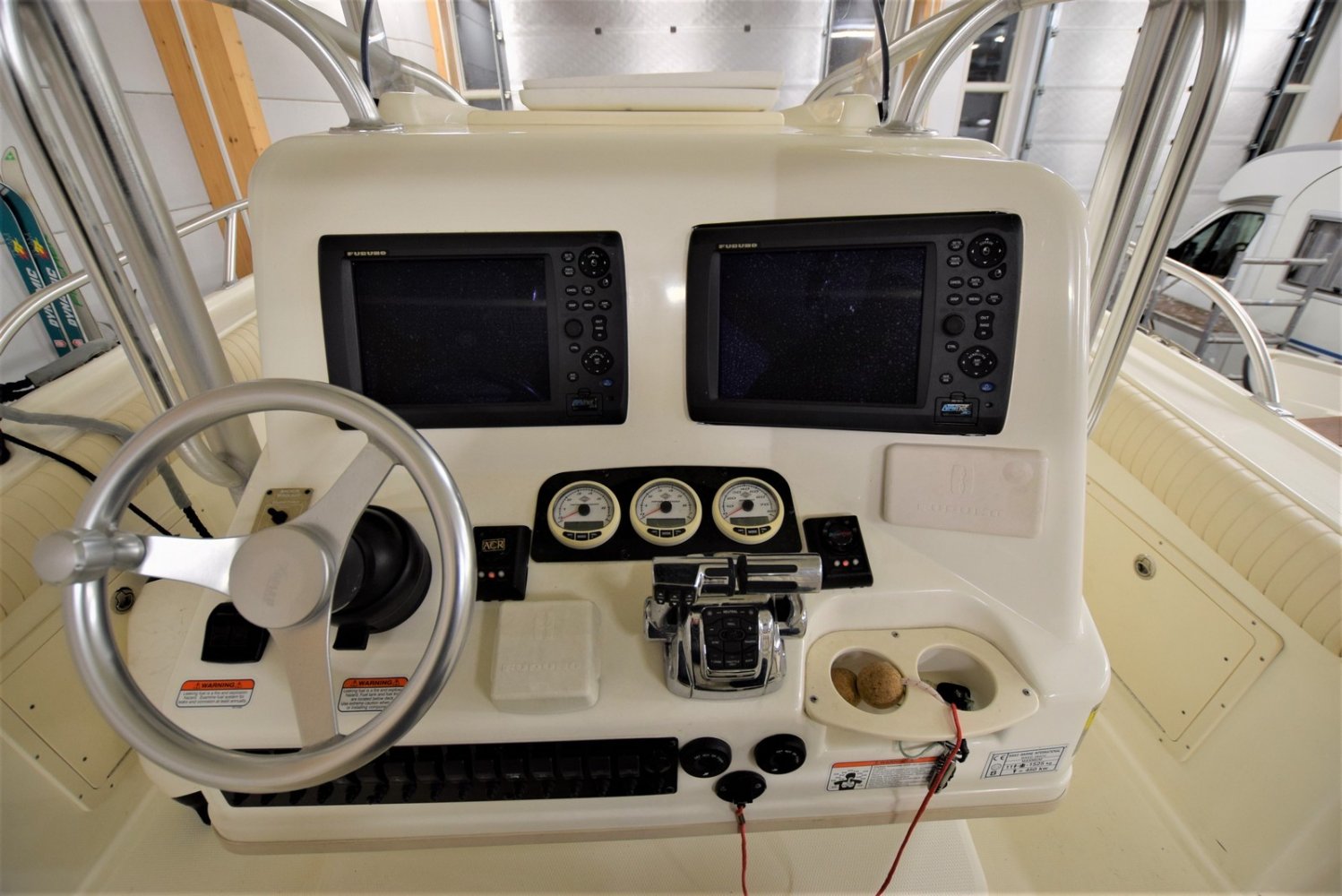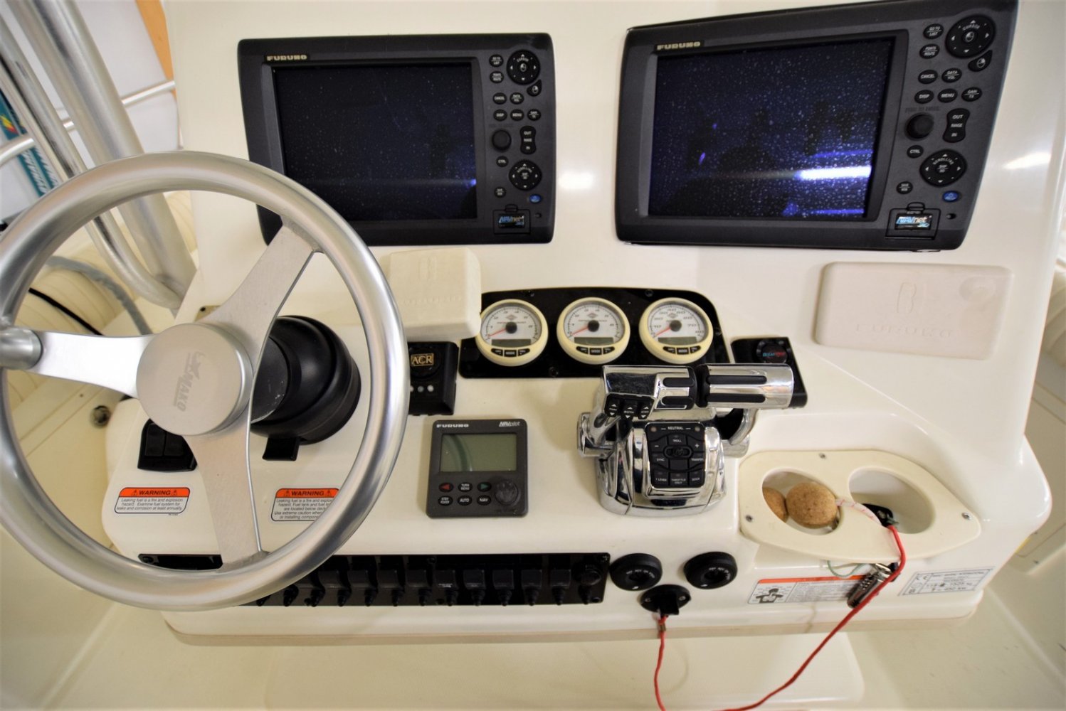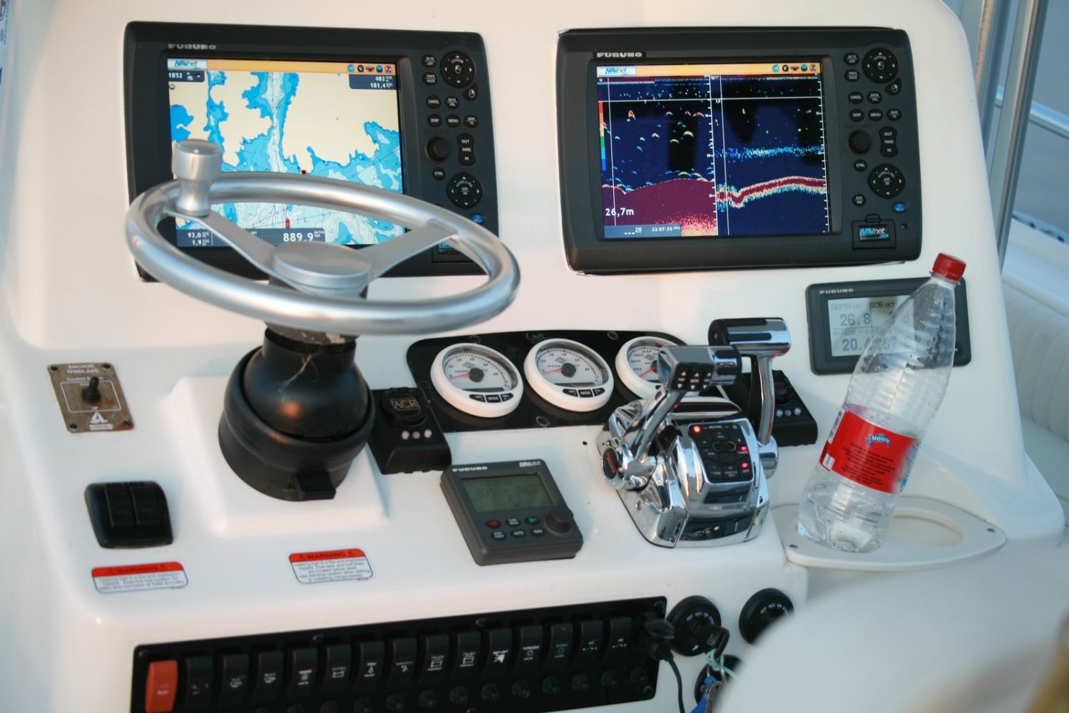 Furuno navpilot stuurautomaat Furuno GPS-320b Furuno DFF1 diepte 2 x Furuno Navnet 3D plotters Furuno DRS4DL radar Furuno SC-130 satellietkompas VHF Furuno logboek Walstroom Stereo Douche + kop + wastafel Hengelhouders Verstelbare uithouders over de hardtop Zoeklicht op afstand + IR-licht + warmtecamera Elektrische ankerlier + Bruce anker Spoelbak + kraan in kuip Leefbron Trimvlakken