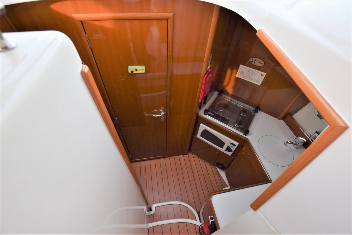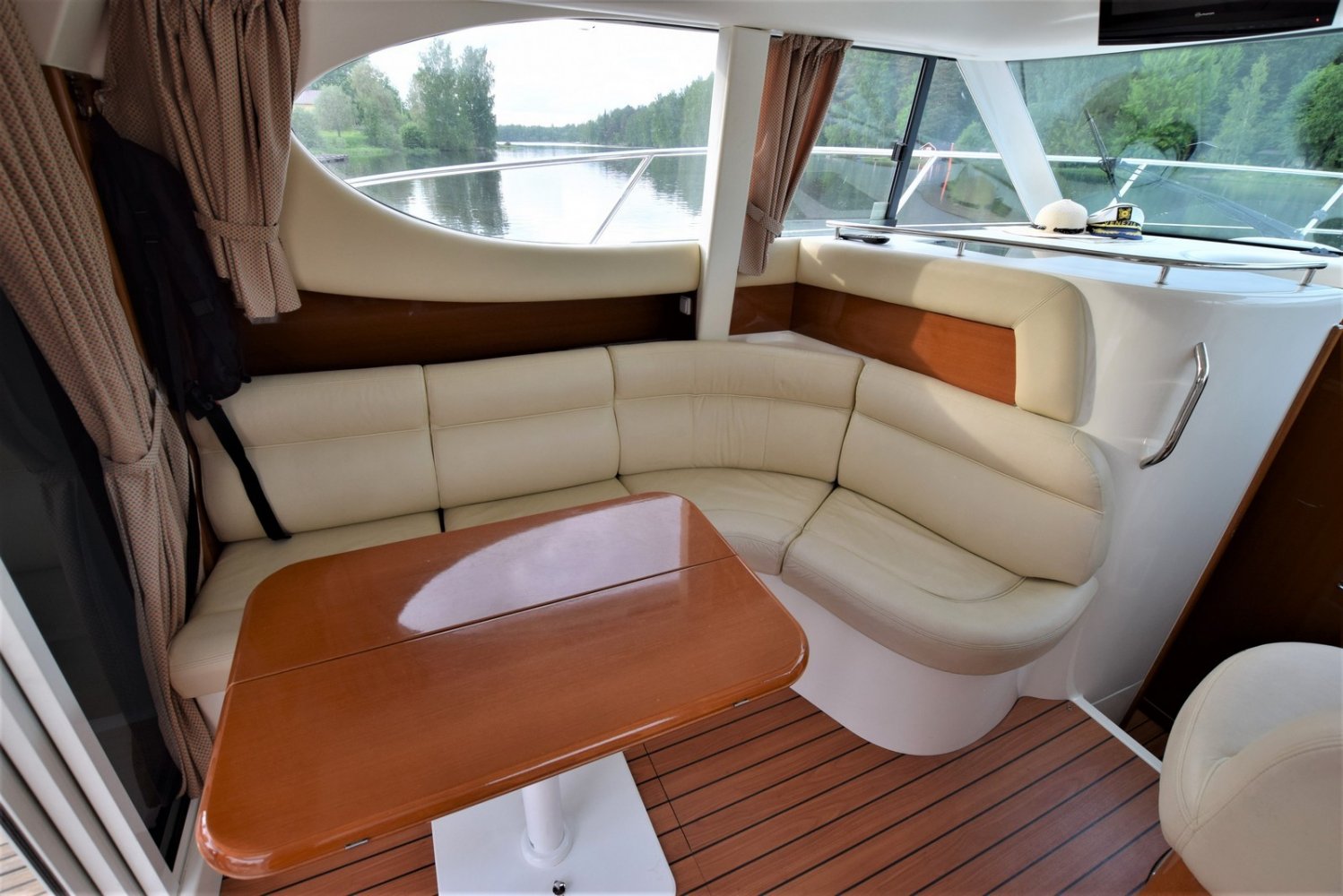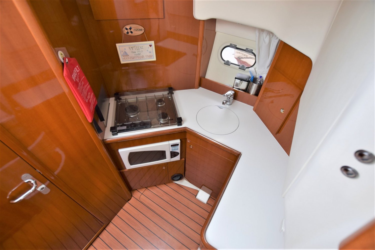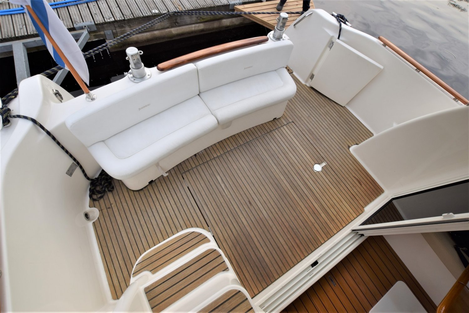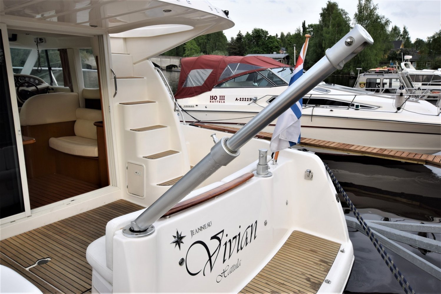 Koelkast Micro Fornuis Plotter Radar VHF Diepte Boegschroef Elektrische ankerlier Elektrische gashendels Flybridge afdekzeil (lelijk maar niet kapot) Stereo TV Eberspächer verwarming Ontdooier/verwarming via motoren Warm water via walstroom + motoren Teak op zwemplateau + cockpit Besenzoni davits
