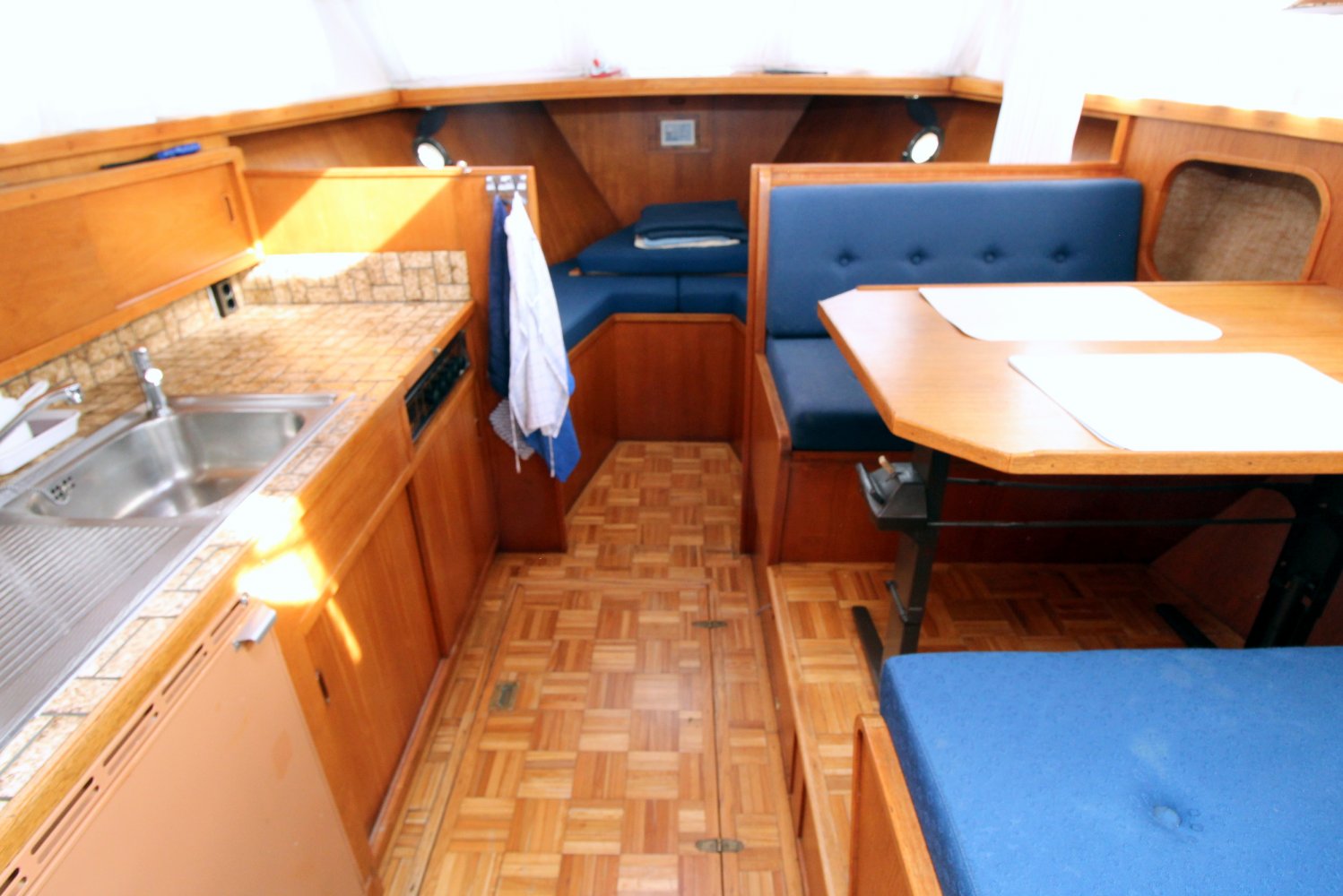 Deze Heijblom Kruiser 12.30 AK beschikt over een ruim achterdek voorzien van een bimini, zodat men met warme dagen heerlijk beschut van het buitenleven kan genieten. De leefruimte benedendeks heeft een aangename, gezellige atmosfeer en het warm houten interieur oogt verzorgd met een nette bekleding. De grote salon staat in open verbinding met de kombuis, waar u naast de benodigde apparatuur, een dinette aantreft die uitnodigt tot aanschuiven. Dit gezellige motorjacht biedt voldoende ruimte voor gasten,  4 vaste slaapplaatsen plus nog eens 2 extra door het veranderen van de dinette. Voor het opbergen van persoonlijke spullen is er eveneens genoeg kast- en bergruimte aanwezig en natuurlijk ontbreekt de natte cel met wastafel, toilet en douche niet aan boord. Met frissere dagen zorgt een hete luchtverwarming ervoor dat u van uw verblijf op dit schip comfortabel kunt genieten.