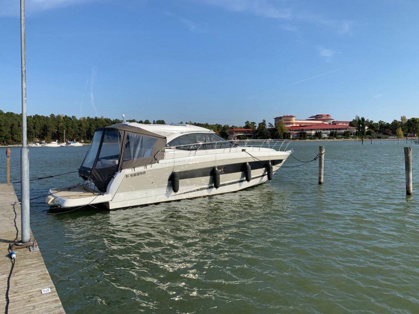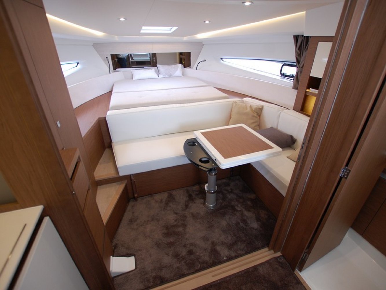 Spec omvat alle fabrieksnormen plus extra's: ACHTER COCKPIT SUNPAD UITVOERING WALNOOT INTERIEUR HOUTWERK ELEKTRISCHE HARDTOP TRIM LEVEL PREMIÈRE 2018 VOOR SPORTOP: - DOUCHE IN HEADS (mengkraan + waterafvoer) - 220V WALAANSLUITING + LADER - OPKLAPBARE TEAKHOUTEN KUIPTAFEL + HOES - VENTILATIE PACK (opening dekluik in voorkajuit en patrijspoort in achterkajuit) - AMBIANCE PACK (led verlichting buiten trap + led verlichting cockpit salon + indirecte verlichting binnen) - STOFFEN BEKLEDING OP KAJUITSCHOTTEN - HORN - OPENING COCKPITRAAM AAN BAKBOORDZIJDE ELEGANCE PACK VOOR SPORTOP VERSIE - BUITEN MET LEER BEKLEDE LEUNINGEN - BINNENBEKLEDING SPORTOP - LUXE BOCCANEGRA STUURWIEL COMFORT PACK: - ELEKTRISCH TOILET MET VERS WATER - OPBERGKAST IN COCKPIT KOMBUIS - DOUCHEWAND + DOUCHEZITJE OP TOILETTEN - ACHTERSTEVEN AFMEERKABELS VOOR DWARSDOKKEN ELEKTRONISCH PAKKET 2018 RAYMARINE: - AXIOM 9 - CARTOGRAFIE INBEGREPEN - WIFI CONNECTIVITEIT - P79 DIEPTE TRANSDUCER VAARTSET ANCHORING KIT COCKPIT ACHTERSLUITING DARK SMOKE VOOR SPORTOP VERSIE BOEGSCHROEF INLAAT HAVENWATER COCKPIT SPOTS COCKPIT KOELKAST 40L DIESEL LUCHTVERWARMING ELEKTRISCHE TRIMVLAKKEN TEAK COCKPIT VLOER TEAK OP ACHTERDEK FUSION STEREO INVERTER