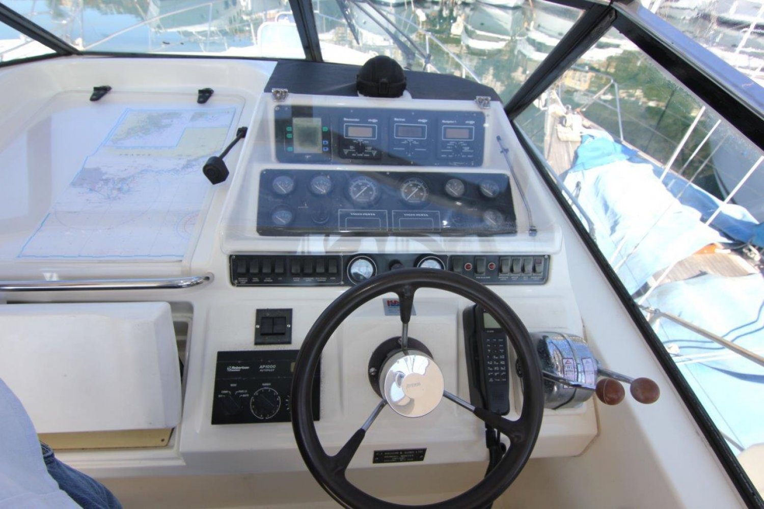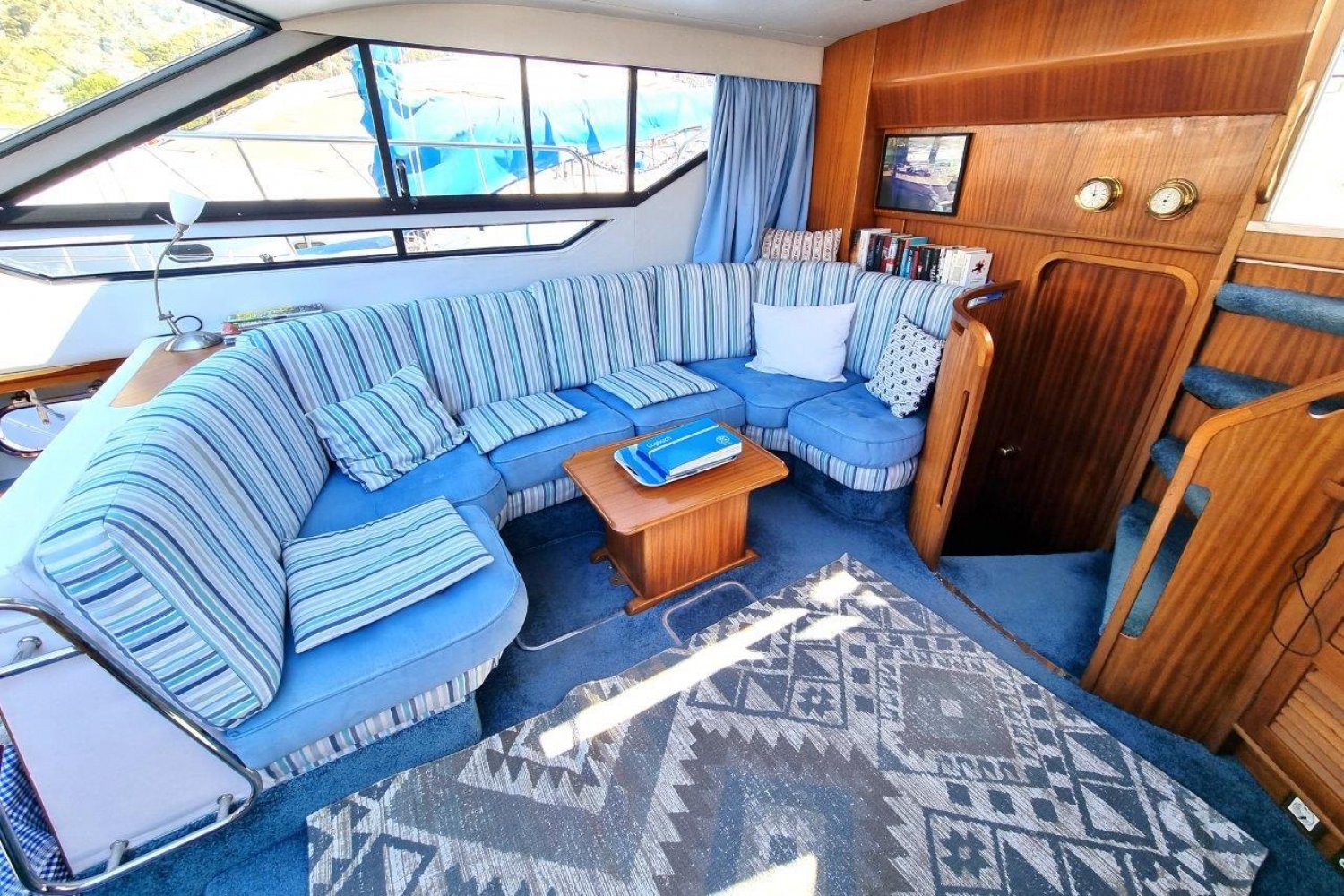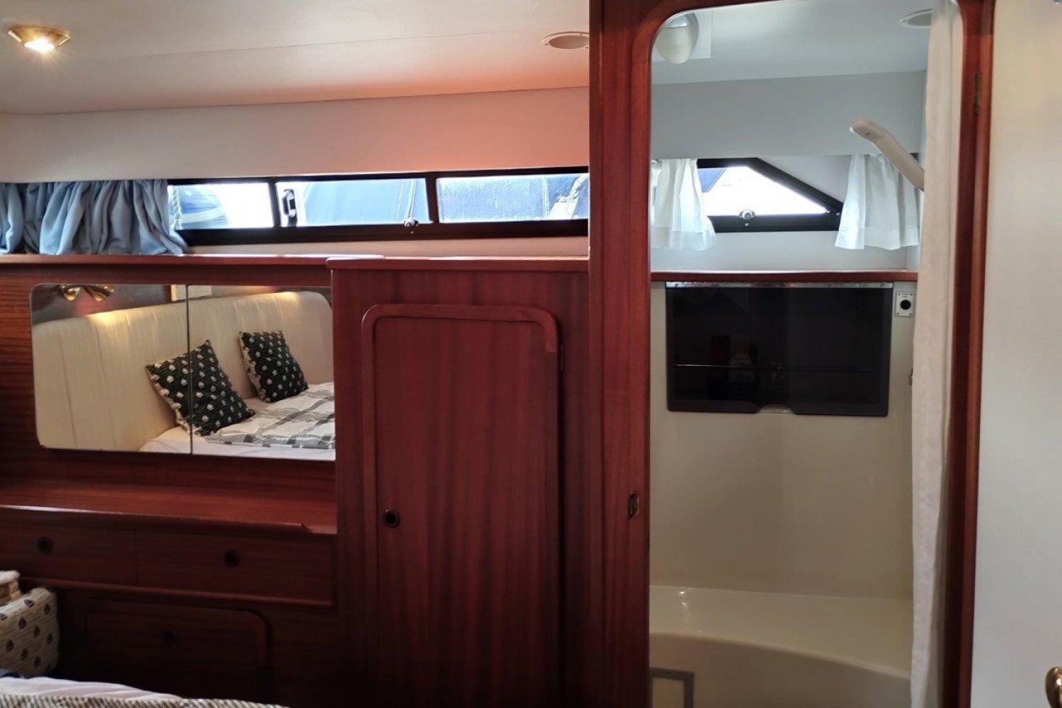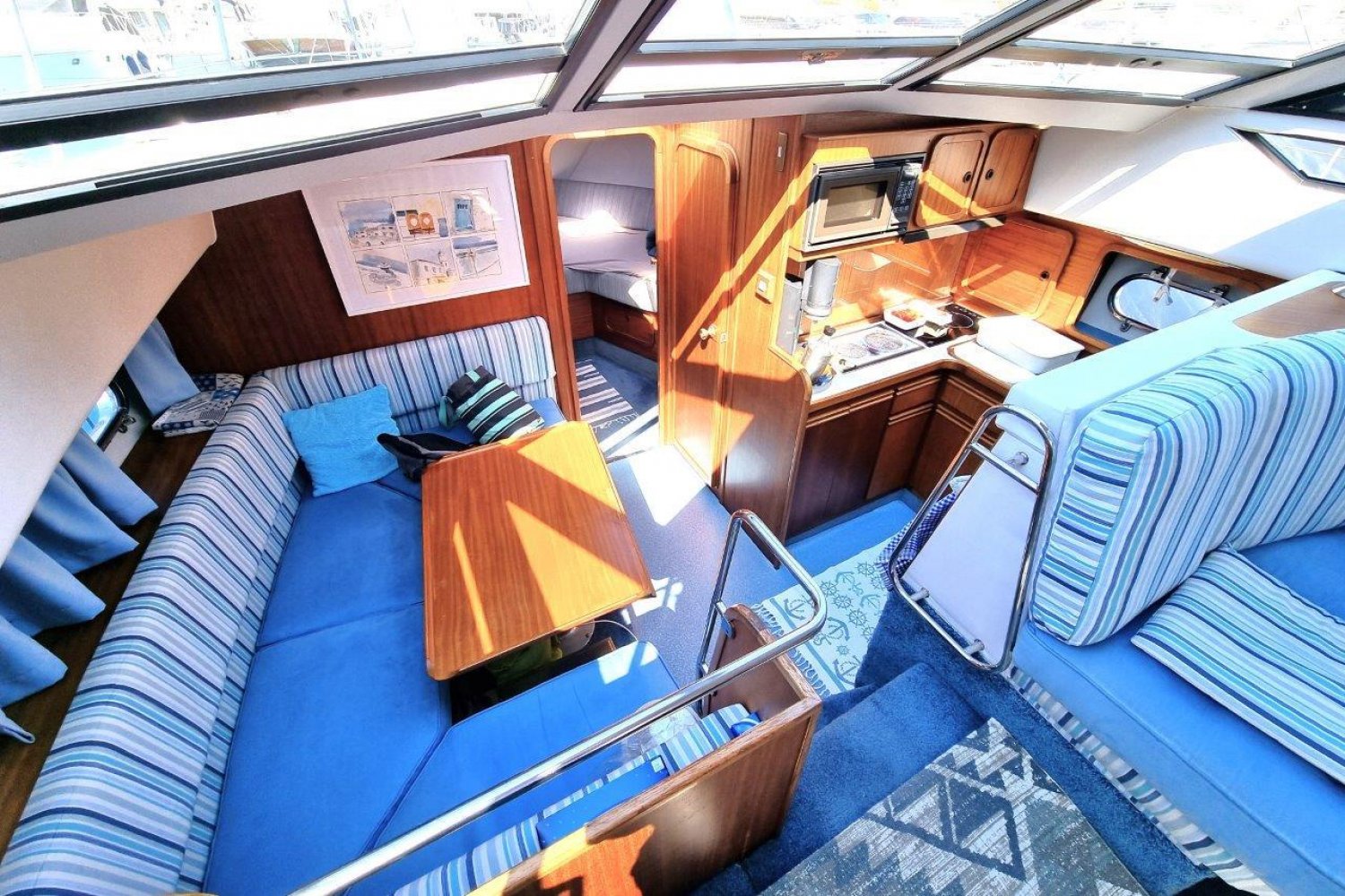 Very well maintained and original Broom 37, from first owner. The boat is more used as a holiday home in the south of France. Therefore only 448 running hours on the engines. This Broom 37 is a very spacious yacht with 2 double cabins with both their own ensuite. The ownerscabin has a dedicated showerroom. Spacious salon, galley and dinette. The aftdeck has coverage by a solid hardtop that can be fully enclosed, so you are covered for sun and rain.