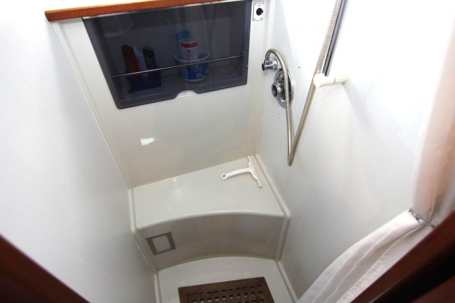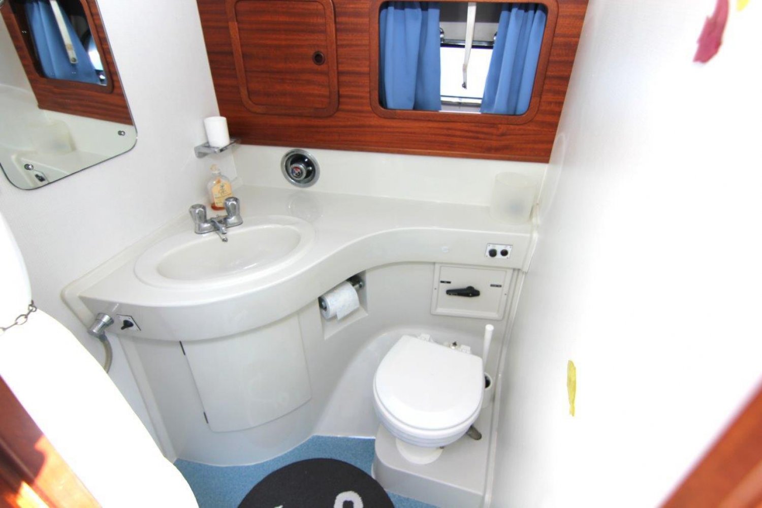 The boat has no modern navigation equipment nor a bowthruster. Good thing is that she is not loaded with old equipment like an old generator or 30 years old airco, as these have no value but cost a lot of time and money to remove. If desired by the new owner, these items must be newly installed. The boat is priced to sell and definitely worth the small investements to be made like new cockpittent and maybe some navigation equipment if desired. Or just enjoy her as she is!  A blackwatertank is installed, but not connected to the toilet. Good to know: without the fixed bimini roof, the height above water is about 320 cm. With the windows folded down appr. 300 cm.