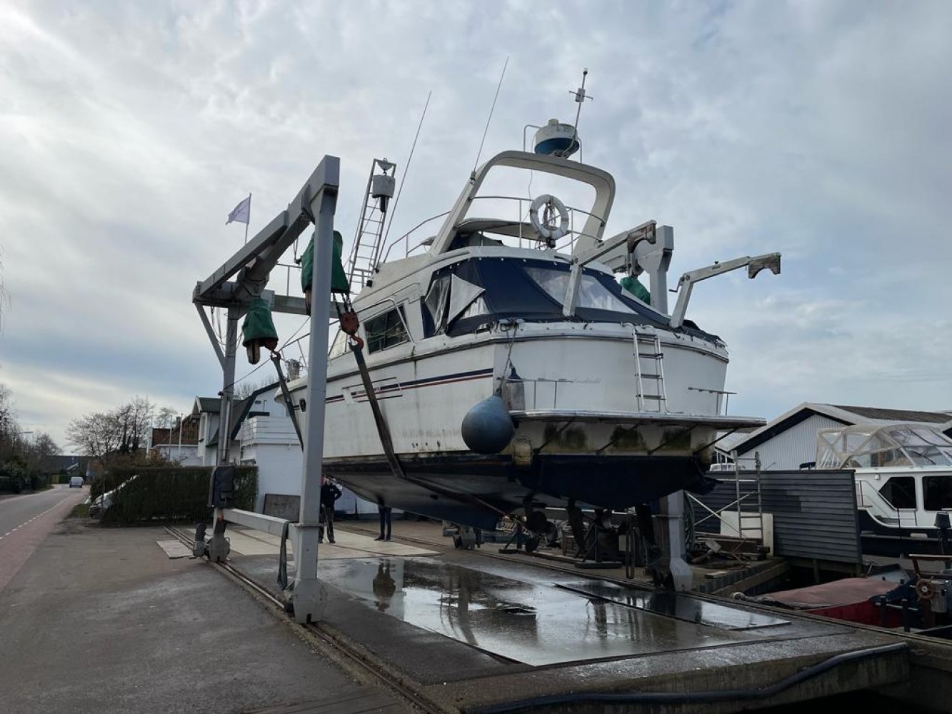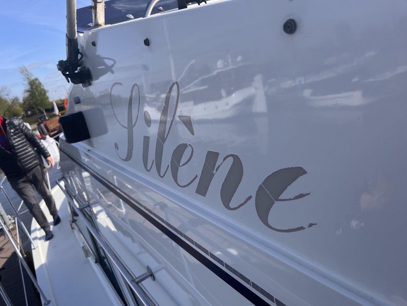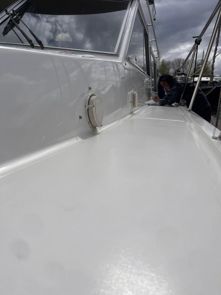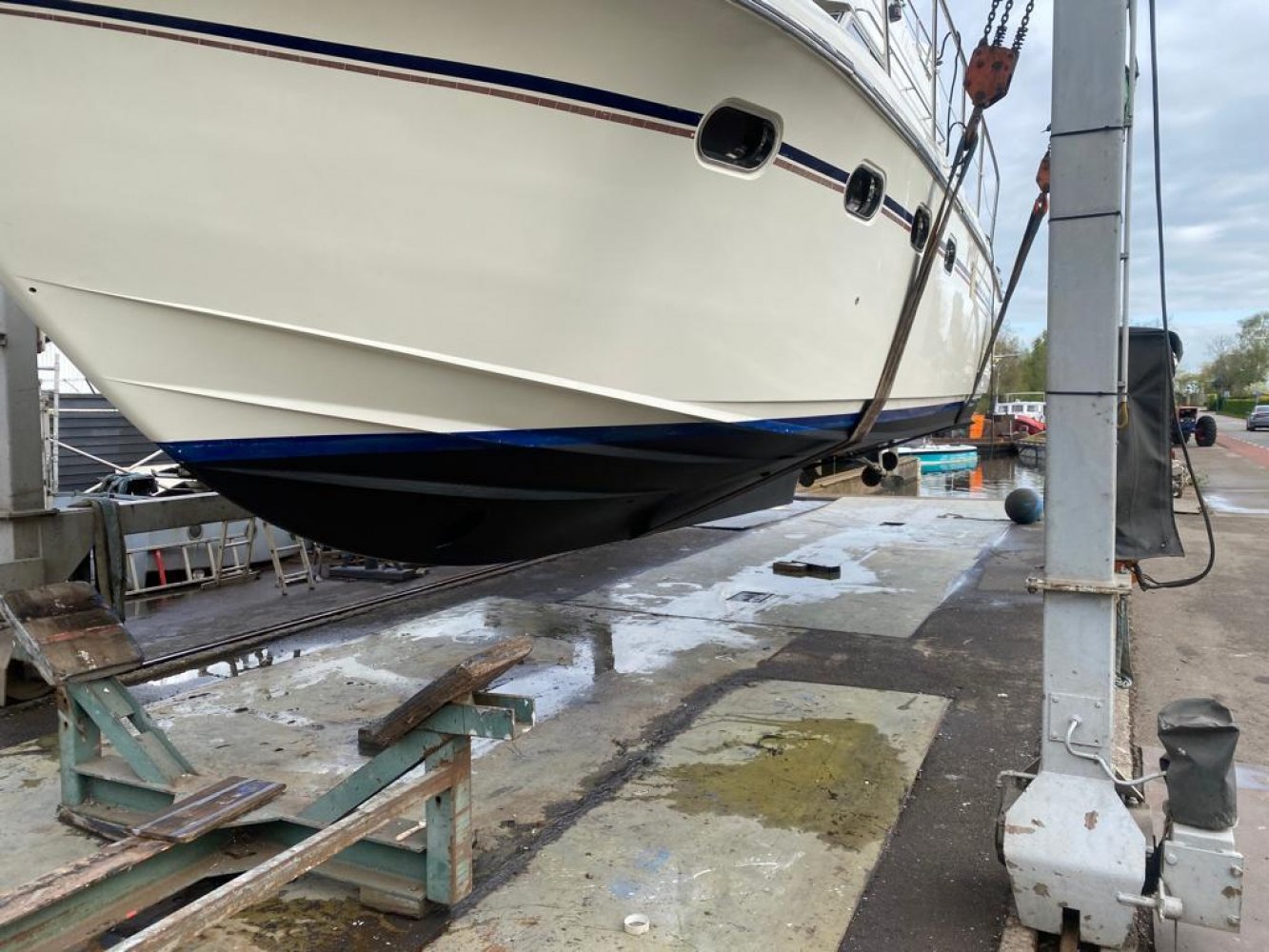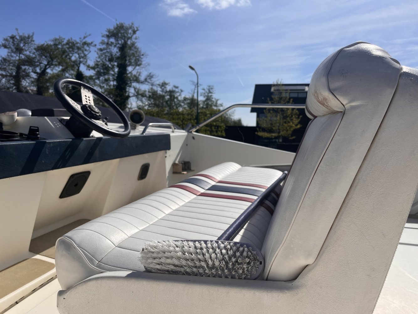 Het schip heeft nieuwe fenders, nieuwe vlag en zelfs een nieuw geuzen vlaggetje. Dit model heeft prachtige RVS patrijspoorten. Op het voordek is een geweldig mooi zonnedek gebouwd met 5 heerlijke kussens die er nog hartstikke goed uitzien. Er is een mooi ruim en goed toegankelijk zwem plateau met een RVS zwemtrap aanwezig. Dus u neemt altijd uw eigen zwembad mee. Er zijn ook nog twee Davids/boot kraantjes op het achterdek gemaakt voor het liften van een klein volgbootje.De tent van het achterdek de achterkuip is nog goed.