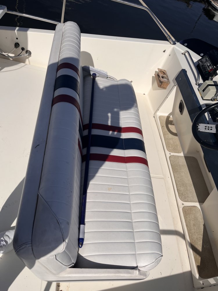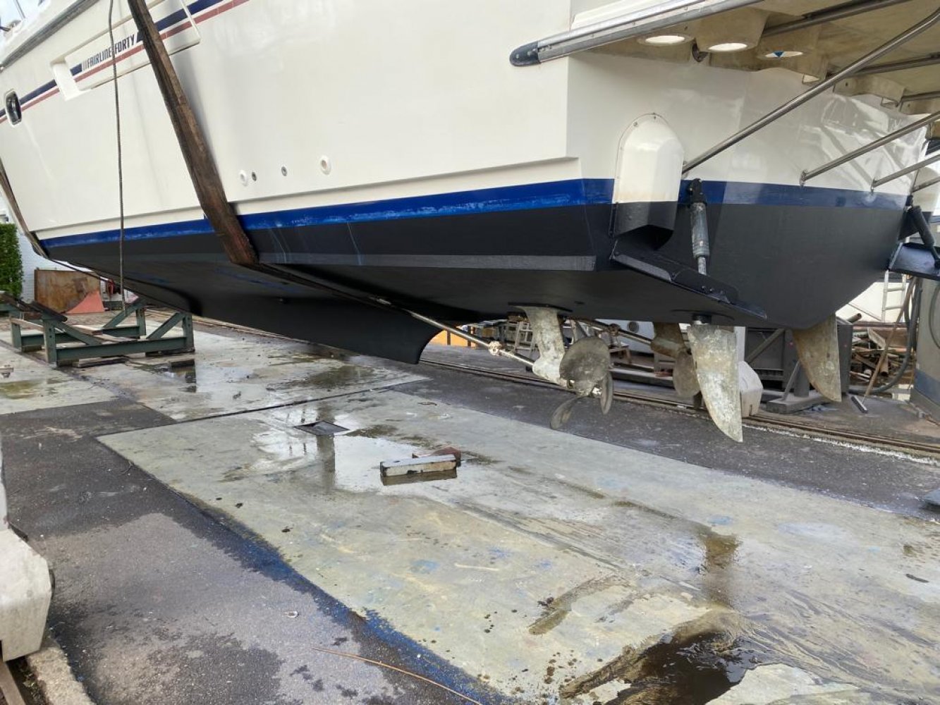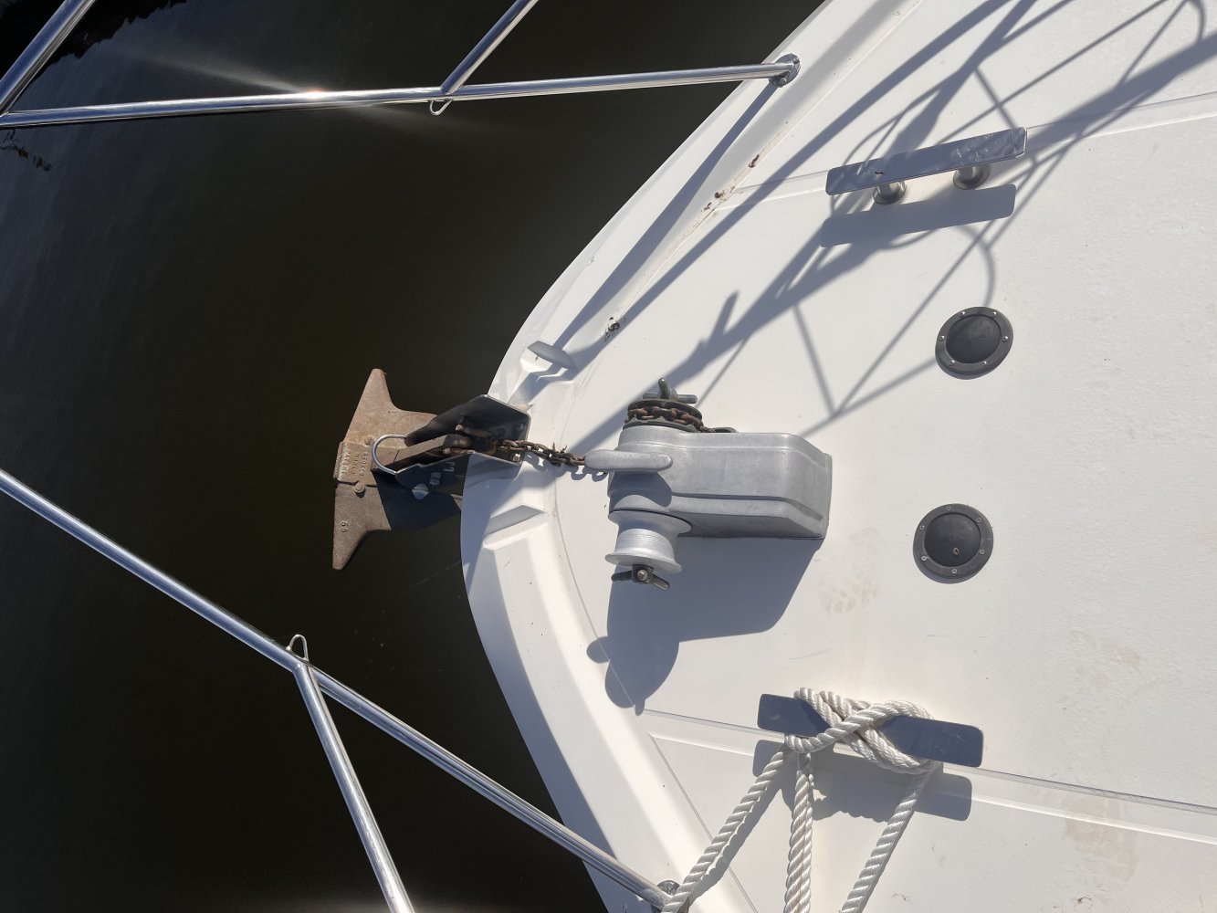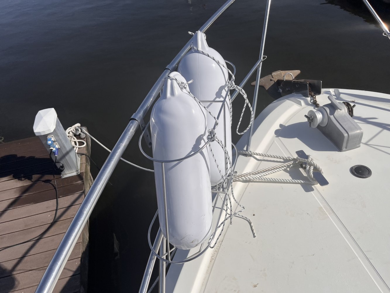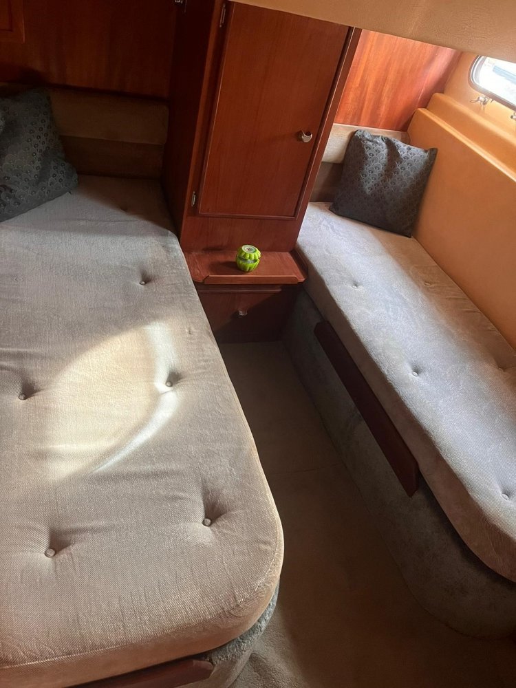 Het schip heeft nieuwe fenders, nieuwe vlag en zelfs een nieuw geuzen vlaggetje. Dit model heeft prachtige RVS patrijspoorten. Op het voordek is een geweldig mooi zonnedek gebouwd met 5 heerlijke kussens die er nog hartstikke goed uitzien. Er is een mooi ruim en goed toegankelijk zwem plateau met een RVS zwemtrap aanwezig. Dus u neemt altijd uw eigen zwembad mee. Er zijn ook nog twee Davids/boot kraantjes op het achterdek gemaakt voor het liften van een klein volgbootje.De tent van het achterdek de achterkuip is nog goed.