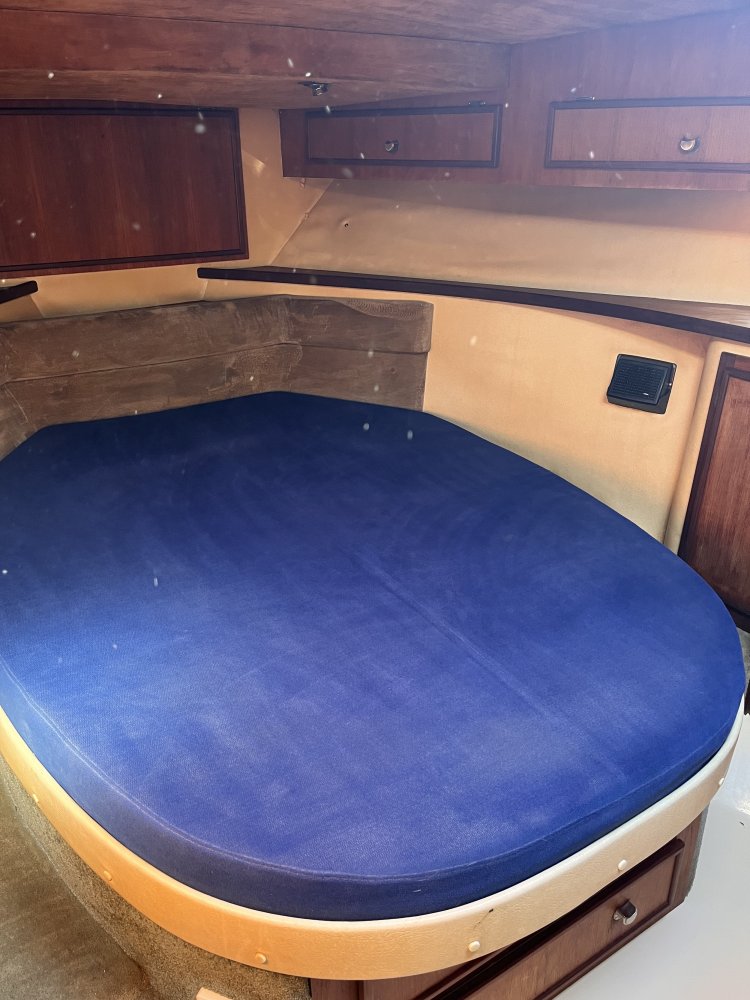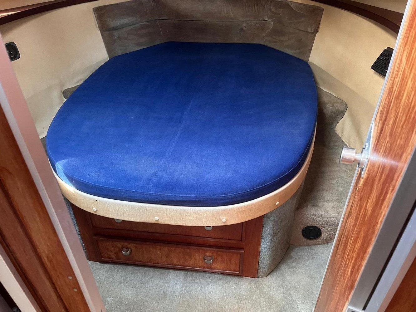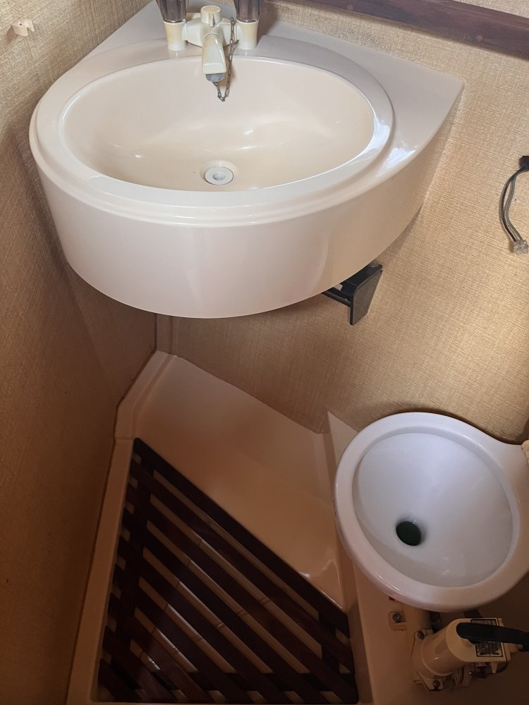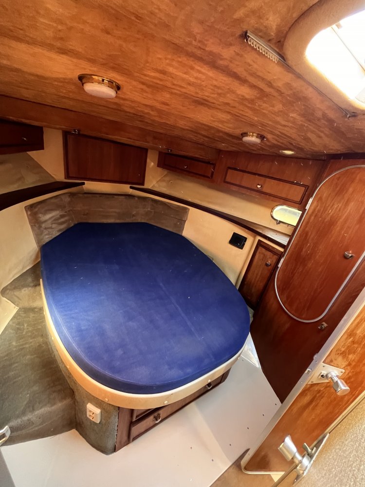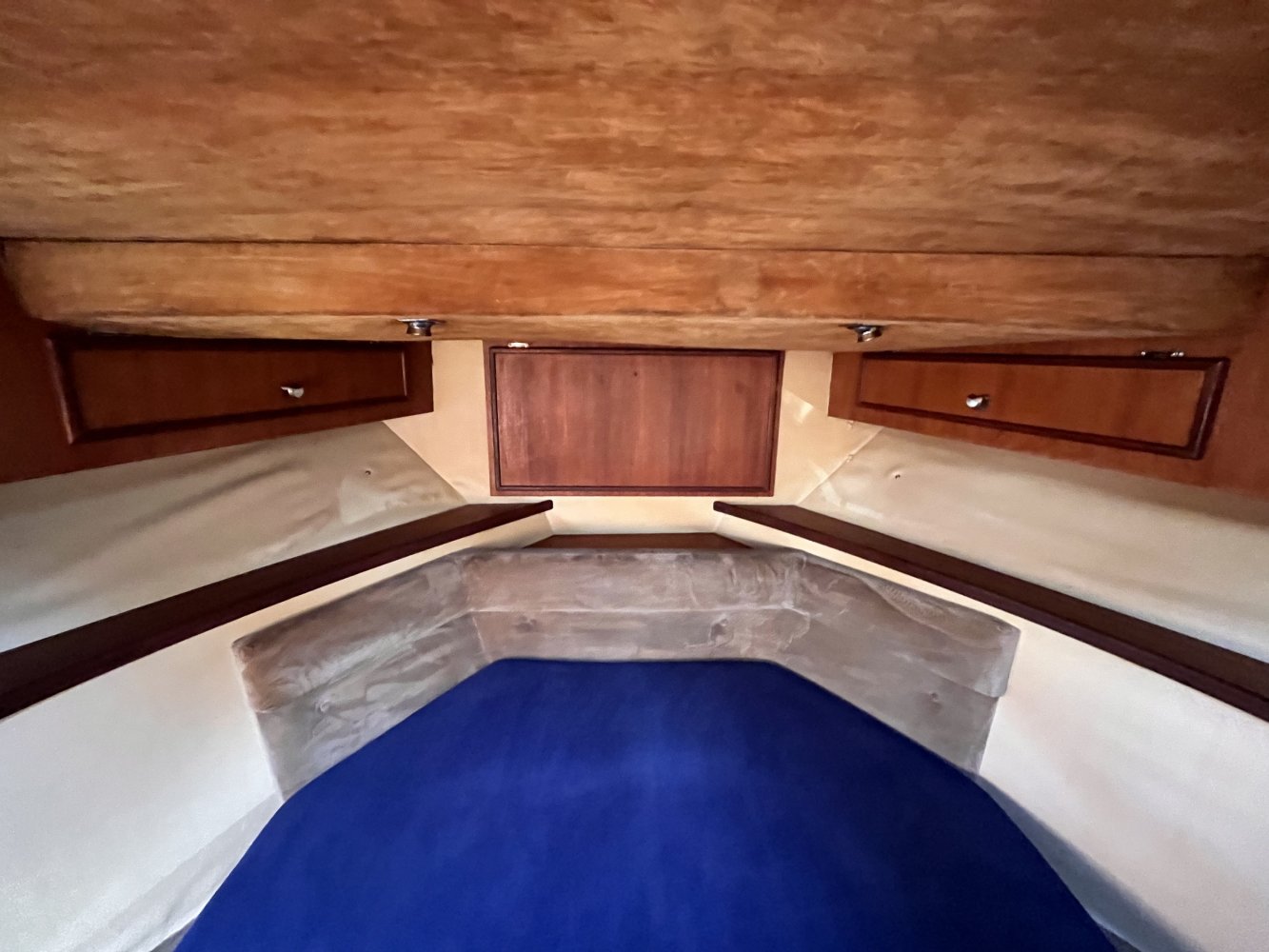 De logeerruimte is erg ruim  en biedt gelegenheid tot twee slaapplaatsen. De toiletruimte heeft een extra wastafel, RVS  patrijspoort, spiegel, hand geschakelde wc (geen lawaai in de nacht). Het duurste van een douche is de opvangbak, en deze is dus hier prachtig aanwezig. Zowel in de voor cabine als in deze toiletcabine en douchecabine zijn diverse ventilaties aanwezig.