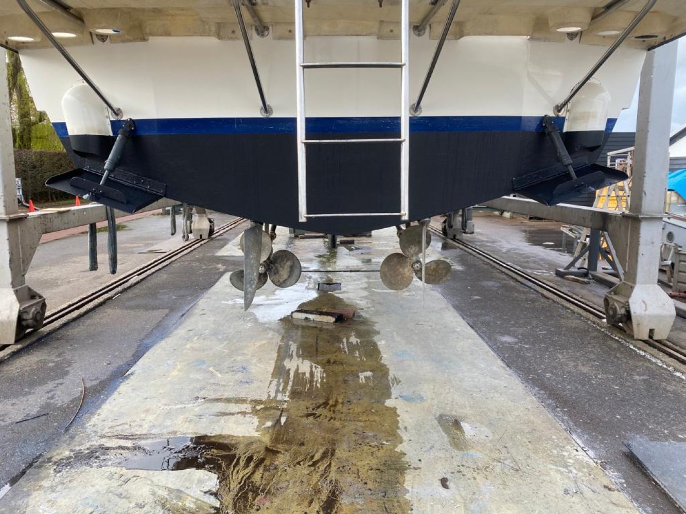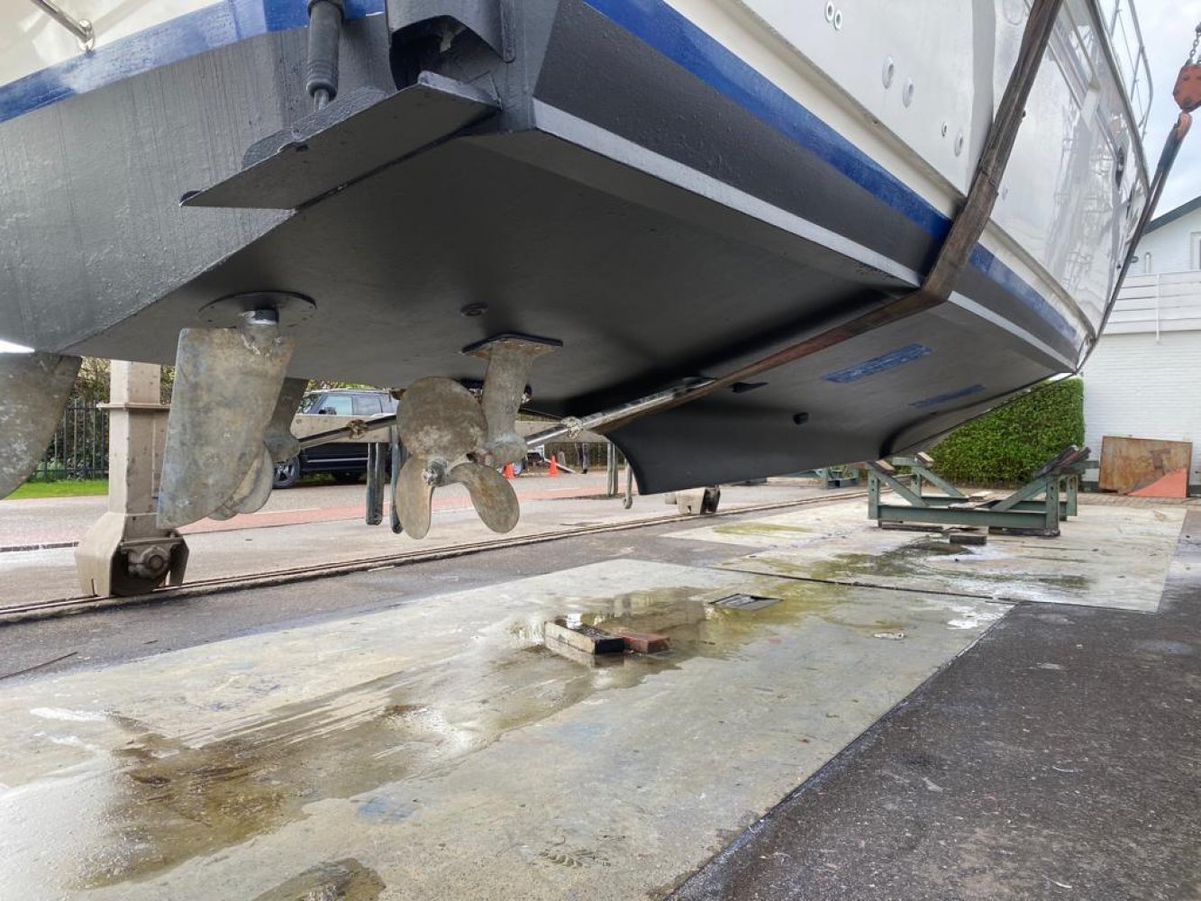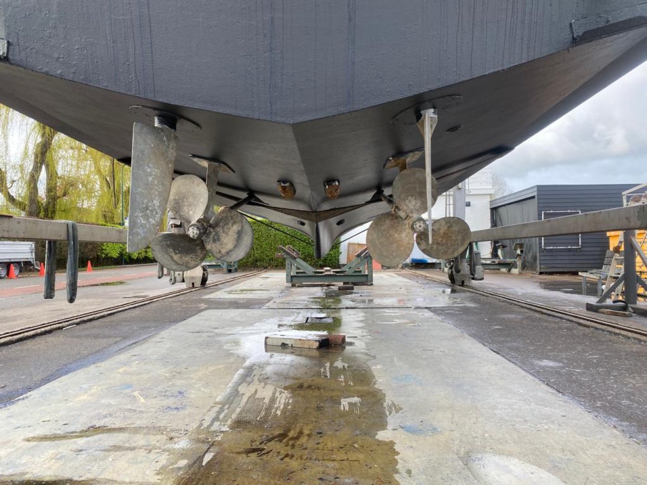 De motoren zijn goed bereikbaar en mooi schoon en er zijn geen lekkages van water, brandstof of olie geconstateerd door mij. De motoren draaien mooi rustig, assen en schroeven zijn net door de werf nagekeken.
