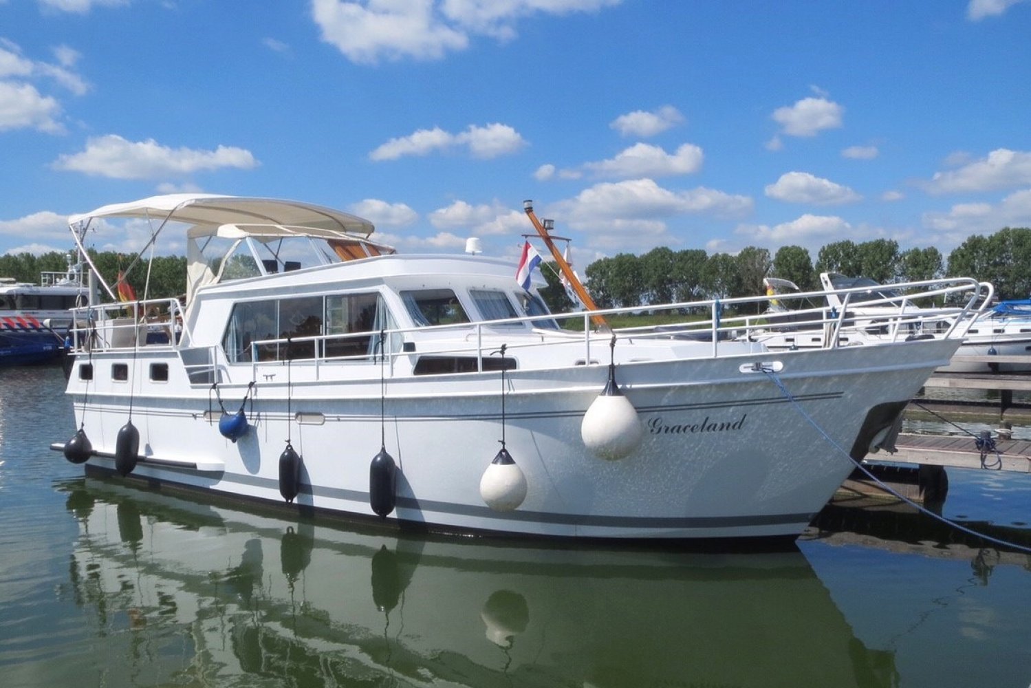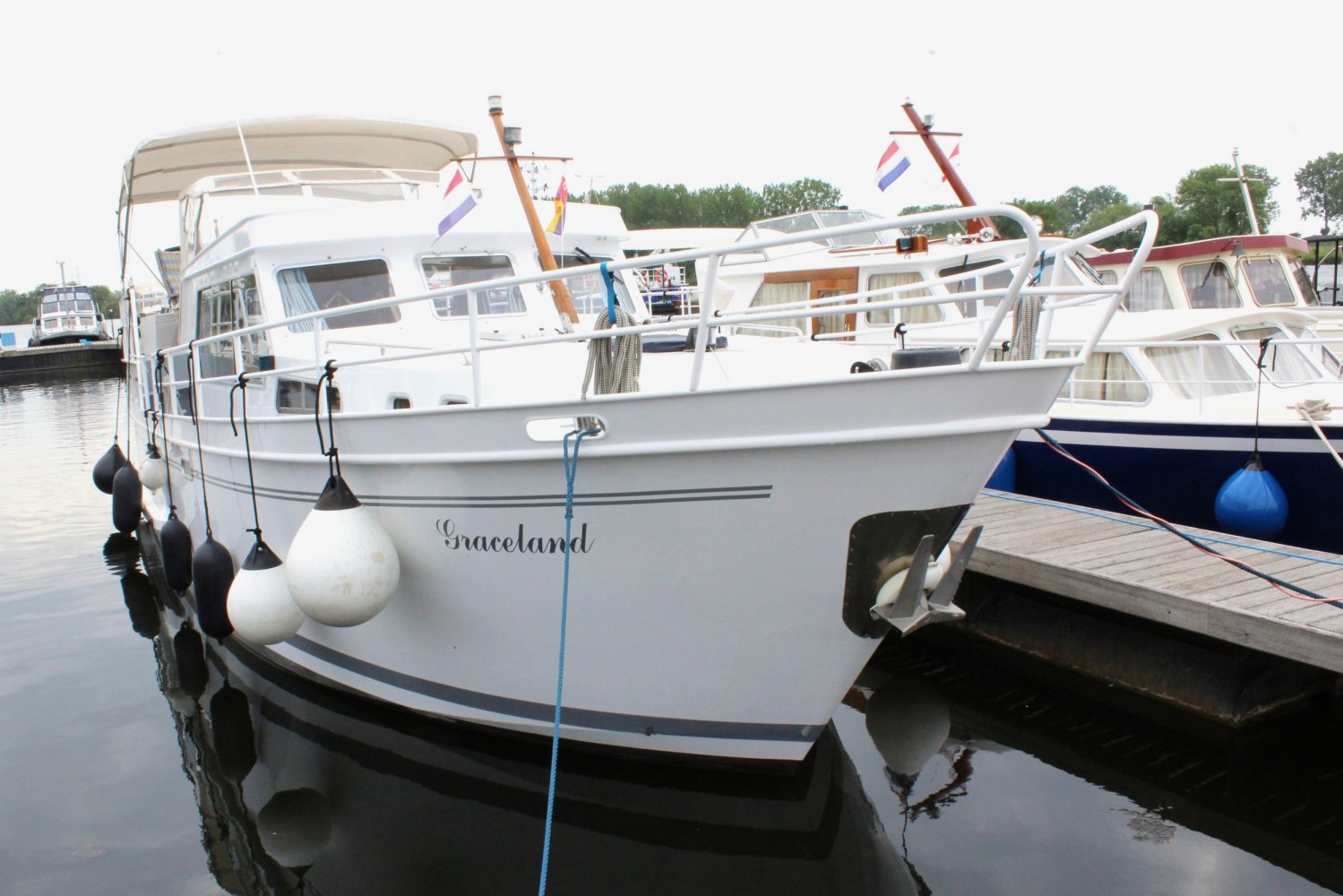 Met deze Hollandia 1200 SL heeft u een groot vaargebied tot uw beschikking, grote rivieren en open wateren maar ook lage bruggen zijn geen probleem voor dit schip. Verder is dit motorjacht uitgerust met een sterke Volvo Penta dieselmotor en een boegschroef waardoor het zich eenvoudig laat manoeuvreren.