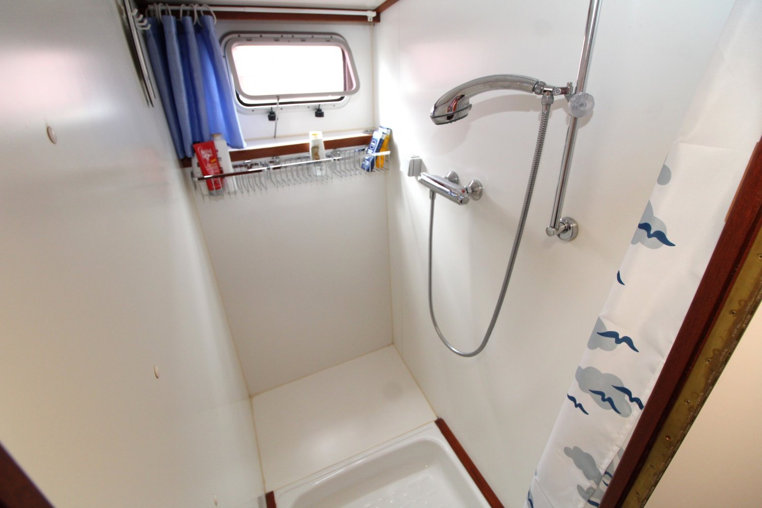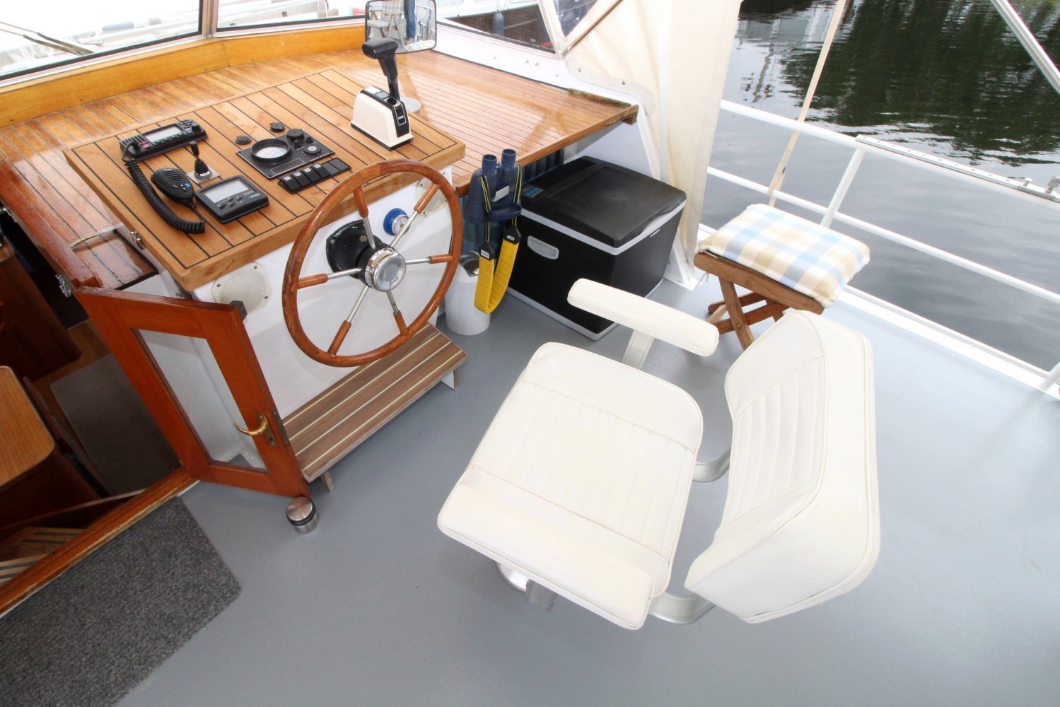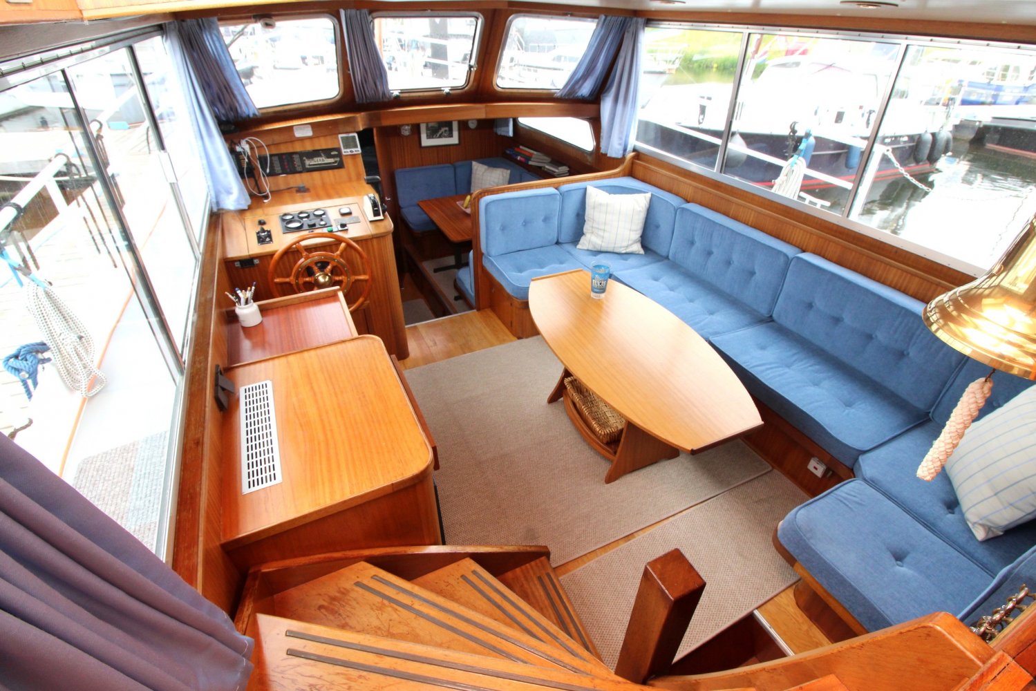 Brede gangboorden met een hoge reling zorgen ervoor dat men zich aan boord van deze Hollandia 1200 SL veilig over het schip kan bewegen. Het achterdek biedt voldoende plaats aan u en uw gasten om van het mooie buitenleven te genieten. Vanaf de hier gelegen stuurstand heeft men een goed overzicht op het schip en de omgeving.