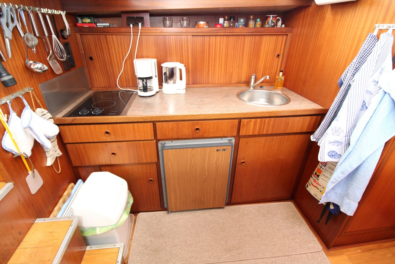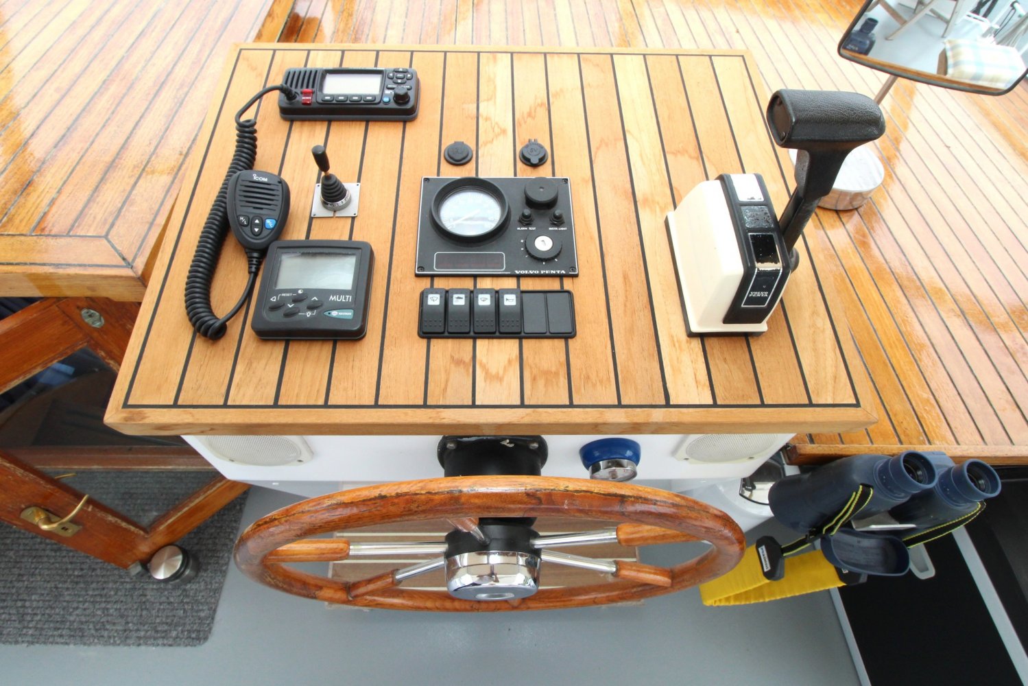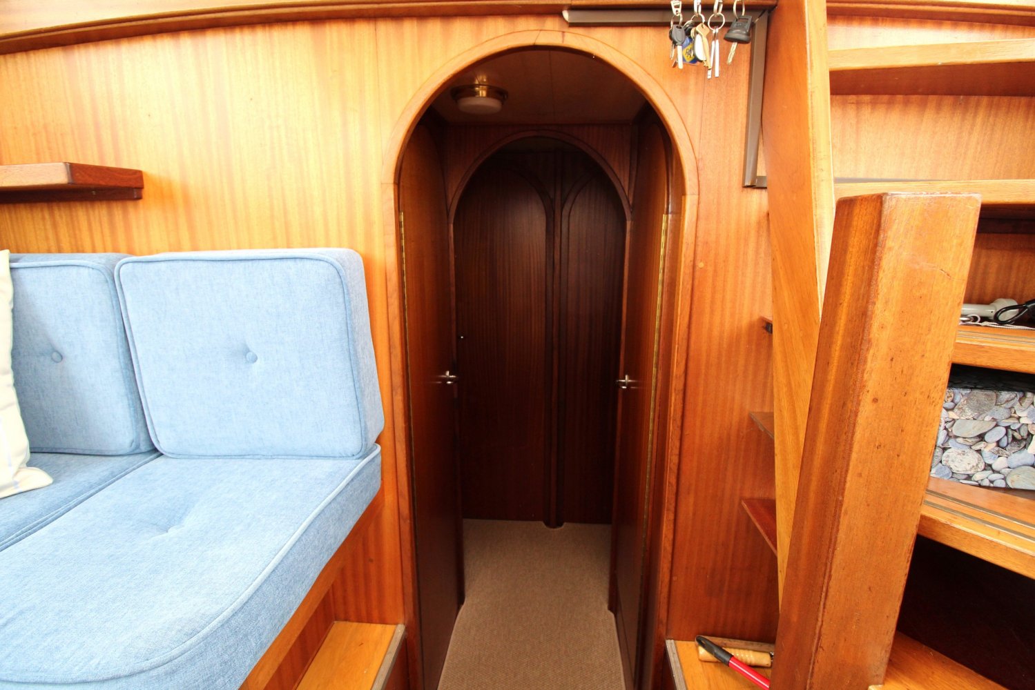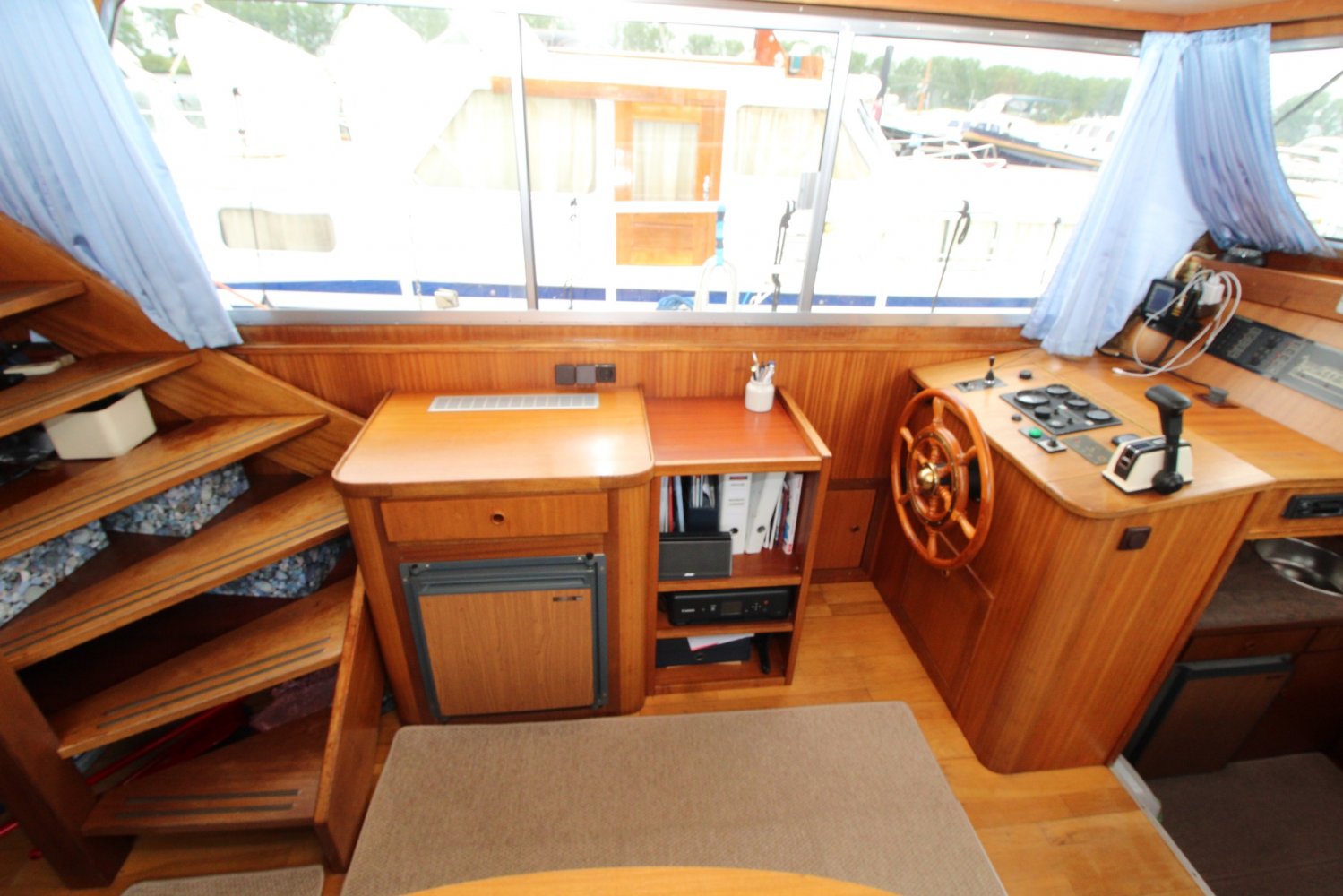 Brede gangboorden met een hoge reling zorgen ervoor dat men zich aan boord van deze Hollandia 1200 SL veilig over het schip kan bewegen. Het achterdek biedt voldoende plaats aan u en uw gasten om van het mooie buitenleven te genieten. Vanaf de hier gelegen stuurstand heeft men een goed overzicht op het schip en de omgeving.