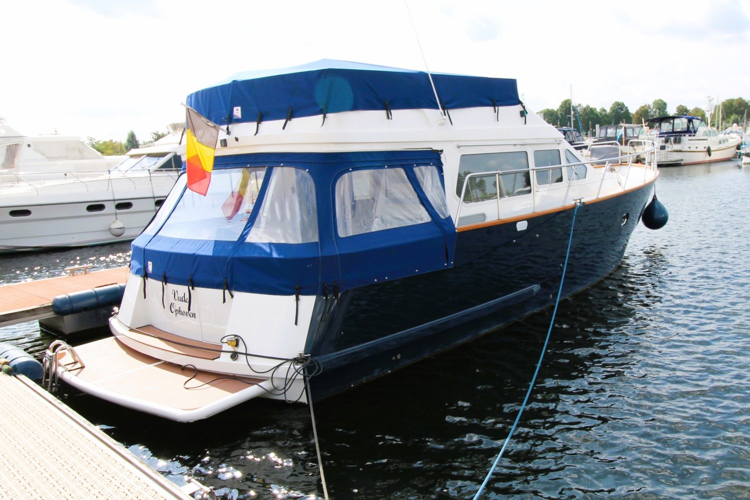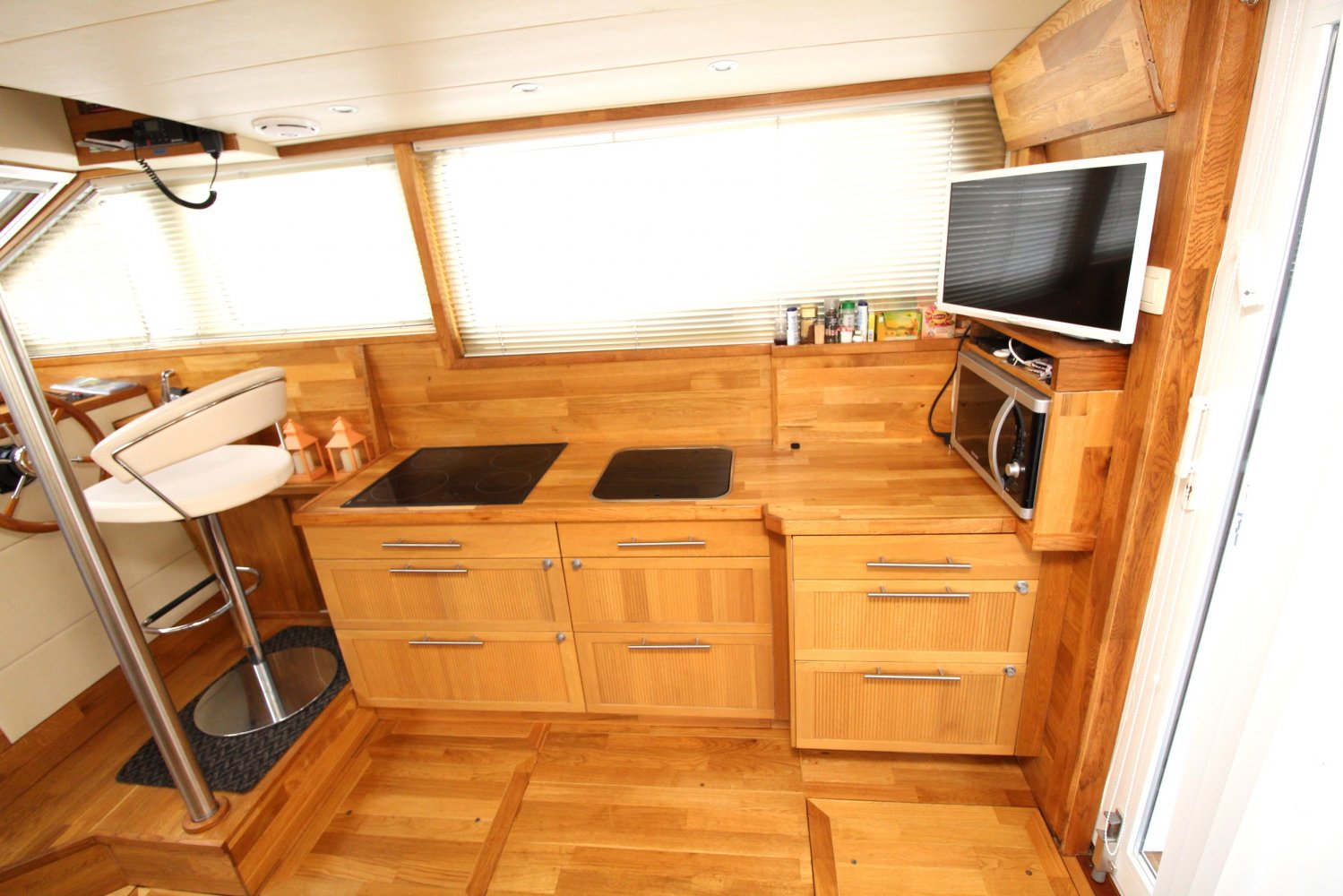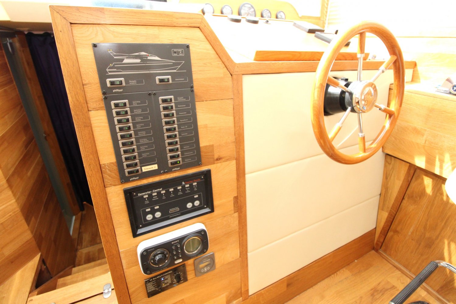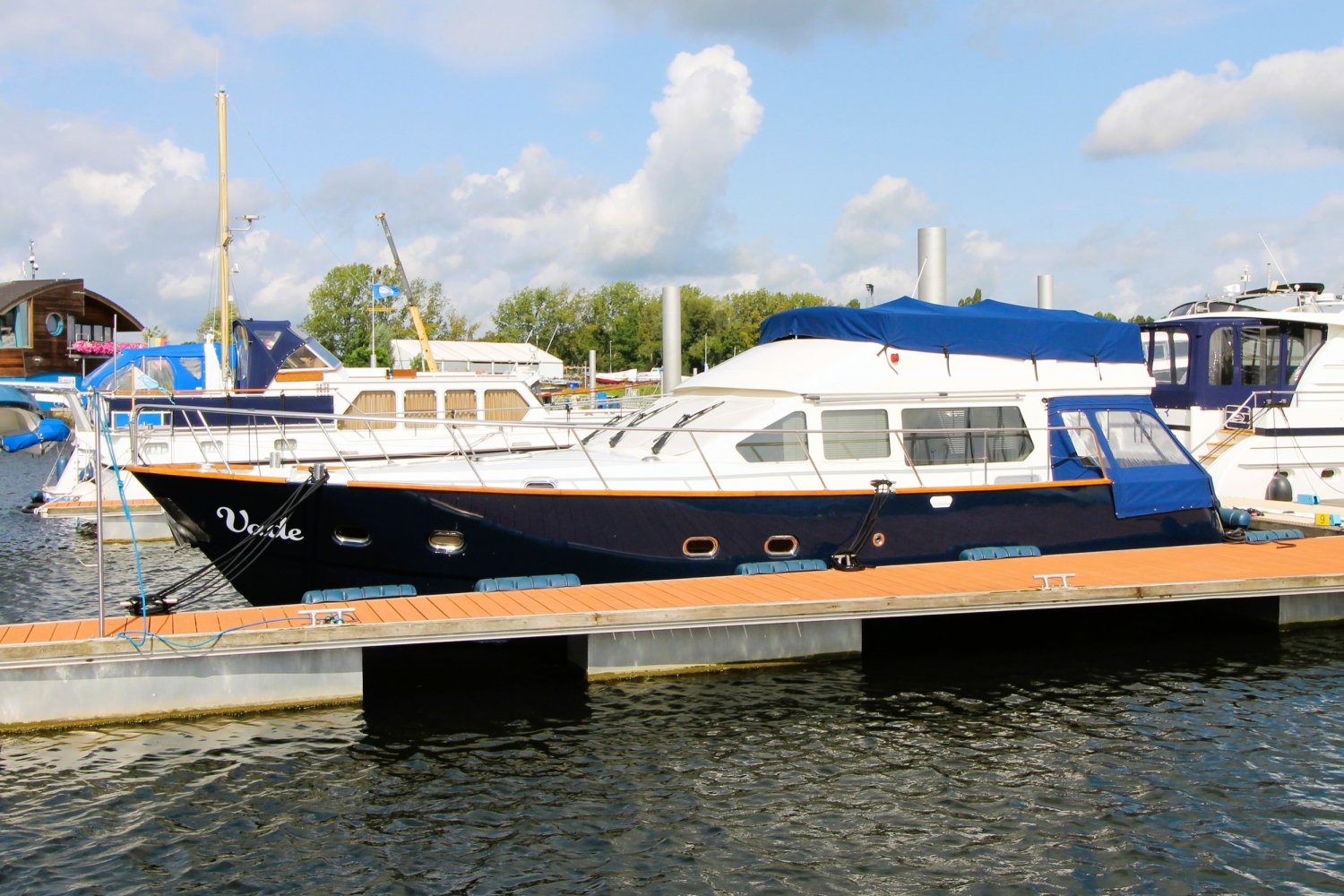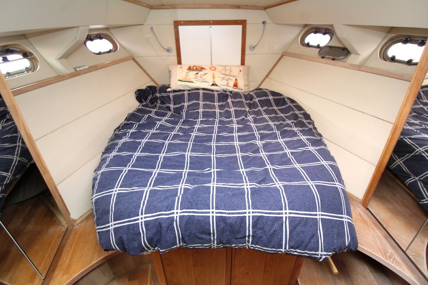 Vanaf de grote flybridge heeft u een schitterend uitzicht op uw omgeving en het vaarwater. Naast een stuurstand is deze voorzien van diverse banken om te kunnen genieten van het zonnetje. Door haar lage doorvaarthoogte staat u een groot vaargebied tot uw beschikking. De Franse kanalen bijvoorbeeld, behoren tot één van de vele mogelijkheden. Ook grote rivieren en open wateren zijn geen probleem voor de 120 PK sterke dieselmotor, dankzij de boeg- en hekschroef manoeuvreert dit motorjacht zeer eenvoudig. Kortom deze Bruce Roberts 1200 Fly heeft alles aan boord voor een aangenaam verblijf op het water en om mooie reizen te maken.