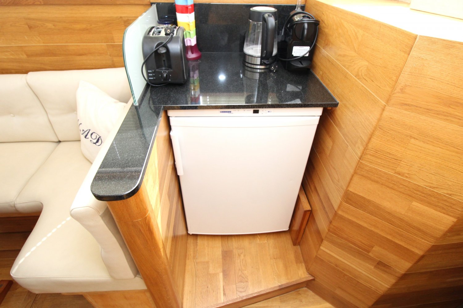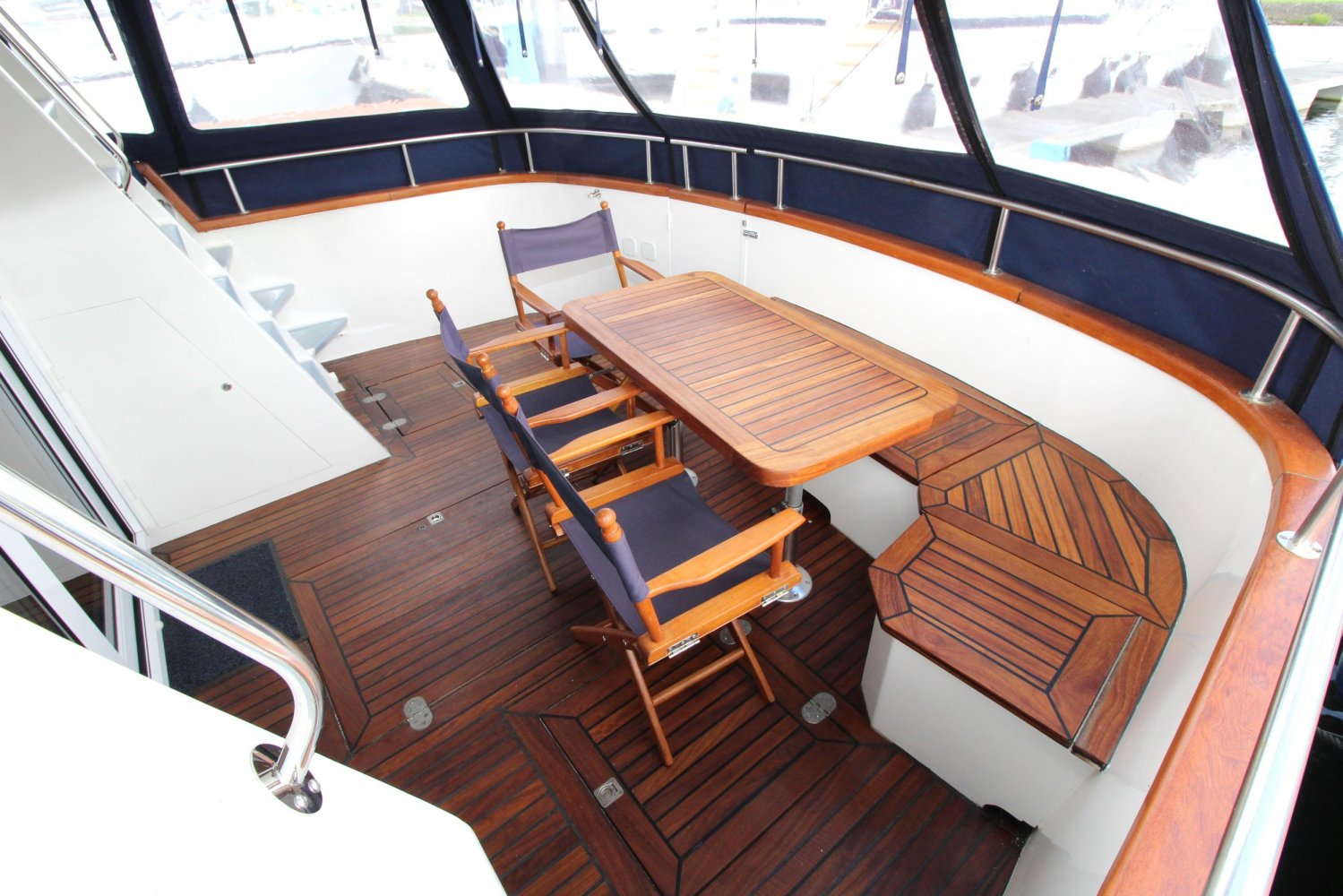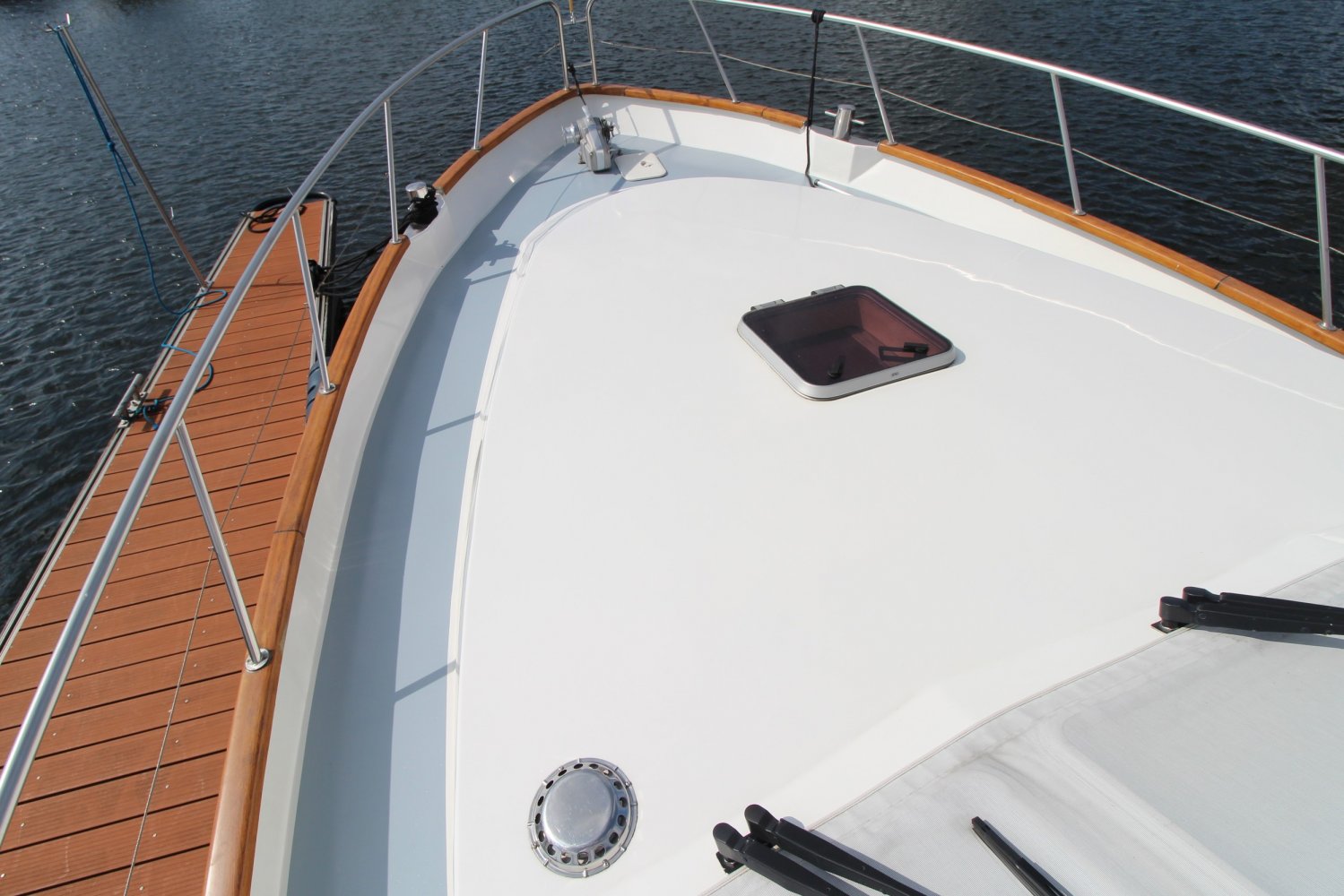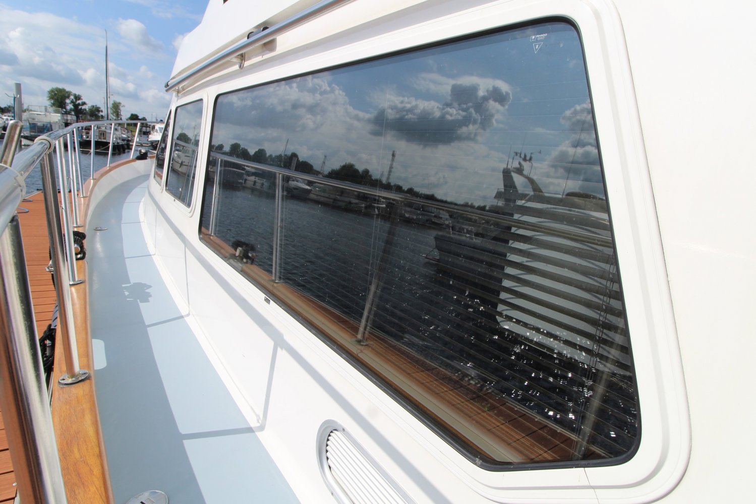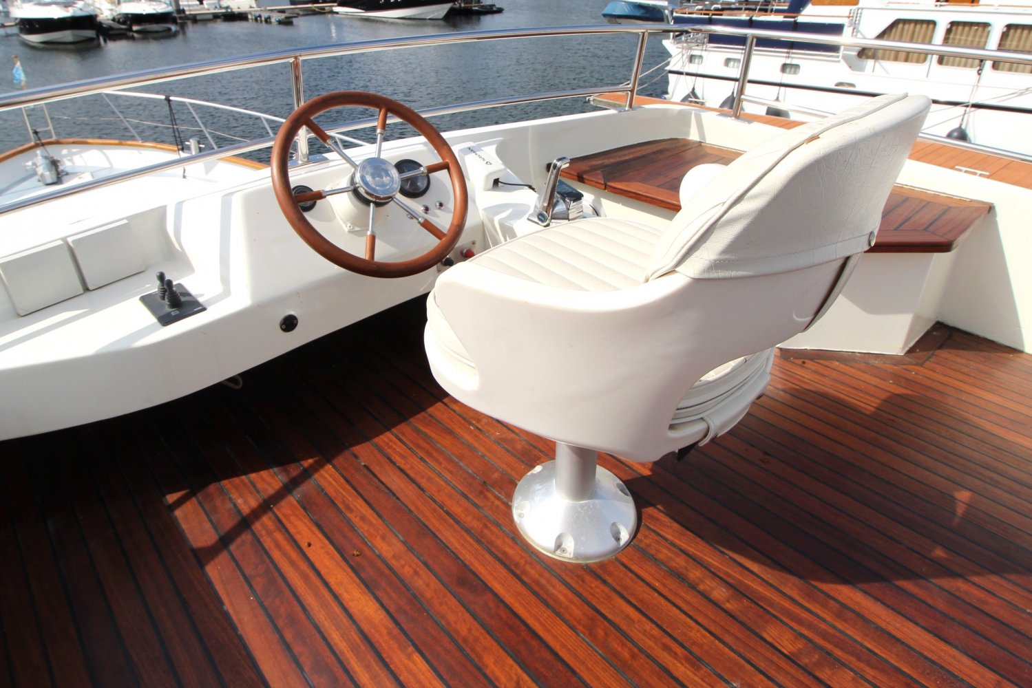 Vanaf de grote flybridge heeft u een schitterend uitzicht op uw omgeving en het vaarwater. Naast een stuurstand is deze voorzien van diverse banken om te kunnen genieten van het zonnetje. Door haar lage doorvaarthoogte staat u een groot vaargebied tot uw beschikking. De Franse kanalen bijvoorbeeld, behoren tot één van de vele mogelijkheden. Ook grote rivieren en open wateren zijn geen probleem voor de 120 PK sterke dieselmotor, dankzij de boeg- en hekschroef manoeuvreert dit motorjacht zeer eenvoudig. Kortom deze Bruce Roberts 1200 Fly heeft alles aan boord voor een aangenaam verblijf op het water en om mooie reizen te maken.