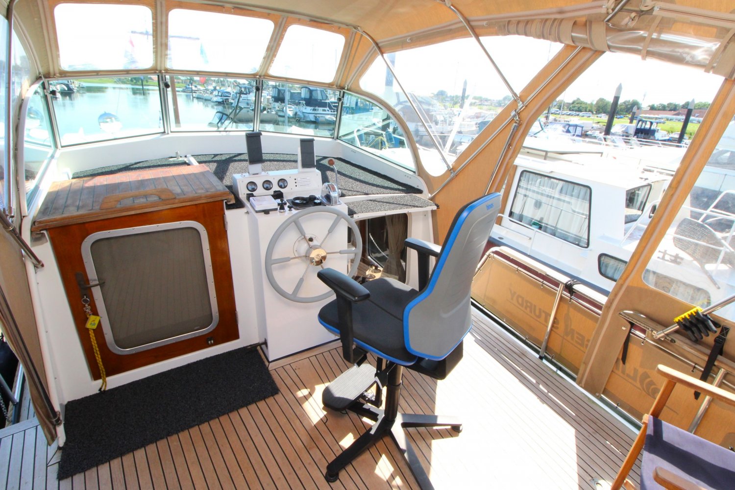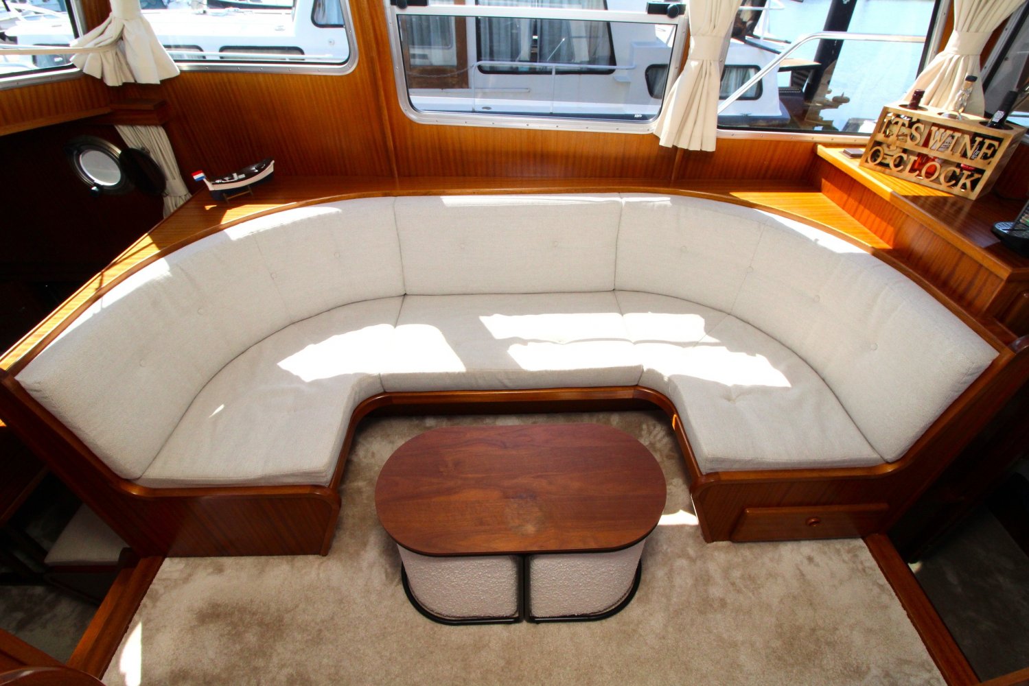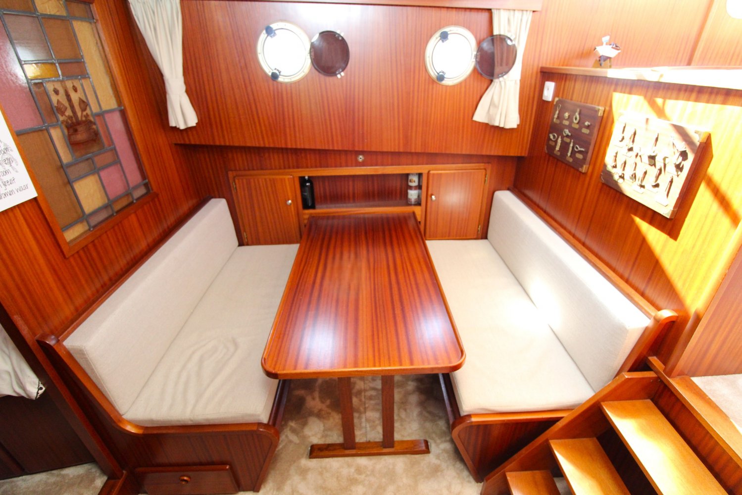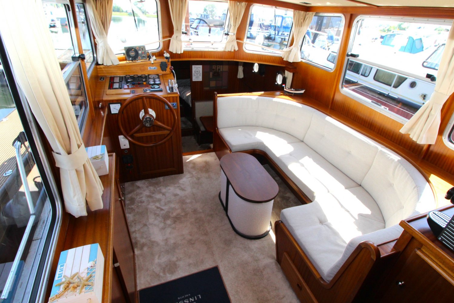 Deze Linssen Classic Sturdy 35 Ac heeft een gezellig interieur welke modern oogt door met name de nieuwe vloerbedekking en de lichte bekleding. Grote ramen zorgen voor veel lichtinval en geven de salon en kombuis een ruime uitstraling. De kombuis is ingericht met een comfortabele dinette, welke eenvoudig veranderd kan worden in 2 extra slaapplaatsen. In de boeg treft u een gastenhut aan en een badkamer met een wastafel, een toilet en een douche, welke momenteel buiten gebruik is. De master bedroom is ingericht met een 2 persoons vrijstaand bed en kasten. Patrijspoorten zorgen hier voor een voldoende lichtinval en ventilatie en geven de ruimte een aangename atmosfeer.