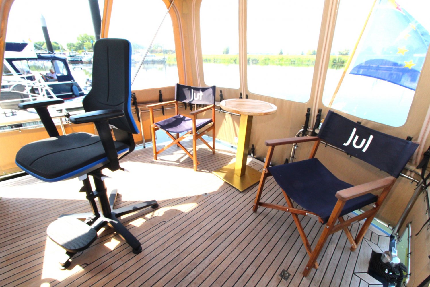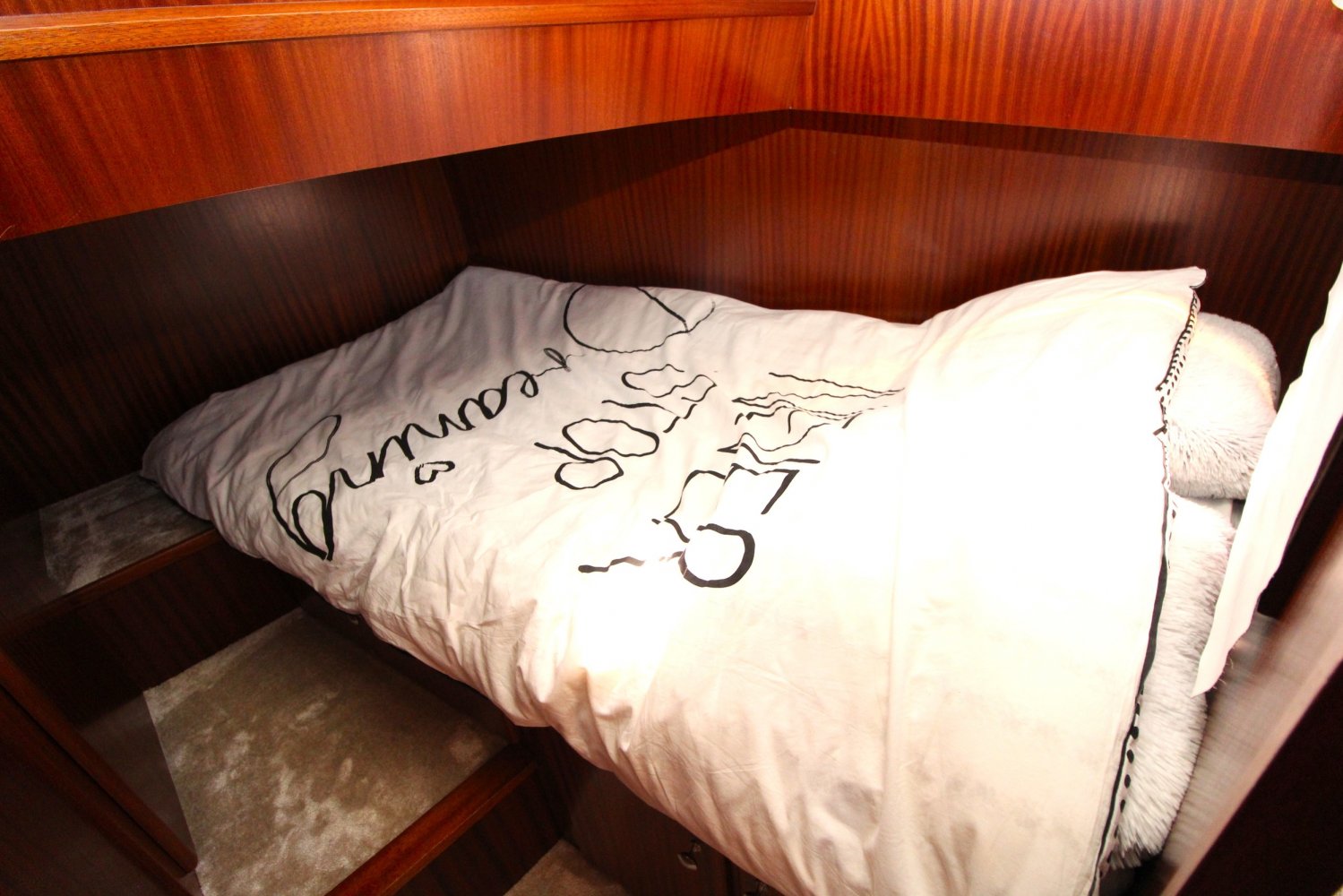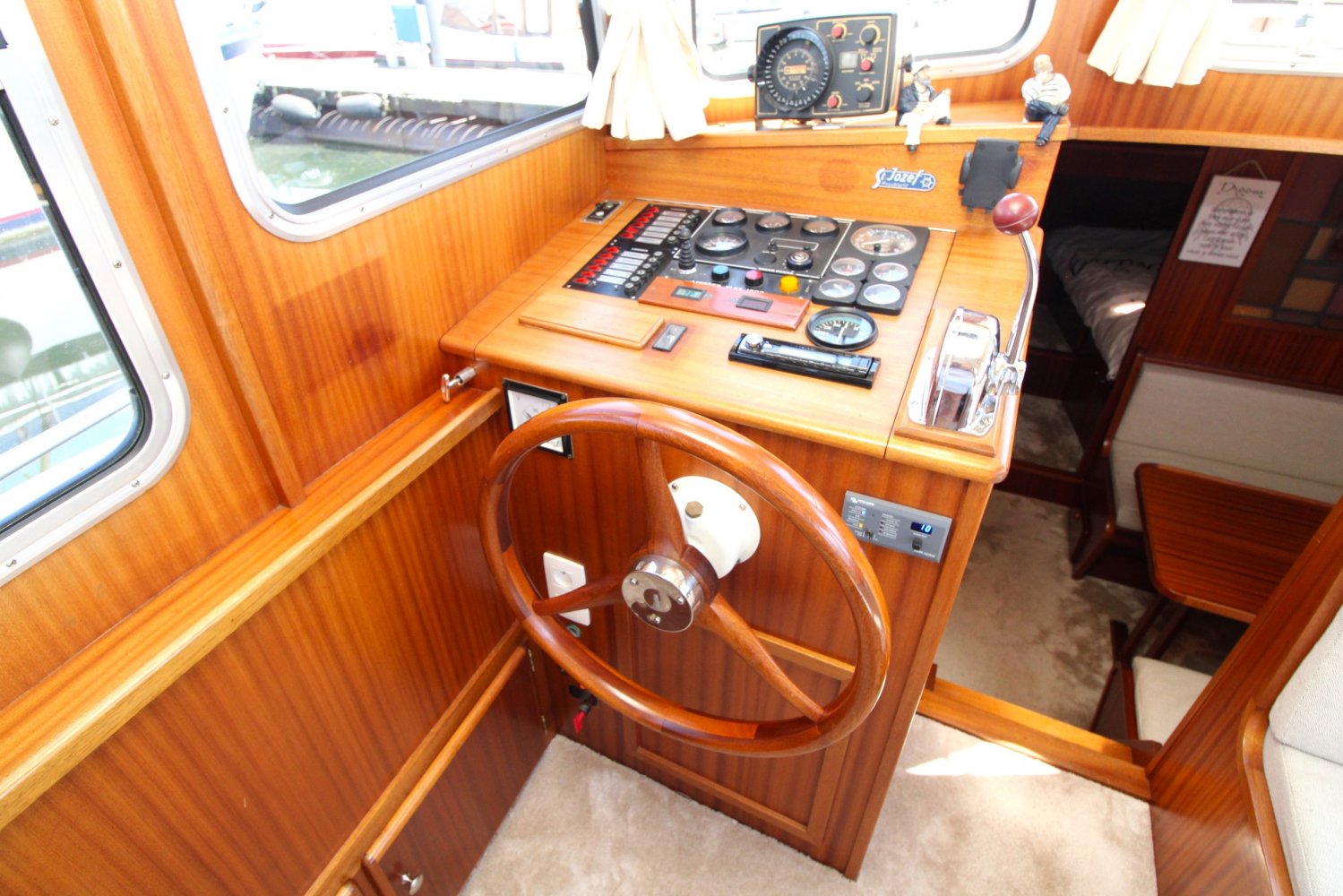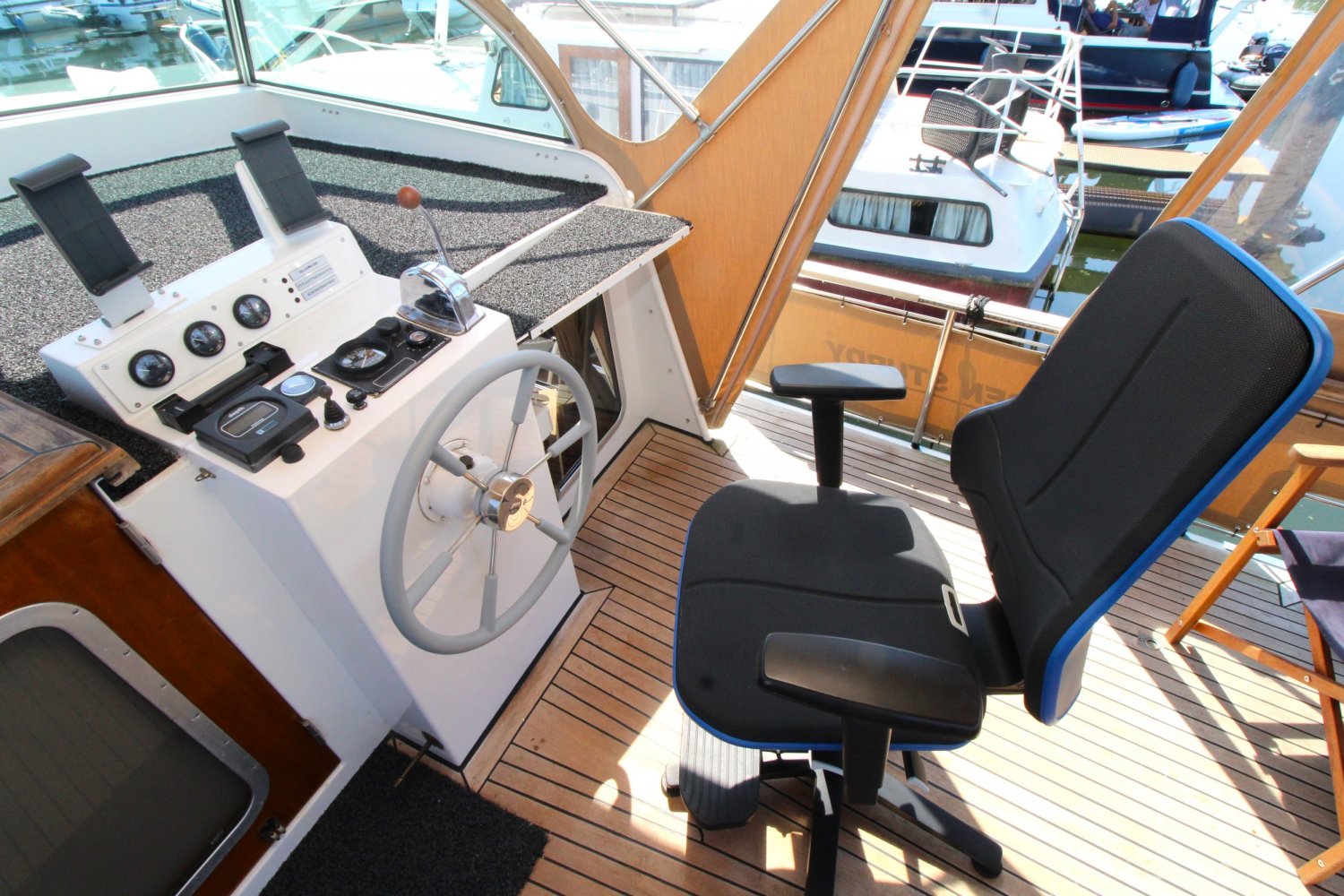 Deze Linssen Classic Sturdy 35 Ac heeft een gezellig interieur welke modern oogt door met name de nieuwe vloerbedekking en de lichte bekleding. Grote ramen zorgen voor veel lichtinval en geven de salon en kombuis een ruime uitstraling. De kombuis is ingericht met een comfortabele dinette, welke eenvoudig veranderd kan worden in 2 extra slaapplaatsen. In de boeg treft u een gastenhut aan en een badkamer met een wastafel, een toilet en een douche, welke momenteel buiten gebruik is. De master bedroom is ingericht met een 2 persoons vrijstaand bed en kasten. Patrijspoorten zorgen hier voor een voldoende lichtinval en ventilatie en geven de ruimte een aangename atmosfeer.