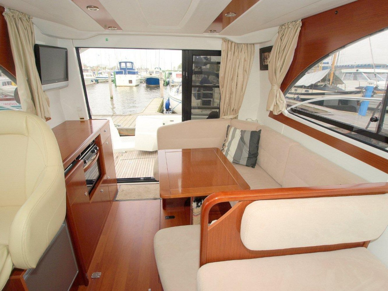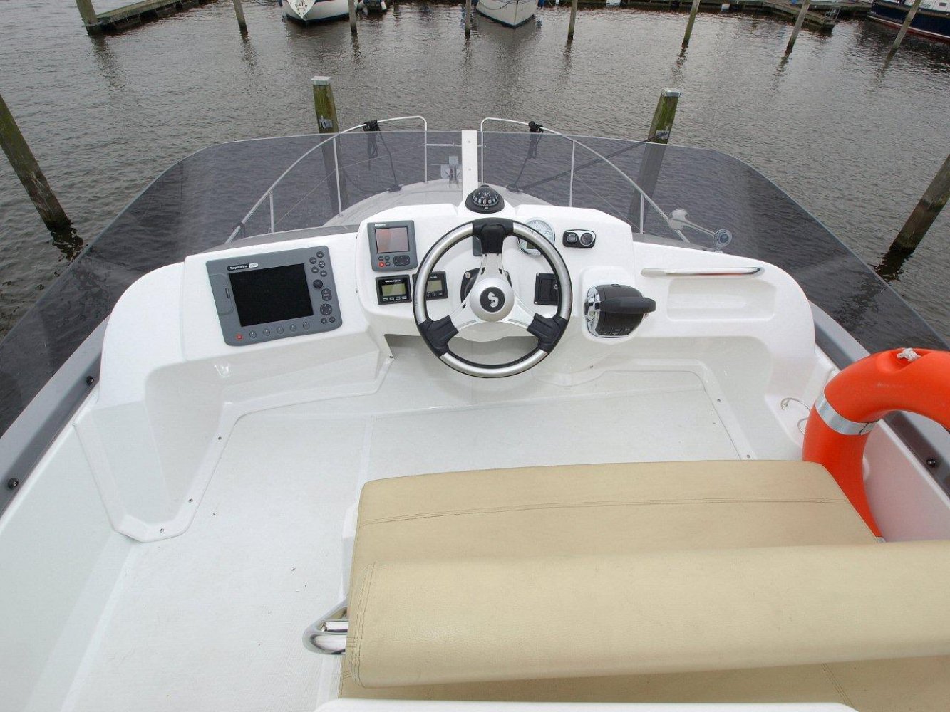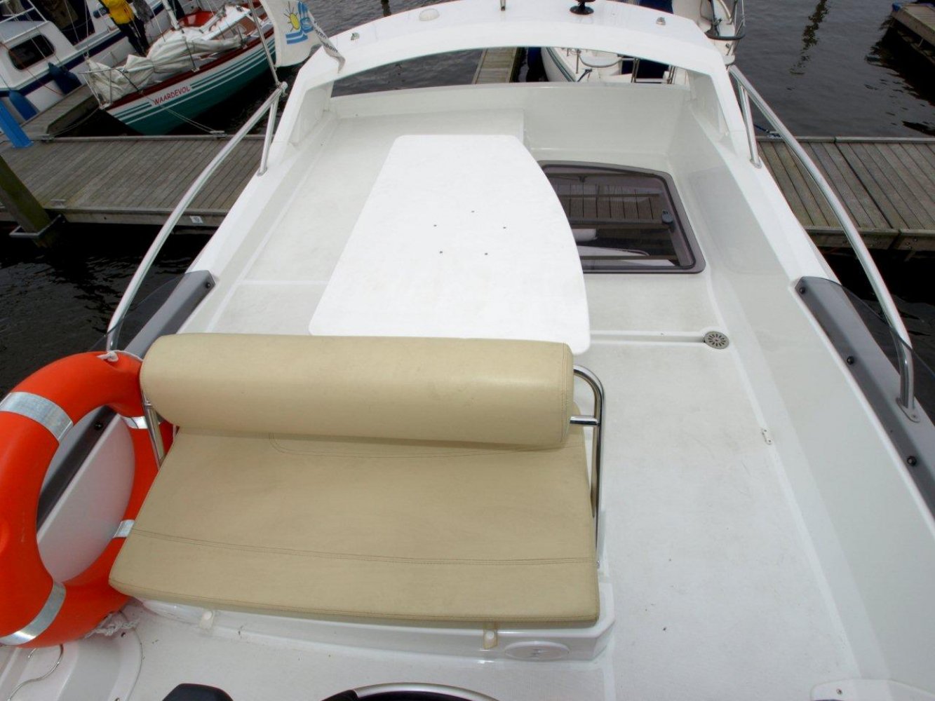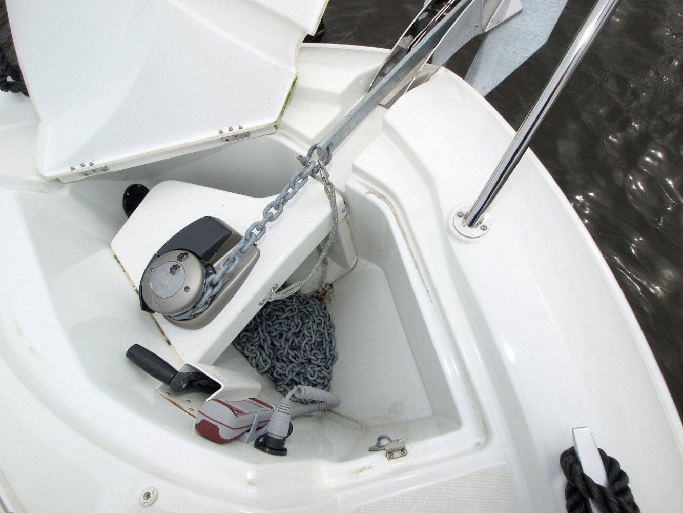 De Beneteau Antares 30 met flybridge is een fraai gelijnd en modern jacht welke ook op hogere snelheden goed vaart. Het exemplaar dat wij aanbieden is in uitstekende staat en compleet uitgerust. Dit schip is in april 2017 voorzien van nieuwe antifouling en geheel gepoetst, dus klaar voor een nieuw seizoen. Bij het aan boord stappen valt meteen het grote zwemplatform op en de gezellige kuip. Beide zijn voorzien van teak. Vanaf de kuip is de royale flybridge bereikbaar. Hier is het niet alleen fijn sturen, maar ook gezellig borrelen met een paar mensen of heerlijk zonnen. De stuurstand op de flybridge is overigens voorzien van een grote Raymarine kleurenplotter, een extra Raymarine ST70 multi display, bediening van de boegschroef en elektronische motorbediening. Via de ganboorden is het voordek bereikbaar. Hier is een groot zonnebed te maken en toegang tot het ruime ankerluik met elektrische lier. De salon is heerlijk licht en ruim van opzet. De bank aan bakboord is comfortabel. De keuken aan stuurboord biedt alle comfort, van oven tot magnetron. De stuurstand biedt wederom de nodige apparatuur en mogelijkheden. Opvallend is de trolling valve, welke de mogelijkheid biedt om met maar 1,5 km/uur te varen (ipv 6 km/uur), waardoor aanleggen een stuk prettiger is. Naast de stuurstand is een bankje voor een passagier. In het voorschip zijn 2 dubbele hutten (1 met stapelbed en 1 met eilandbed) en de natte cel geplaatst. De algehele ruimte aan boord is verrassend voor een schip van deze afmeting. Zoekt u een stoer en zeewaardig schip met flybridge waar de kop net vanaf is, dan kunnen we u van harte aanraden een keer te komen kijken. Uw jachtmakelaar is White Whale Willemstad, bereikbaar via mail of op +31 (0) 168 820 208.