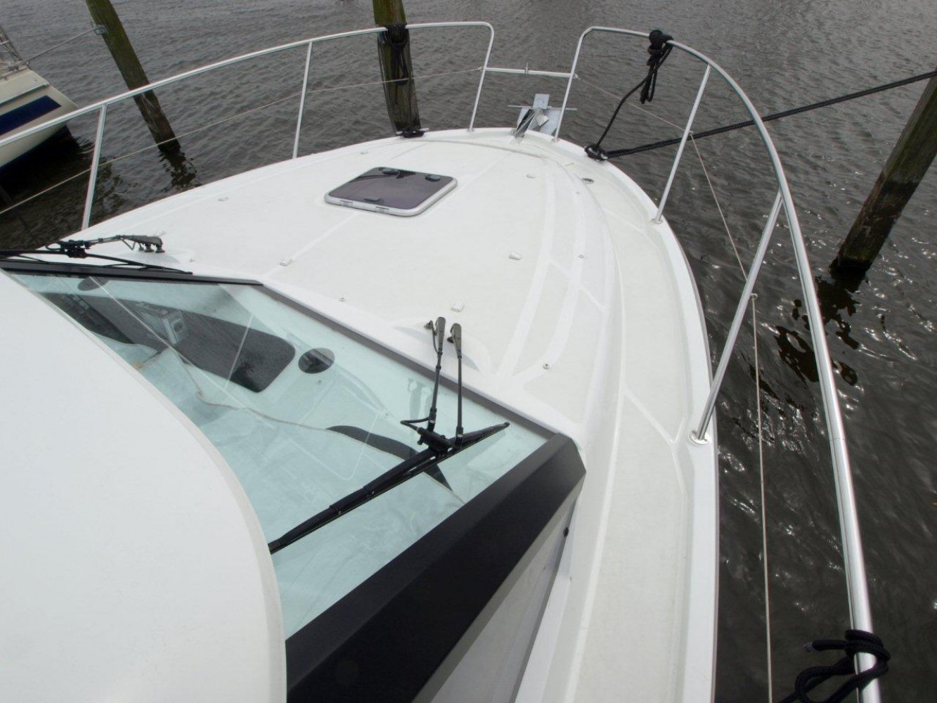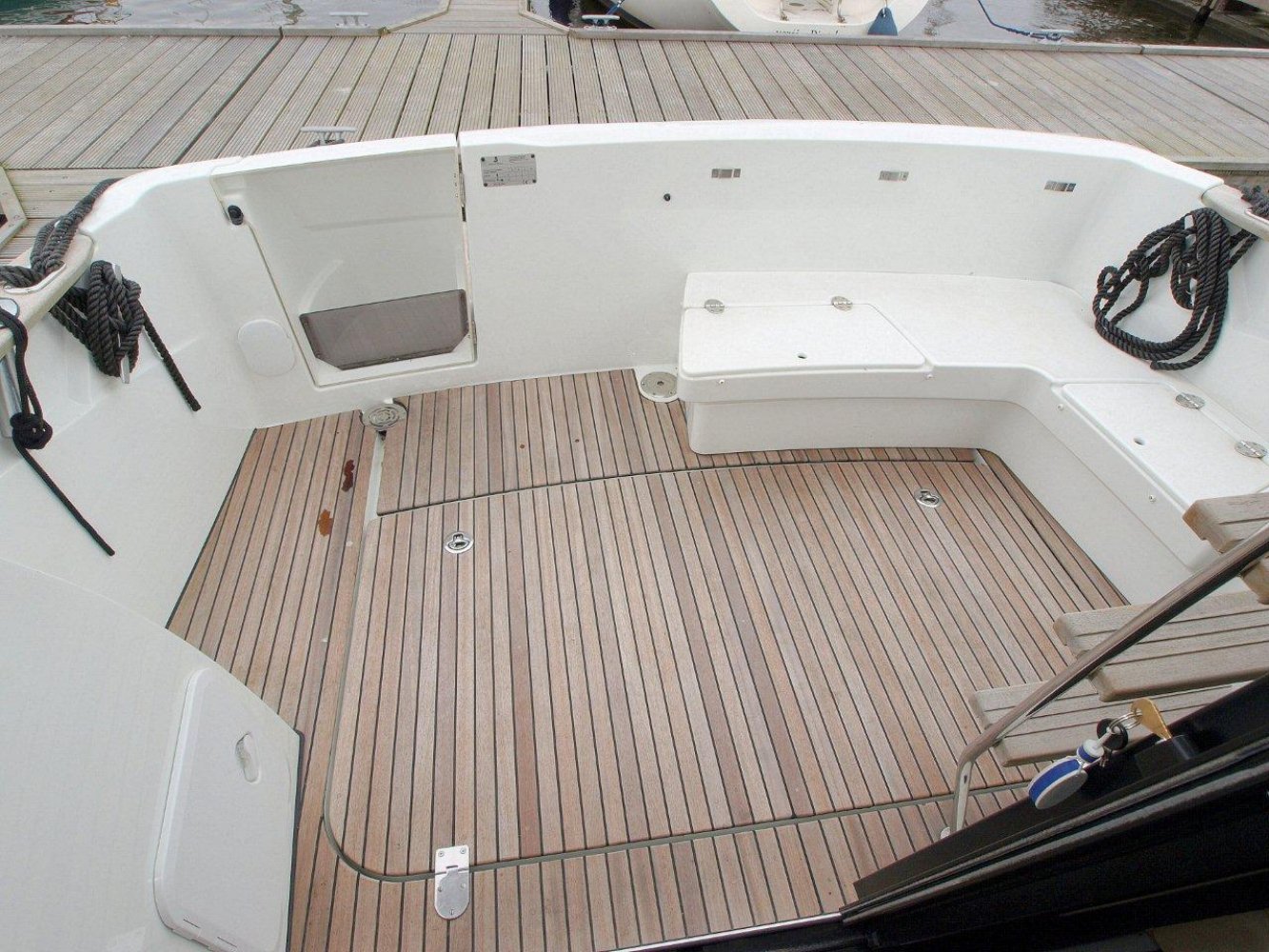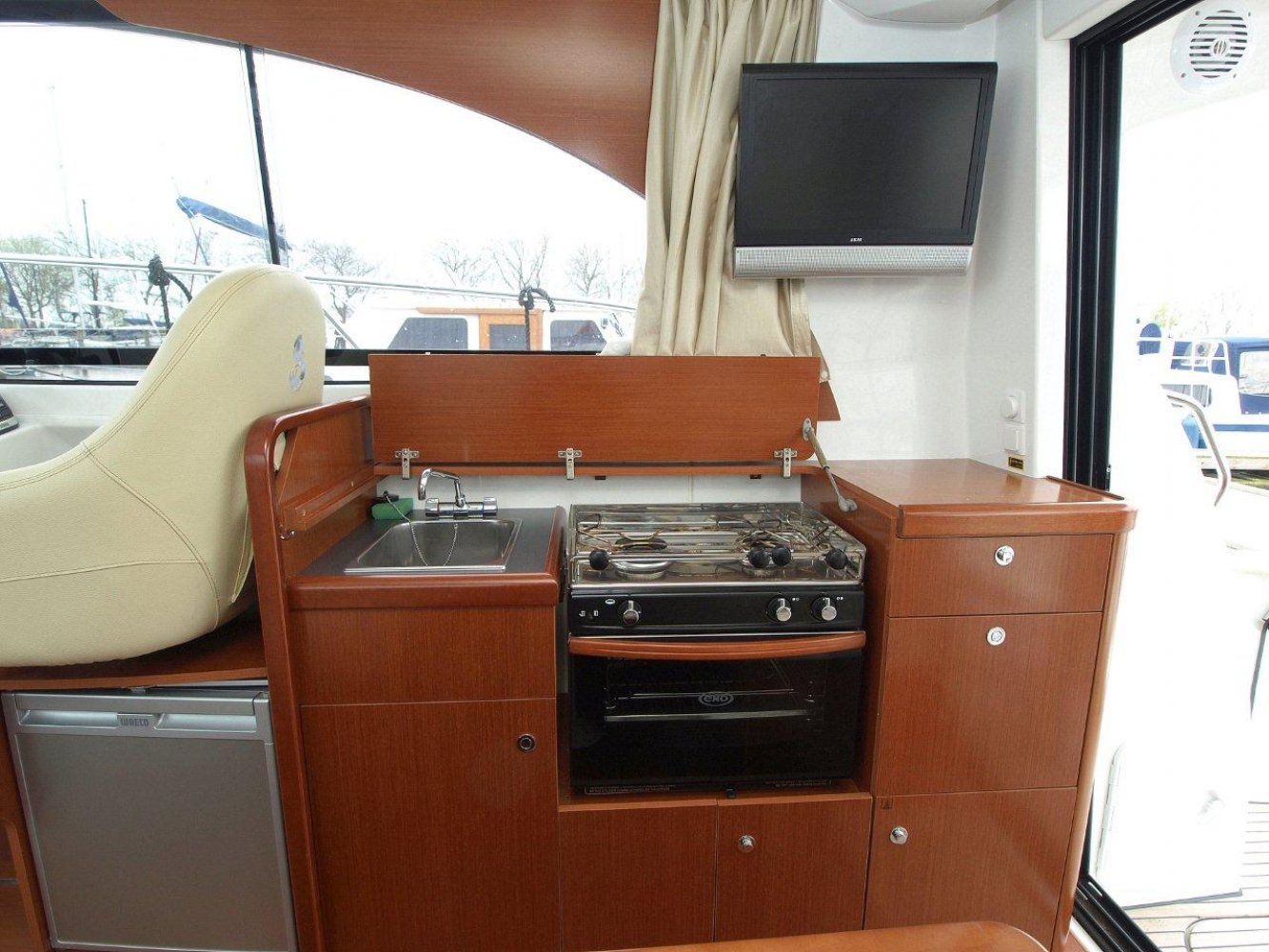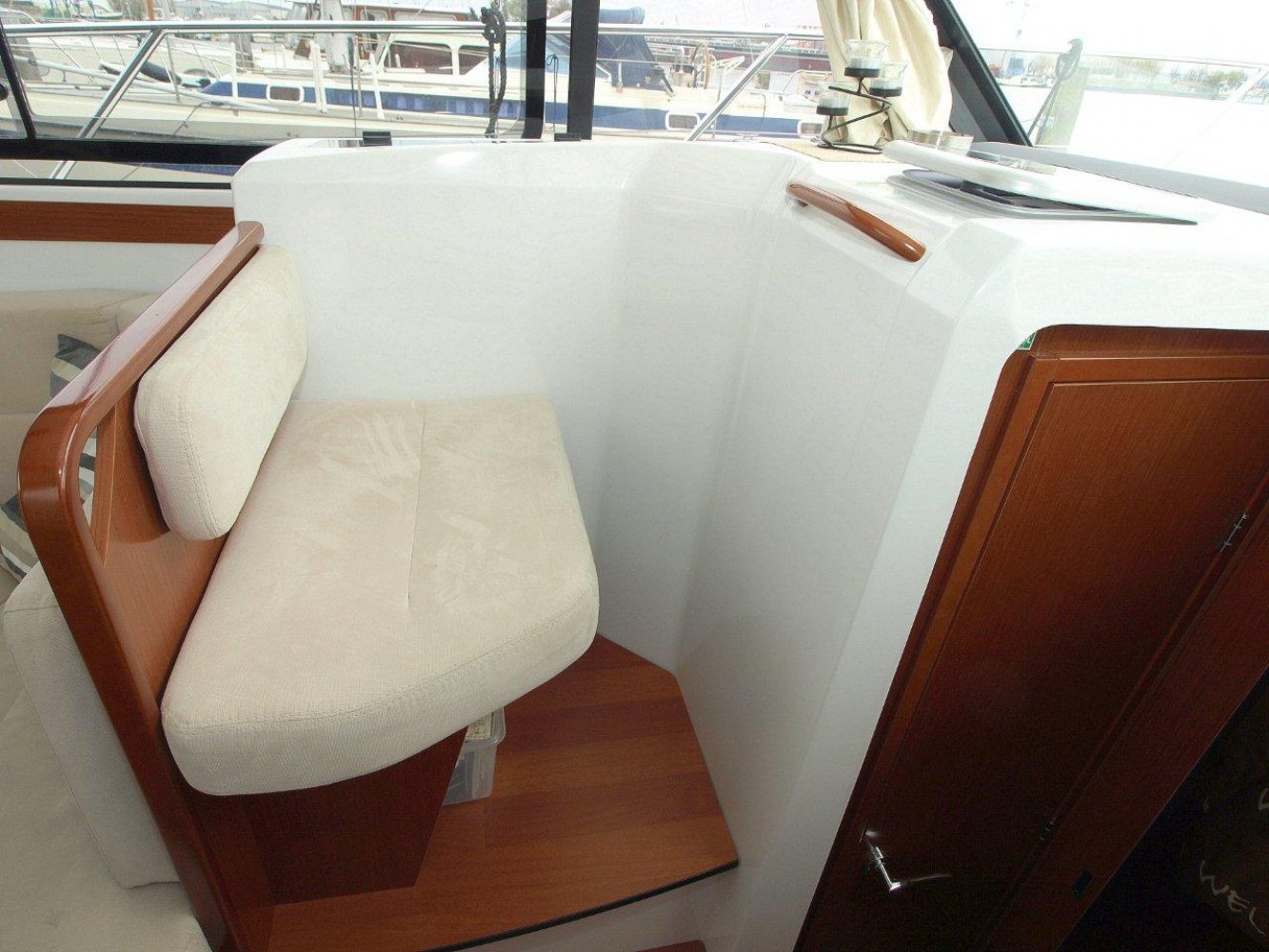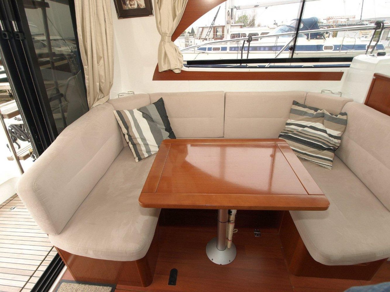 De Beneteau Antares 30 met flybridge is een fraai gelijnd en modern jacht welke ook op hogere snelheden goed vaart. Het exemplaar dat wij aanbieden is in uitstekende staat en compleet uitgerust. Dit schip is in april 2017 voorzien van nieuwe antifouling en geheel gepoetst, dus klaar voor een nieuw seizoen. Bij het aan boord stappen valt meteen het grote zwemplatform op en de gezellige kuip. Beide zijn voorzien van teak. Vanaf de kuip is de royale flybridge bereikbaar. Hier is het niet alleen fijn sturen, maar ook gezellig borrelen met een paar mensen of heerlijk zonnen. De stuurstand op de flybridge is overigens voorzien van een grote Raymarine kleurenplotter, een extra Raymarine ST70 multi display, bediening van de boegschroef en elektronische motorbediening. Via de ganboorden is het voordek bereikbaar. Hier is een groot zonnebed te maken en toegang tot het ruime ankerluik met elektrische lier. De salon is heerlijk licht en ruim van opzet. De bank aan bakboord is comfortabel. De keuken aan stuurboord biedt alle comfort, van oven tot magnetron. De stuurstand biedt wederom de nodige apparatuur en mogelijkheden. Opvallend is de trolling valve, welke de mogelijkheid biedt om met maar 1,5 km/uur te varen (ipv 6 km/uur), waardoor aanleggen een stuk prettiger is. Naast de stuurstand is een bankje voor een passagier. In het voorschip zijn 2 dubbele hutten (1 met stapelbed en 1 met eilandbed) en de natte cel geplaatst. De algehele ruimte aan boord is verrassend voor een schip van deze afmeting. Zoekt u een stoer en zeewaardig schip met flybridge waar de kop net vanaf is, dan kunnen we u van harte aanraden een keer te komen kijken. Uw jachtmakelaar is White Whale Willemstad, bereikbaar via mail of op +31 (0) 168 820 208.
