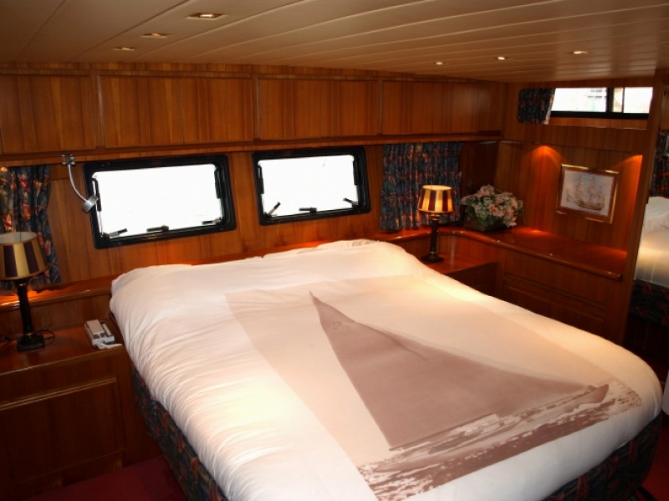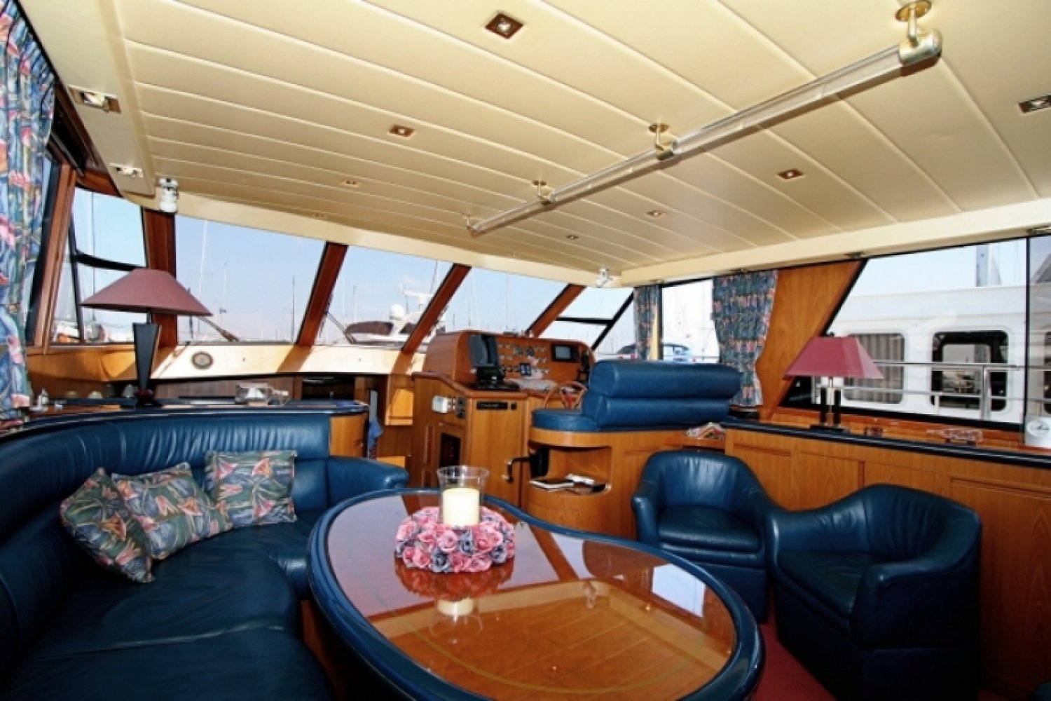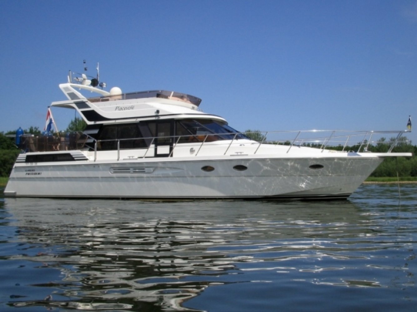 Uitstekend onderhouden en zeer compleet uitgeruste President in een luxueuze en ruime 2 hutten uitvoering. Dit schip is niet alleen technisch erg goed onderhouden met veel recente vernieuwingen, maar ook optisch in een keurige staat. Zo is onder andere begin 2012, preventief, het gehele onderwaterschip voorzien van 6 lagen Gelshield zodat er ook de komende jaren geen risico is op osmose. Door de enorme waslijst aan opties en de enorme ruimte is het schip ook geschikt voor permanente bewoning. Van buiten is het een zeer imposant schip. Opvallend aan deze President is de gedeeltelijke (2/3) overkapping van het achterdek, in plaats van de enorme dakpartij die op de meeste Presidents gemonteerd is. Dit staat een stuk sportiever terwijl het toch heel veel beschutting geeft tegen regen en zon. De flybridge is royaal en voorziet veel mensen van een heerlijke zitplaats. Het gezellige achterdek heeft behoorlijke afmetingen en het fraaie teakdek geeft er een extra luxe sfeer aan. Opvallend zijn hier de elektrische RVS davits welke een flinke bijboot kunnen liften. De gangboorden zijn ruim en breed. De stuurman beschikt over een uitgebreide range aan navigatiemiddelen. Dit samen met de elektronische bediening van de betrouwbare Caterpillars maakt het varen een geweldige ervaring. Bij binnenkomst in de salon wordt u onthaald door een warme en luxe sfeer. Het geheel is fraai afgewerkt. Heel veel zitruimte en een geweldig uitzicht naar buiten. Extra comfort wordt geboden door de aanwezige verwarming maar ook een airco voor de warmere dagen. Ook de luxe stuurstand heeft royale afmetingen en is van alle moderne gemakken voorzien. Iets lager dan de salon bevindt zich in het voorschip een royale keuken met alle comfort van thuis, waaronder een vaatwasser. Verder is hier een ruime dinette aanwezig met een grote tafel in het midden. Helemaal voorin is een ruime gastenhut (op de meeste schepen is de eigenaarshut kleiner!) met een eigen toilet-/doucheruimte. Helemaal in het achterschip bevindt zich een gigantische eigenaarshut over de volle breedte van het schip. Hier is niet alleen een royaal bed, maar ook heel veel kastruimte, een kaptafel en de nodige ramen voor licht en ventilatie. Deze hut heeft uiteraard een eigen luxe badkamer met een aparte douchecel. Deze President 500 is zeer compleet uitgerust met o.a. generator, airco, boeg- en hekschroef, vaat- en wasmachine en een krachtige Victron omvormer. Uitstekend geschikt voor lange vakanties of wonen aan boord. Wij laten u graag dit fraaie jacht zien in Ouddorp, vergeet niet tijdig een afspraak met ons te maken. De eigenaar zoekt een zeilschip in de lengte tussen de 40 en de 45 voet, bouwjaar vanaf 2000. Inruil is dus mogelijk als u een dergelijk schip nu heeft.