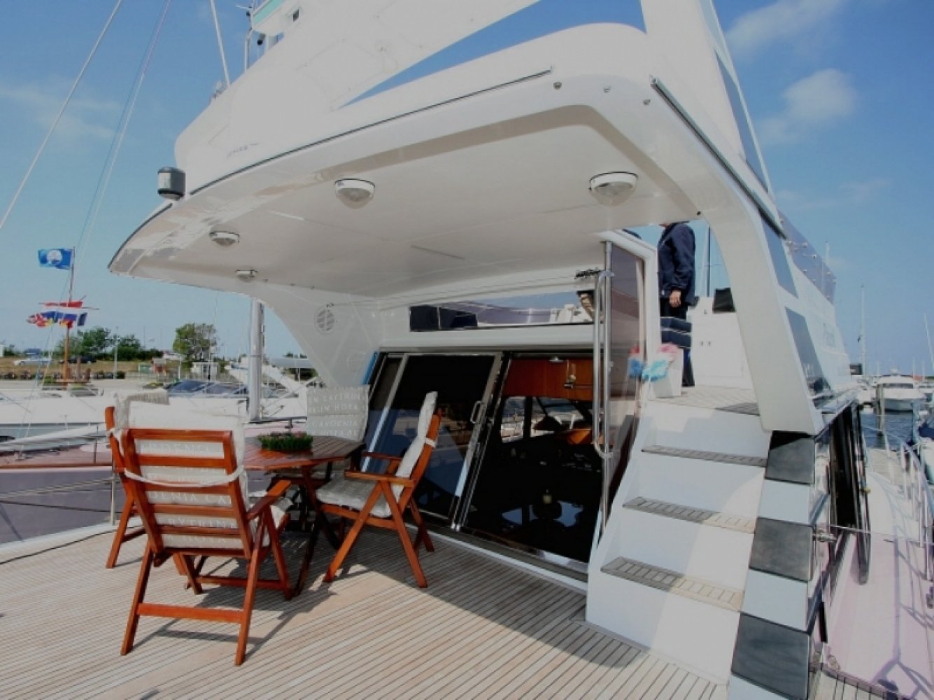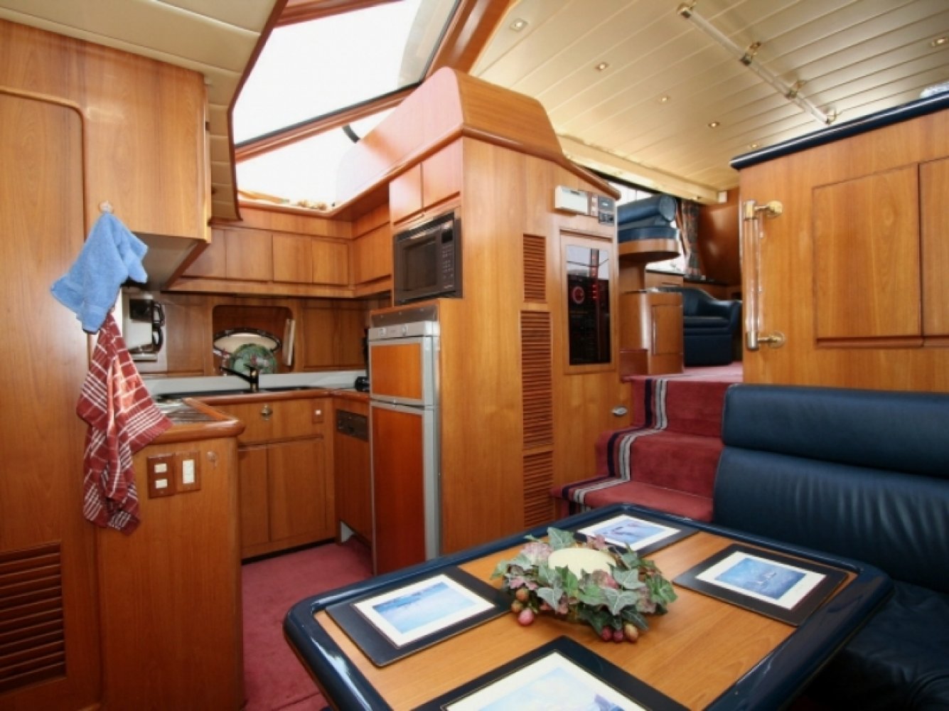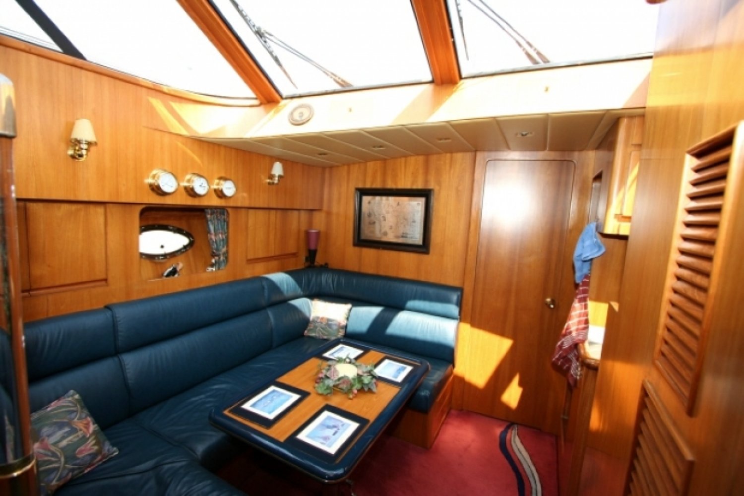 Uitstekend onderhouden en zeer compleet uitgeruste President in een luxueuze en ruime 2 hutten uitvoering. Dit schip is niet alleen technisch erg goed onderhouden met veel recente vernieuwingen, maar ook optisch in een keurige staat. Zo is onder andere begin 2012, preventief, het gehele onderwaterschip voorzien van 6 lagen Gelshield zodat er ook de komende jaren geen risico is op osmose. Door de enorme waslijst aan opties en de enorme ruimte is het schip ook geschikt voor permanente bewoning. Van buiten is het een zeer imposant schip. Opvallend aan deze President is de gedeeltelijke (2/3) overkapping van het achterdek, in plaats van de enorme dakpartij die op de meeste Presidents gemonteerd is. Dit staat een stuk sportiever terwijl het toch heel veel beschutting geeft tegen regen en zon. De flybridge is royaal en voorziet veel mensen van een heerlijke zitplaats. Het gezellige achterdek heeft behoorlijke afmetingen en het fraaie teakdek geeft er een extra luxe sfeer aan. Opvallend zijn hier de elektrische RVS davits welke een flinke bijboot kunnen liften. De gangboorden zijn ruim en breed. De stuurman beschikt over een uitgebreide range aan navigatiemiddelen. Dit samen met de elektronische bediening van de betrouwbare Caterpillars maakt het varen een geweldige ervaring. Bij binnenkomst in de salon wordt u onthaald door een warme en luxe sfeer. Het geheel is fraai afgewerkt. Heel veel zitruimte en een geweldig uitzicht naar buiten. Extra comfort wordt geboden door de aanwezige verwarming maar ook een airco voor de warmere dagen. Ook de luxe stuurstand heeft royale afmetingen en is van alle moderne gemakken voorzien. Iets lager dan de salon bevindt zich in het voorschip een royale keuken met alle comfort van thuis, waaronder een vaatwasser. Verder is hier een ruime dinette aanwezig met een grote tafel in het midden. Helemaal voorin is een ruime gastenhut (op de meeste schepen is de eigenaarshut kleiner!) met een eigen toilet-/doucheruimte. Helemaal in het achterschip bevindt zich een gigantische eigenaarshut over de volle breedte van het schip. Hier is niet alleen een royaal bed, maar ook heel veel kastruimte, een kaptafel en de nodige ramen voor licht en ventilatie. Deze hut heeft uiteraard een eigen luxe badkamer met een aparte douchecel. Deze President 500 is zeer compleet uitgerust met o.a. generator, airco, boeg- en hekschroef, vaat- en wasmachine en een krachtige Victron omvormer. Uitstekend geschikt voor lange vakanties of wonen aan boord. Wij laten u graag dit fraaie jacht zien in Ouddorp, vergeet niet tijdig een afspraak met ons te maken. De eigenaar zoekt een zeilschip in de lengte tussen de 40 en de 45 voet, bouwjaar vanaf 2000. Inruil is dus mogelijk als u een dergelijk schip nu heeft.