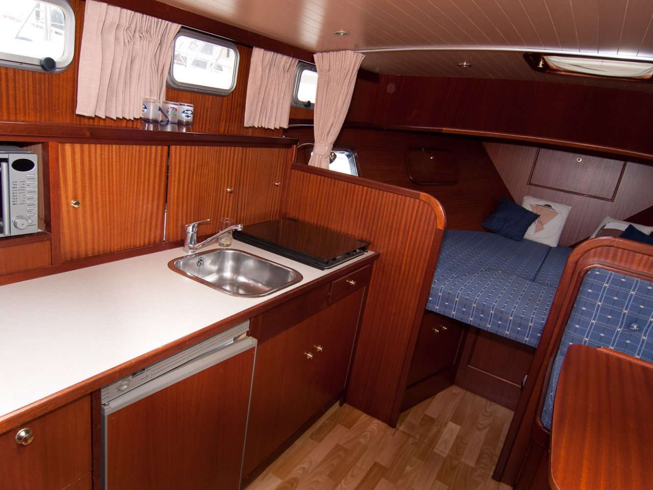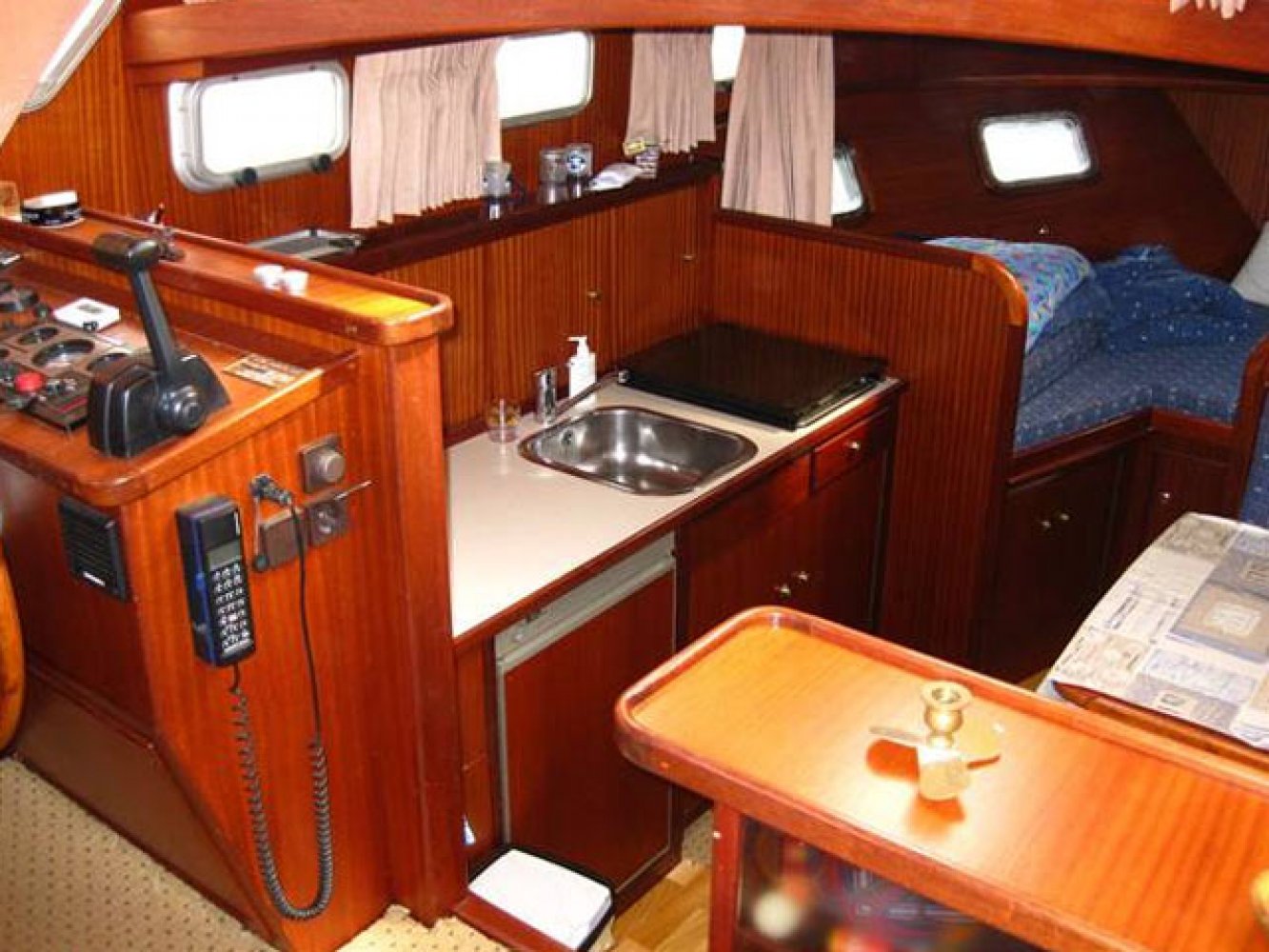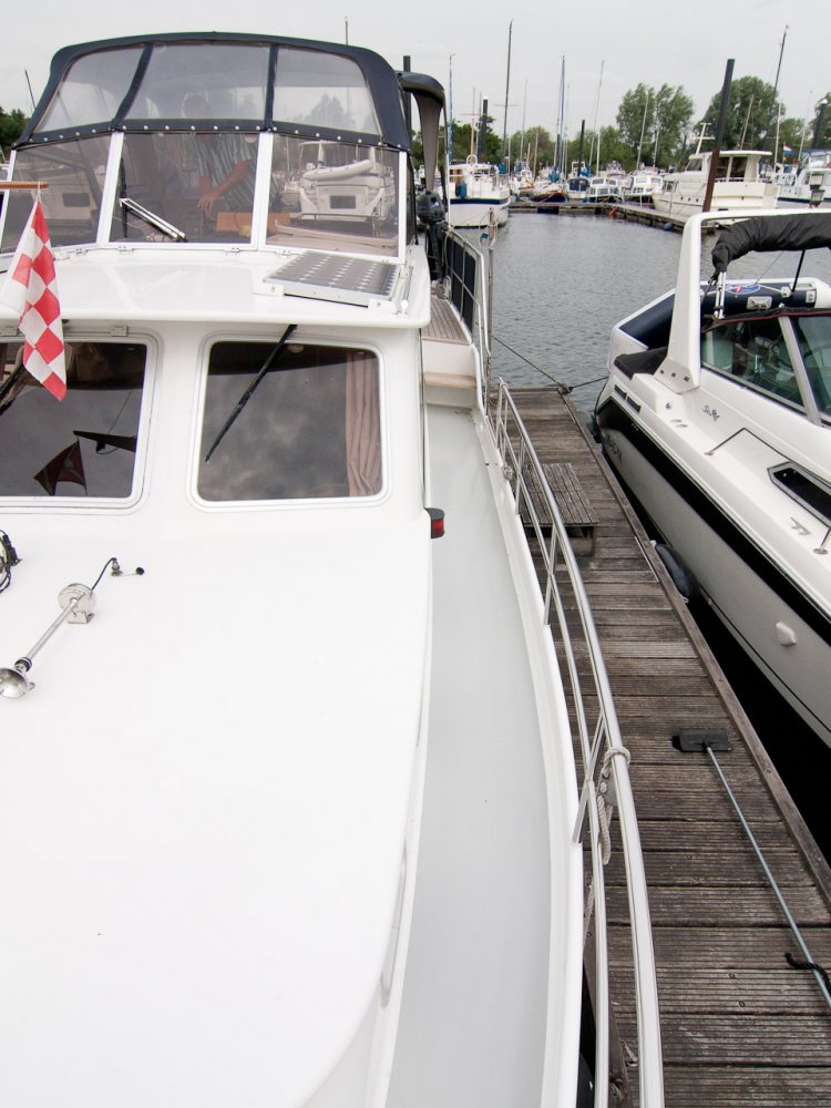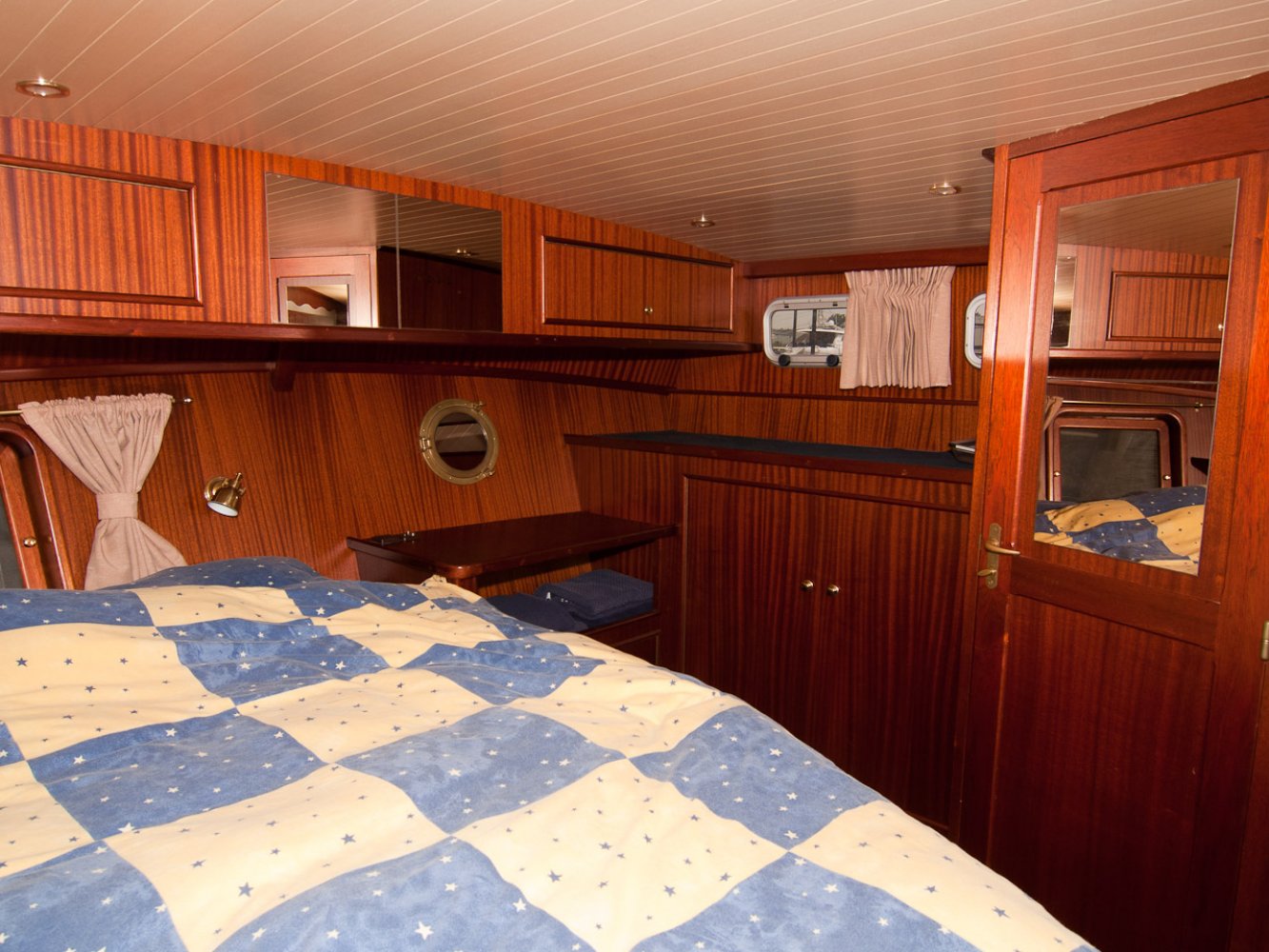 Nu mogen wij u de mooiste Pikmeer Kruiser van Nederland aanbieden. De eigenaar laat nu door zijn werf het gehele schip voorzien van een splinter nieuw verfsysteem. Zowel de gehele opbouw als het vrijboord worden onderhanden genomen. Ook het onderwaterschip krijgt dubbele lagen antifoulling om een goed pantser te maken. Dit jacht is werf gebouwd en heeft vele watersporters het vertrouwen geschonken in zijn degelijkheid. Een niet werf gebouwd schip behoud minder zijn waarde en is niet via een gekochte constructietekening door een paar handige mensen in elkaar geplakt. Dit schip doet nog steeds niet onder voor de moderne lijnen die door hun verhoudingen zich bewezen hebben. Heel stabiel en werkelijk bijzonder goed manoeuvreerbaar. Dit schip heeft een door de jaren ervaring van de ontwerper een bewezen indeling. De open ruimte geeft het gevoel het schip veel groter te maken en door de goede daglichtinval is het aangenaam mee varen. De motor heeft voldoende power en het schip gedraagt zich op het water zo als een ieder dat zou wensen en heeft een laag verbruik. Zowel vanaf de binnen- en buiten stuurstand is er goed zicht en beide dashboarden zijn mooi en overzichtelijk ingedeeld. Het zeer ruime achterdek is voorzien van teakhout en geeft ruimte aan een groot aantal meevarende. Het interieur is keurig verzorgd en netjes afgewerkt met mat gelakt mahoniehout. Iedere plek in dit schip is optimaal benut. De keuken met koud en warm water en net gasstel heeft een aparte kitchenette wat weer heel praktisch is. De bedden zijn ruim en voorzien van extra luxe matrassen. De gescheiden voorcabine is open wat een enorm ruimtelijk effect heeft. Verder zijn op alle plaatsen ruime kasten in verwerkt. Je kunt zien dat de eigenaar altijd zorgzaam met dit schip is omgegaan en het met liefde heeft verzorgd. Het schip wordt nu aangeboden omdat de eigenaar kleiner wilt varen. Hebt u nog vragen? Bel of mail ons dan zeker. Pieter Pepping is uw jacht makelaar voor dit schip, 06-533 452 19 of [email protected]