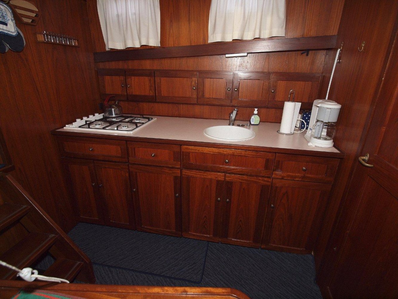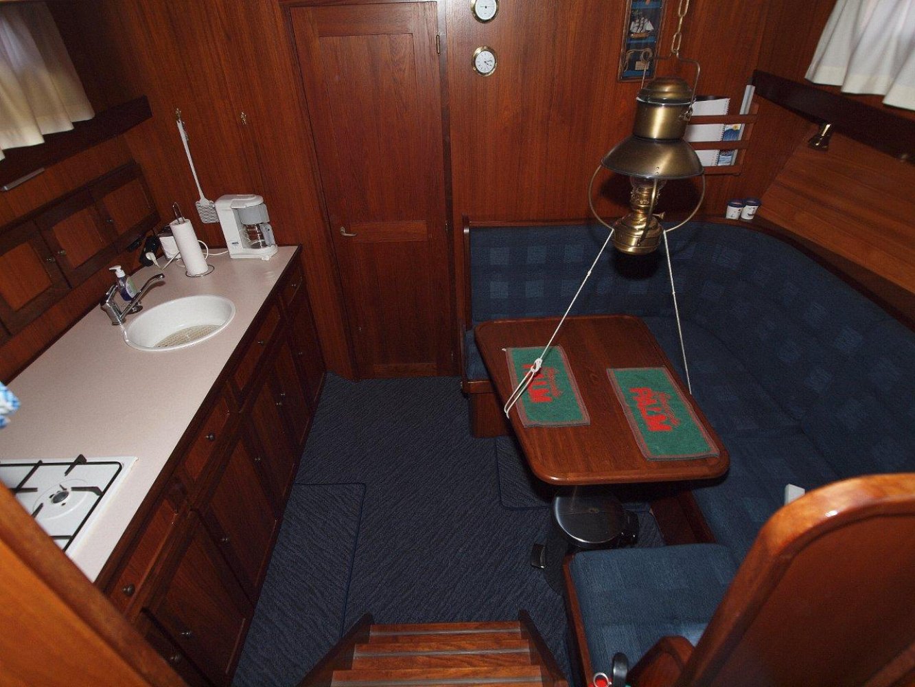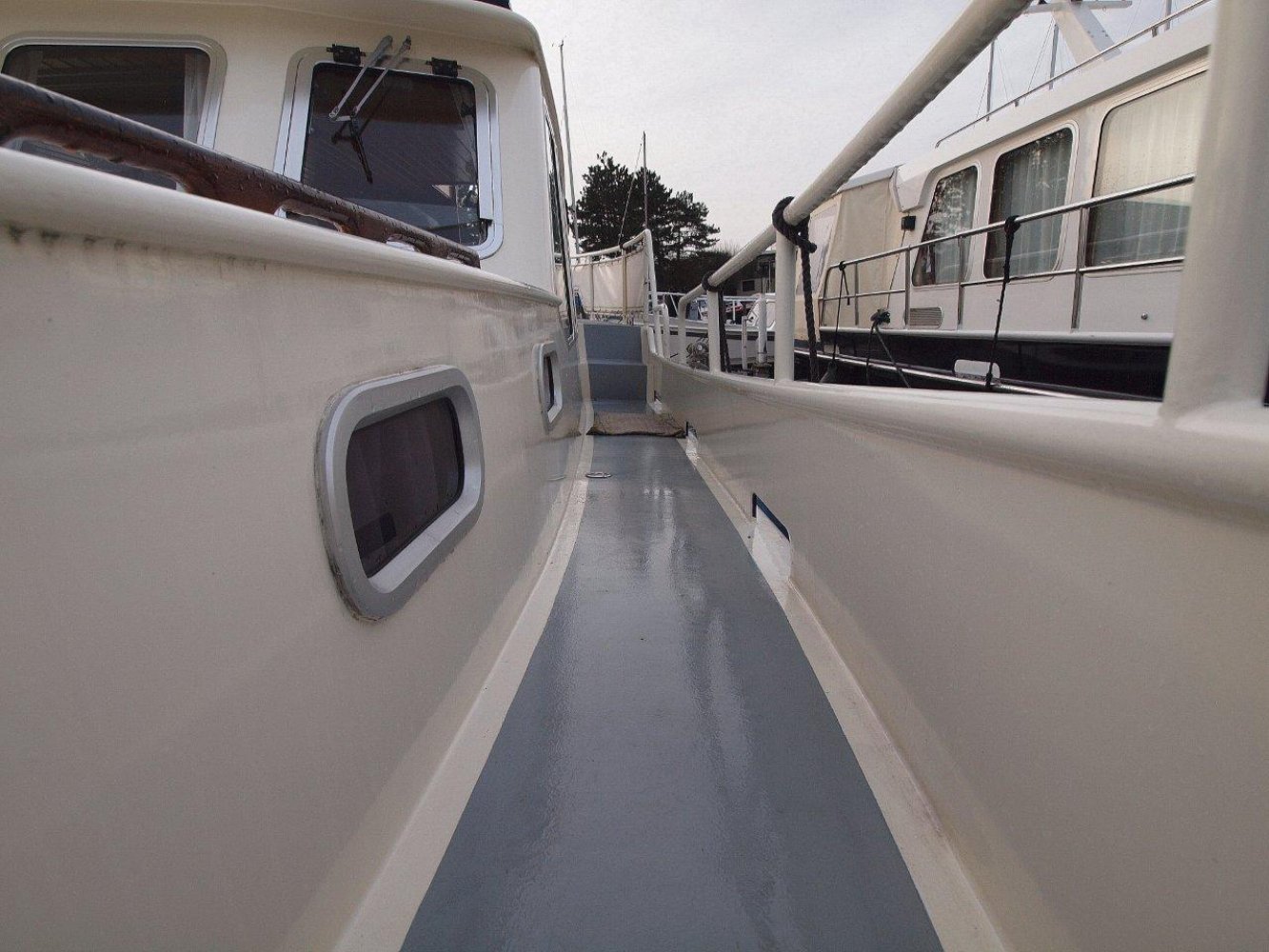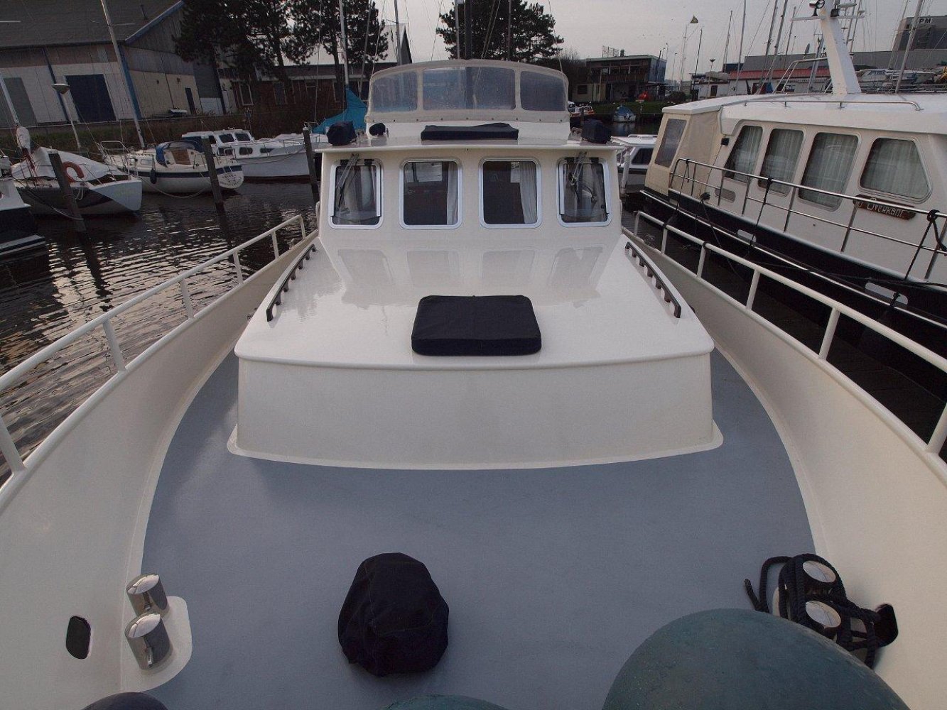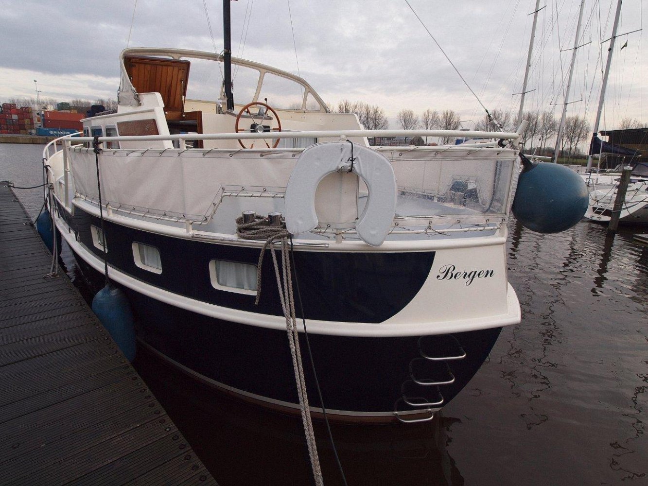 Aangeboden een mooie en robuuste Monty Bank 38. Ook deze Monty Bank is gebouwd bij de Gebr. Willems te Emmeloord welke werf bekend staat om de solide en mooie manier van schepen bouwen. Deze spitsgatter wordt gekenmerkt door haar klassieke en tijdloze lijnenspel. Samen met de mooie blauwe romp en de wit gelakte opbouw maakt het schip tot een fraaie en stoere verschijning. Aan dek vallen de ruime gangboorden met hoge verschansing op. Dit maakt een veilige weg naar het voordek ook met veel zeegang mogelijk. De dekken zijn voorzien van antislip verf zodat u relatief weinig onderhoud hoeft te plegen ten opzichte van bijvoorbeeld teak dekken. Het achterdek is ruim en gezellig met voldoende plaats om eventueel losse stoelen en een tafel te plaatsen. Het schip is tevens voorzien van een buiten besturing. Deze treft u ook aan op het achterdek en biedt u perfect overzicht over het schip en de omgeving. Mocht het weer wat tegen zitten kunt u lekker naar binnen in het schip waar de tweede stuurstand is te vinden. De salon is mooi afgewerkt en heeft een warme sfeer. Bij binnenkomst in de salon treft u aan stuurboord een comfortabele zitbank aan. Deze kan eventueel ook als extra slaapplaats worden gebruikt. Hier tegenover is diverse kastruimte gecreëerd. Verder naar voren treft u aan bakboord de binnen stuurstand aan. Nog verder naar voren in het schip komt u via een klein trapje in het vooronder. Hier is aan bakboord het praktisch kombuis geplaats. Tegen over het kombuis is de dinette met een riante zitbank en een tafel in het midden. In de voorpiek is de tweede hut. Als u richting het achterschip gaat treft u na de eerder genoemde salon een doorgang met trapje aan. Als u deze afgaat komt u in het ruime achterschip waar aan stuurboord de natte cel aantreft. Hier is de toilet en een separate douche. Helemaal in het achterschip is de riante eigenaarshut. Hier is erg veel bergruimte gemaakt en uiteraard een dubbel bed. Dit schip is fraai gebouwd en comfortabel uitgerust. De Volvo Penta motor is volledig gereviseerd in de 1994 en sindsdien staan er nog 2500 uren op het blok. Dit mooi lopende blok geeft het schip zonder veel moeite een krijssnelheid van ongeveer 12 km/uur bij 2.000 toeren. Verder is dit schip voorzien van een beunkoeling en een droge uitlaat dus mooie wintertochten zijn geen probleem voor dit schip. Mocht u op zoek zijn naar een mooie spitsgatter van een kwaliteitswerf dan is dit schip zeker de moeite waard. Mocht u nog vragen hebben of een afspraak voor een bezichtiging willen maken, horen wij dat graag van u. U kunt altijd een e-mailtje sturen naar [email protected] en bellen kan natuurlijk ook naar: 0168-820208.