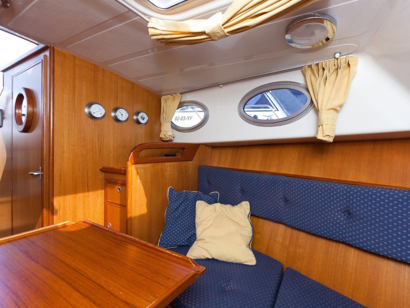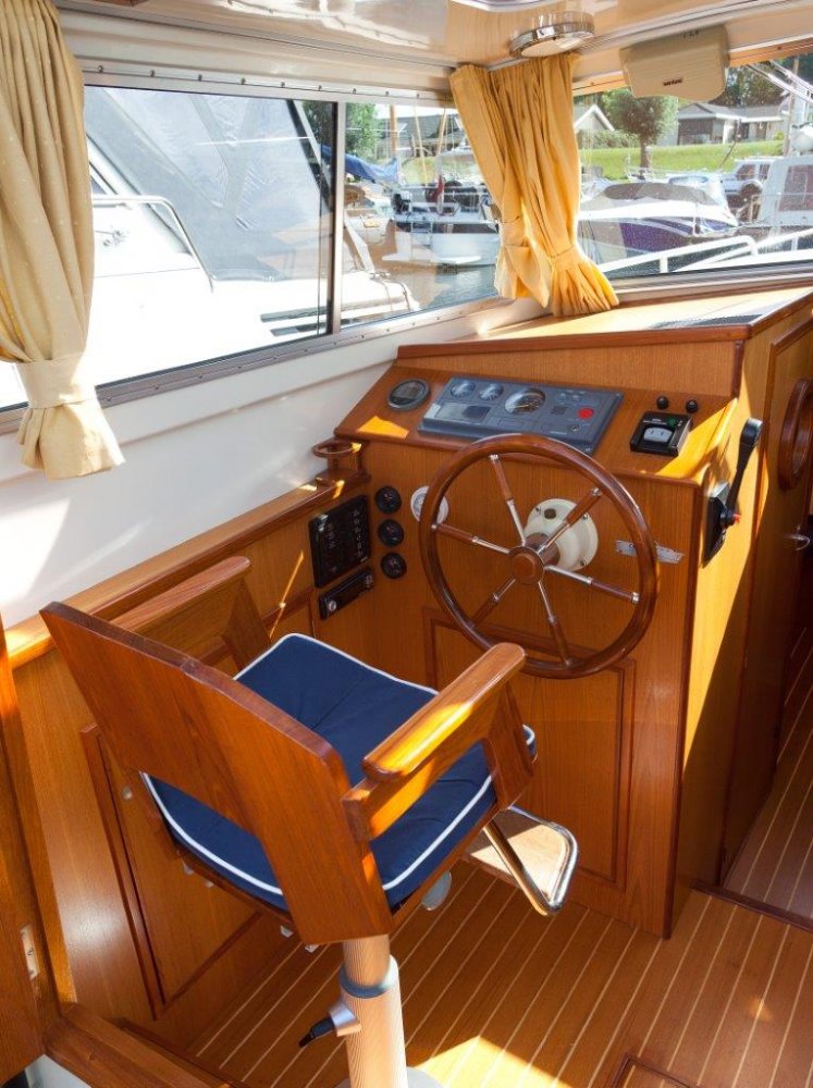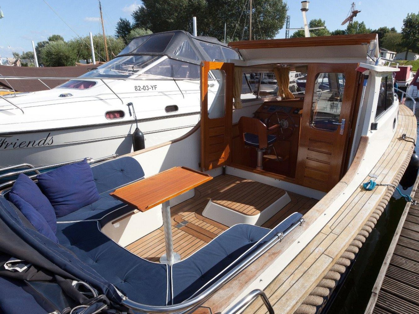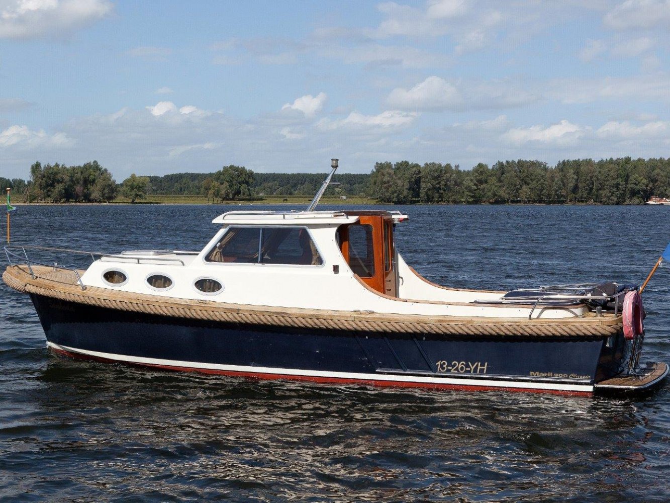 Zeer goed onderhouden Maril 900 Classic uit 2001. Deze Maril is voorzien van een aantal interessante features! De 900 Classic wordt gekenmerkt door het vaste stuurhuis. Het schip biedt werkelijk "The best of both worlds", met mooi weer is het geweldig vertoeven in de gigantische kuip, maar varen tot laat in het seizoen is ook goed mogelijk door de kuiptent en het goed verwarmde stuurhuis. De Maril heeft een stoere en chique uistraling, de blauwe romp en mooi teakdek dragen daar zeker aan bij. Eenmaal aan boord van deze Maril valt direct op de mooie afwerking op, het teak ziet er allemaal bijzonder goed uit. Het schip heeft iedere winter op de kant gestaan onder een degelijk winterkleed. Ook in de zomer is de kuip goed beschermd tegen de elementen door de kuiptent. De doorgang naar het stuurhuis is erg gemakkelijk. De deuren en een gedeelte van het dak zijn open te klappen waardoor de kuip en het stuurhuis echt met elkaar verbonden zijn. Aan stuurboord is een bank waar men een mooi uitzicht heeft over het schip en de omgeving. Aan bakboord vindt u de stuurstand met o.a. de bediening van boegschroef, log, dieptemeter en ga zo maar door. Verder naar voor is de kombuis en aan bakboord het elektrisch toilet. Helemaal in de piek van het schip is een gezellige zit welke gemakkelijk omgebouwd kan worden tot een ruim tweepersoonsbed. Kortom, een mooi onderhouden Maril 900 Classic aangeboden door de tweede eigenaar. Deze Maril is voorzien van boegschroef, verwarming, teakdek en diverse andere opties. De Yanmar 125 PK diesel maakt snelheden tot circa 30 km/h mogelijk. Uw jachtmakelaar is White Whale Den Bosch.