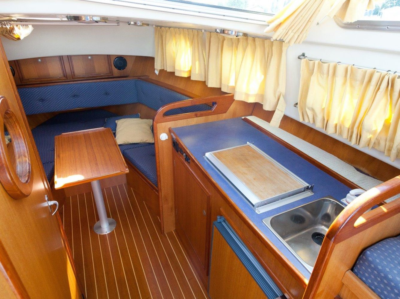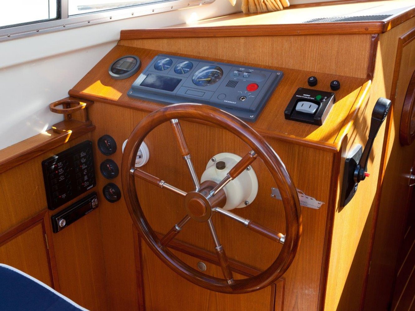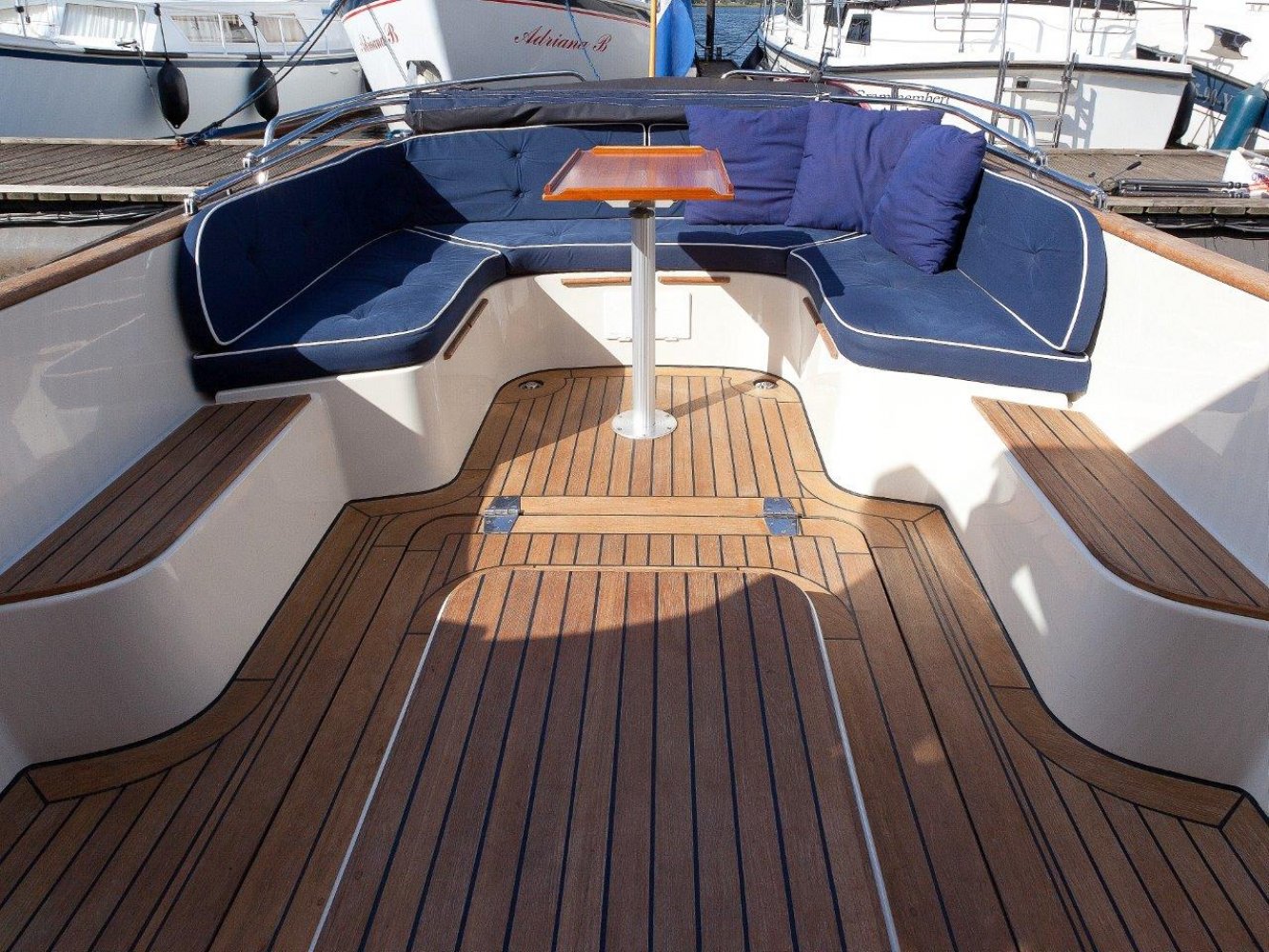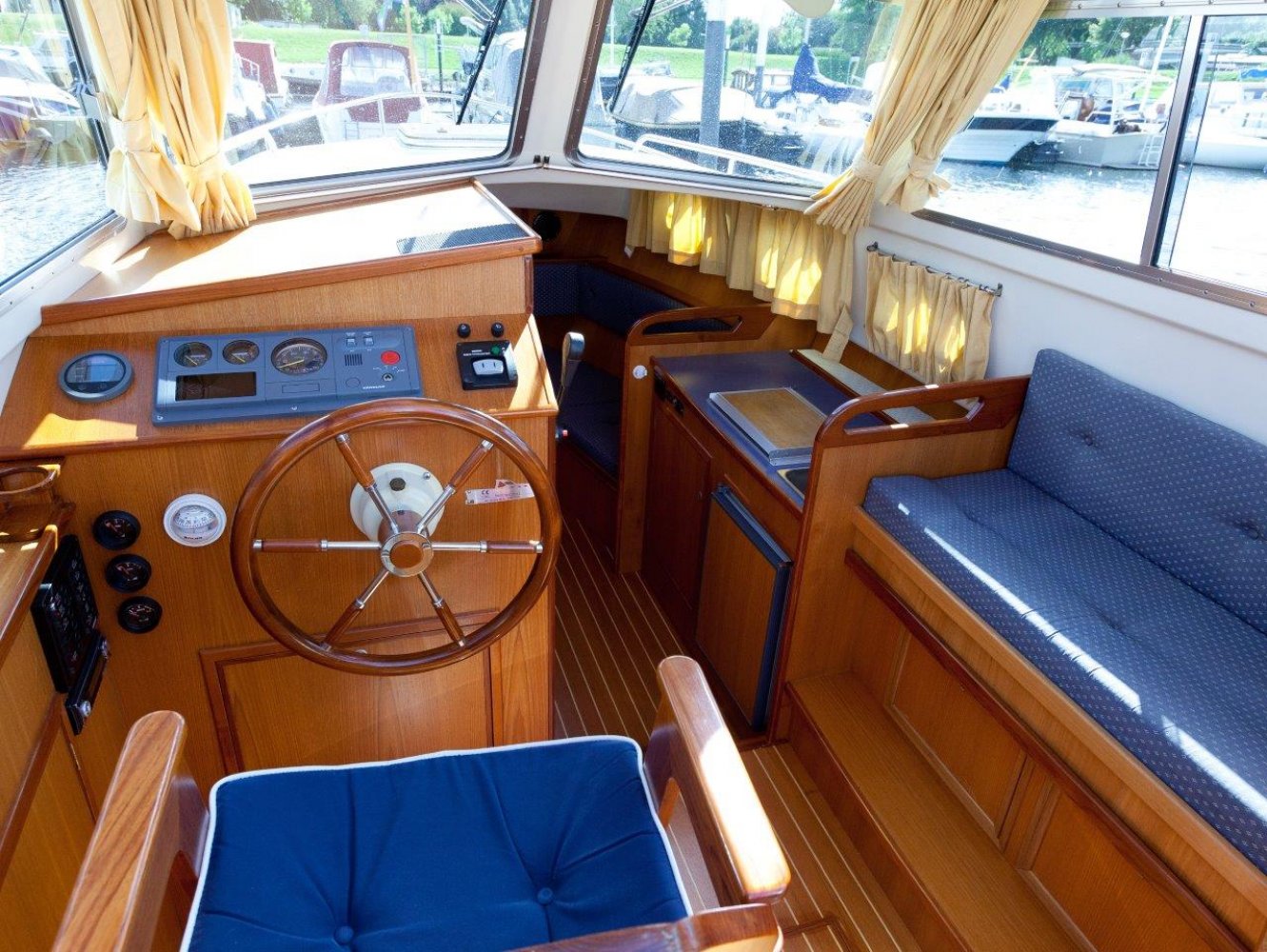 Zeer goed onderhouden Maril 900 Classic uit 2001. Deze Maril is voorzien van een aantal interessante features! De 900 Classic wordt gekenmerkt door het vaste stuurhuis. Het schip biedt werkelijk "The best of both worlds", met mooi weer is het geweldig vertoeven in de gigantische kuip, maar varen tot laat in het seizoen is ook goed mogelijk door de kuiptent en het goed verwarmde stuurhuis. De Maril heeft een stoere en chique uistraling, de blauwe romp en mooi teakdek dragen daar zeker aan bij. Eenmaal aan boord van deze Maril valt direct op de mooie afwerking op, het teak ziet er allemaal bijzonder goed uit. Het schip heeft iedere winter op de kant gestaan onder een degelijk winterkleed. Ook in de zomer is de kuip goed beschermd tegen de elementen door de kuiptent. De doorgang naar het stuurhuis is erg gemakkelijk. De deuren en een gedeelte van het dak zijn open te klappen waardoor de kuip en het stuurhuis echt met elkaar verbonden zijn. Aan stuurboord is een bank waar men een mooi uitzicht heeft over het schip en de omgeving. Aan bakboord vindt u de stuurstand met o.a. de bediening van boegschroef, log, dieptemeter en ga zo maar door. Verder naar voor is de kombuis en aan bakboord het elektrisch toilet. Helemaal in de piek van het schip is een gezellige zit welke gemakkelijk omgebouwd kan worden tot een ruim tweepersoonsbed. Kortom, een mooi onderhouden Maril 900 Classic aangeboden door de tweede eigenaar. Deze Maril is voorzien van boegschroef, verwarming, teakdek en diverse andere opties. De Yanmar 125 PK diesel maakt snelheden tot circa 30 km/h mogelijk. Uw jachtmakelaar is White Whale Den Bosch.