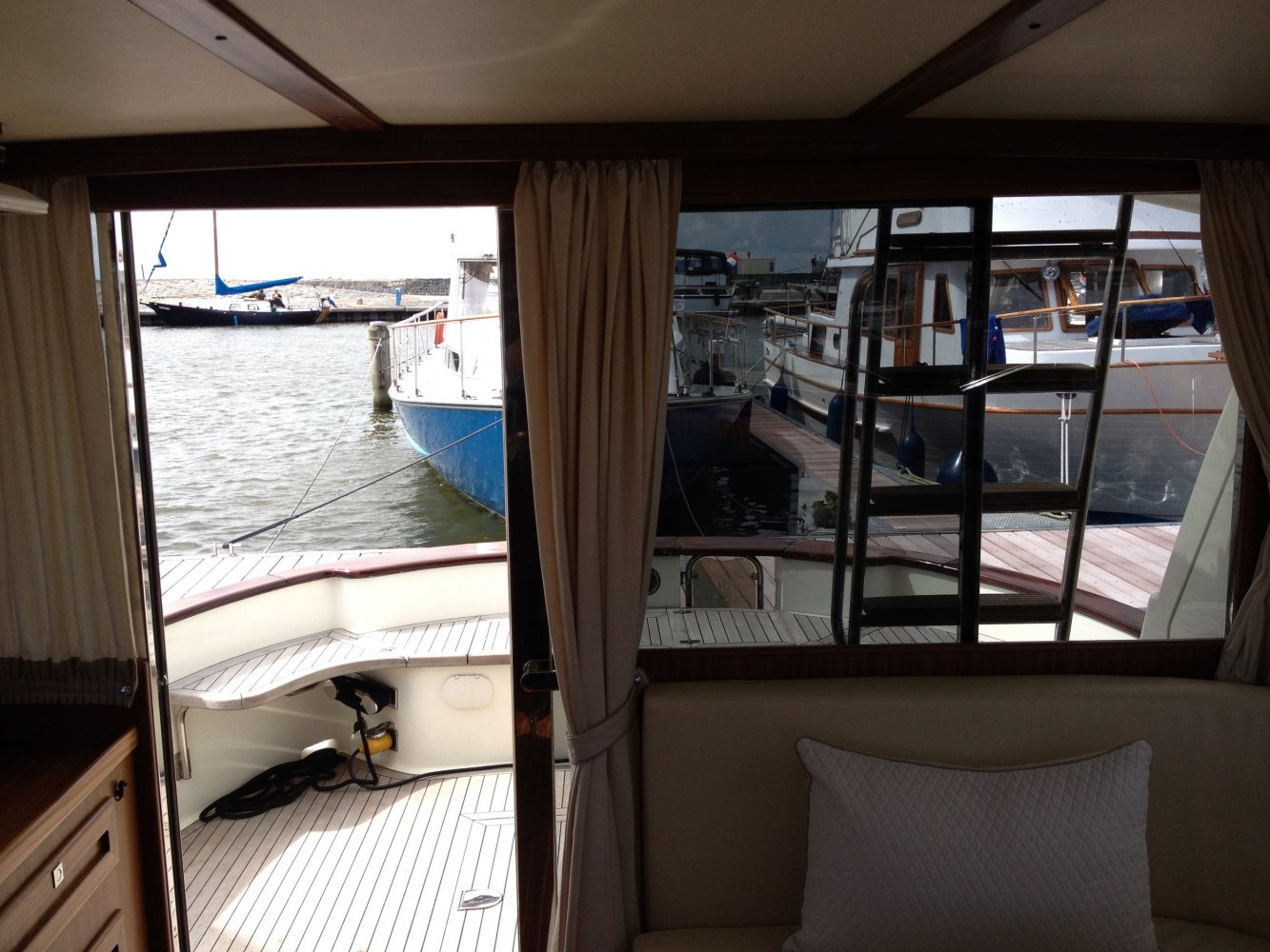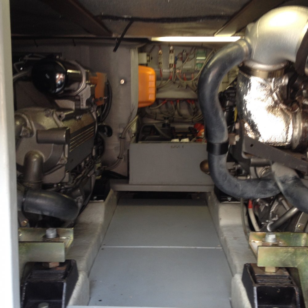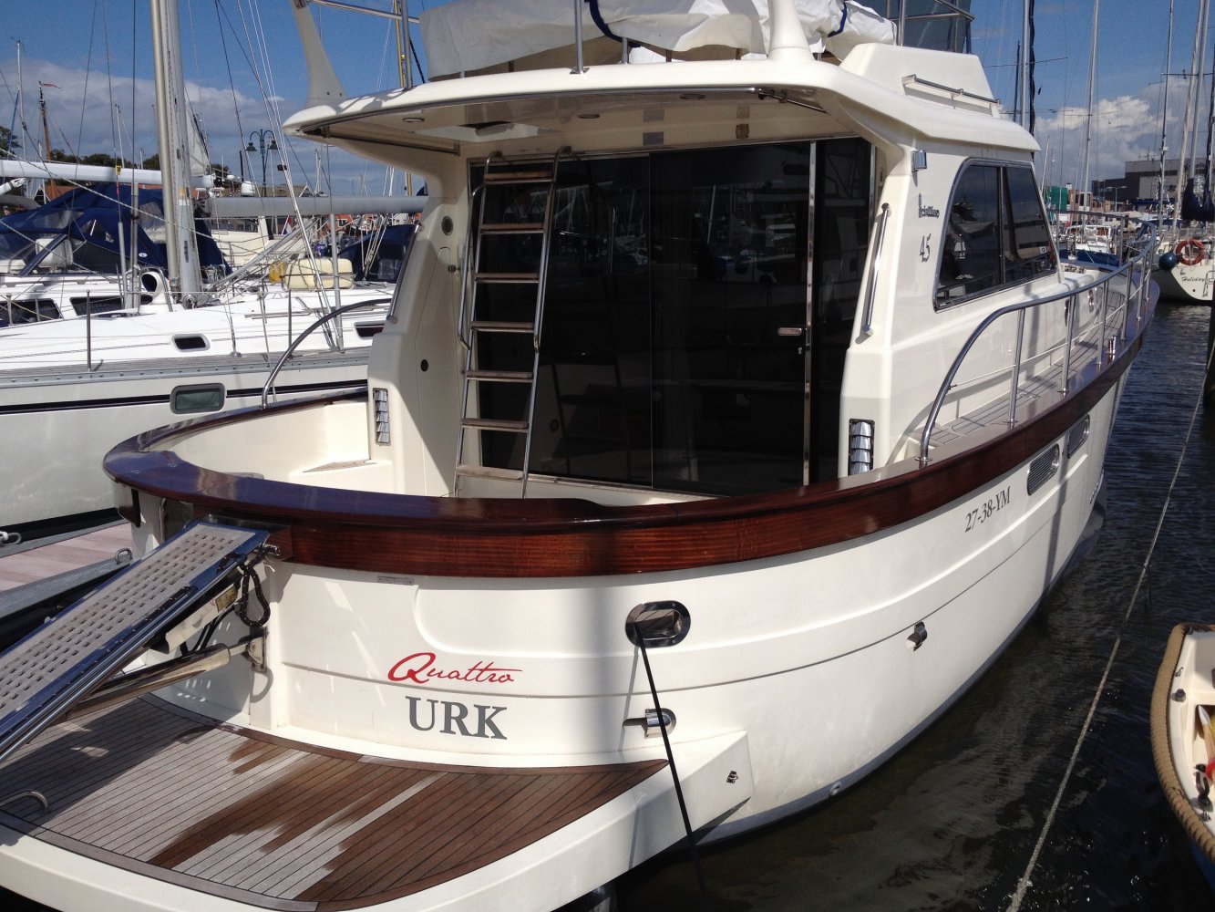Deze power boot is gemaakt in Italië . De ontwerper Carlo Bassi Sciallino heeft zijn naam gemaakt in de Ferreti lijn en heeft dit prachtige motorjacht ontworpen. Er zijn geen andere motorjachten zo stijlvol gebouwd. Het geweldige vaarcomfort wat dit schip u biedt is werkelijk ongelofelijk. De krachtige Yanmars worden in de meeste power boten gebouwd. De reden is het perfecte koelsysteem en de lage toeren en bijzondere krachtig vermogen. 2 maal 360 pk is dan ruim voldoende om de geweldige vaarmomenten te beleven die dit motorjacht u kunt laten voelen. De romp is zo gebouwd dat langzaam varen geen moeite kost en snel varen bijzonder veilig aan voelt. De brede gangboorden zijn voorzien van voldoende handgrepen, plus is er een extra dikke en mooi afgewerkte rvs zeerailing, en de opstaande rand afgewerkt is met hoogglans teakhout. De gehele opbouw is afgewerkt met luxe teak op het deck. De flybridge geeft een enorm overzicht en maakt sturen kinderspel. Er is een gezellige lounge bank en mooi dashboard en een heerlijk stuur op deze flybridge. De achterkuip is bijzonder ruim er er is een grote en soliede zwemplateau gebouwd wat onder andere handig is voor het vervoer van een dinky of jetski of waterscooter. Op het voor deck kunnen er ligkussens worden geplaatst. Via de glazen schuifdeuren komen we in de salon van het schip. Meteen valt op het maximale comfort en de het gevoel voor een constructie met detail. Een enorme zithoek met ruime eettafel plus de grote RVS ramen op zit hoogte in deze salon. De binnen stuurstand heeft een hoogglans dashboard wat precies genoeg overzicht geeft voor alle benodigde functies. Met een heerlijk zit heeft u rondom een zeer goed zicht naar buiten. Veel luxe dus ieder verblijf een apart toilet. De banken zijn voorzien van zacht crème leer. Een voorcabine met hangkast en groot bed. Alles is voorzien van veel daglicht en voldoende ventilatie. Geen condens beschadigingen van het teak rond om de ramen of van de vloer. Vele extra's en handige oplossingen zoals inklapbaar flat screen en zeer grote wastafel in het toilet. De keuken is zeer praktisch en heeft veel handige opbergruimtes. Er is een 4 pits inductie kooktoestel. Dit reageert gelijk een gastoestel. Er is dus geen gas aan boord. De ruimtes in het onderschip zijn echt nieuw schoon en fris. De motoren zijn keurig onderhouden en hebben ongeveer 400 vaaruren. Belt u nu voor een afspraak en proefvaart met Pieter Pepping van White Whale Yachtbrokers. 0031 0653345219 of email [email protected]