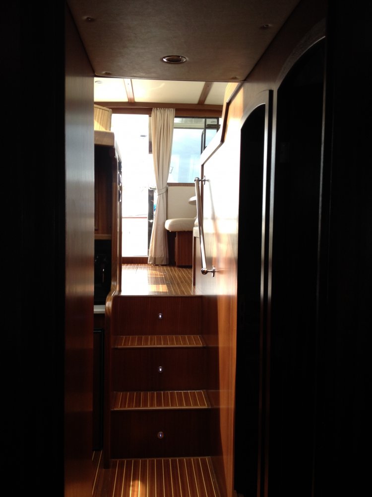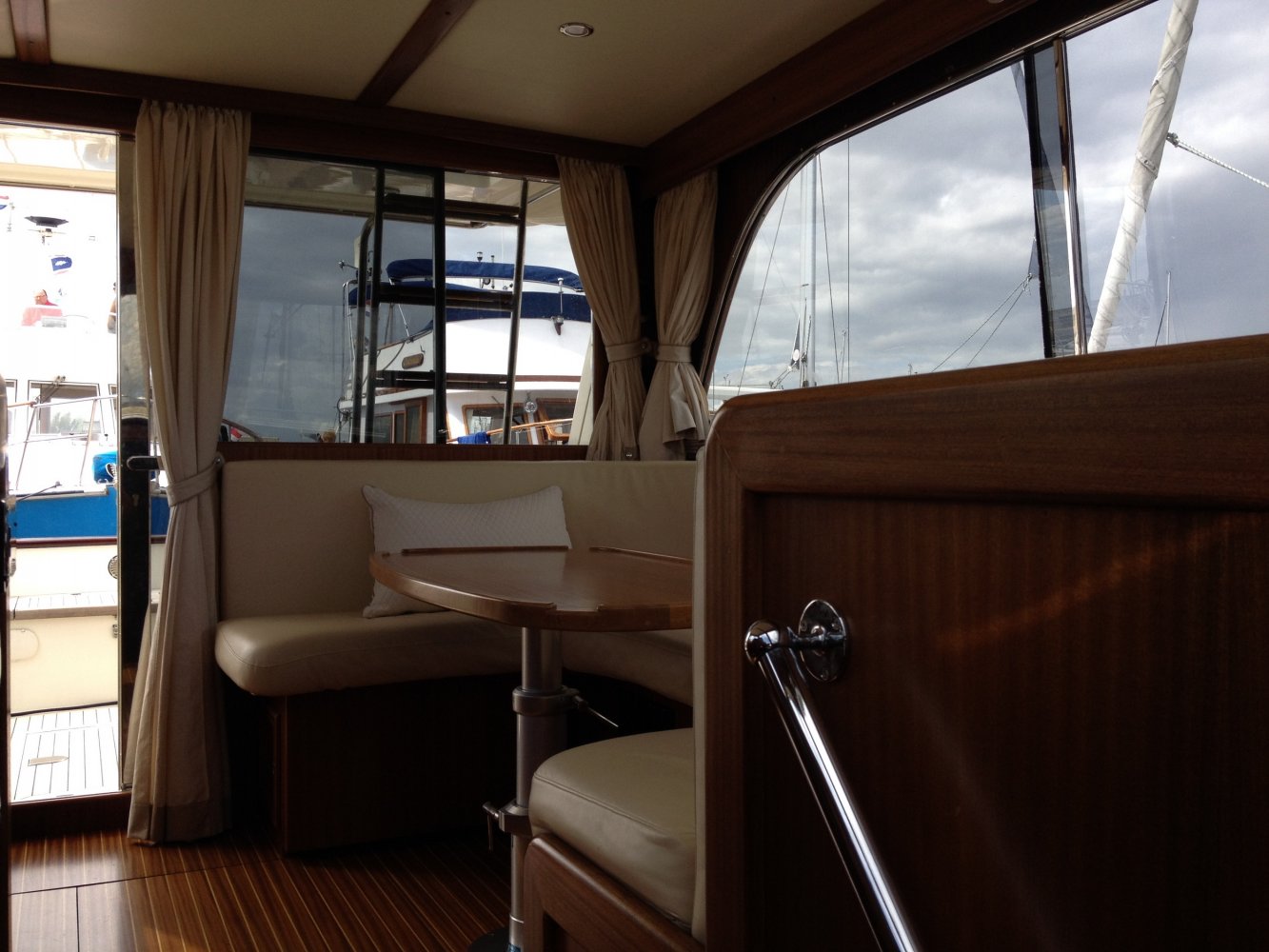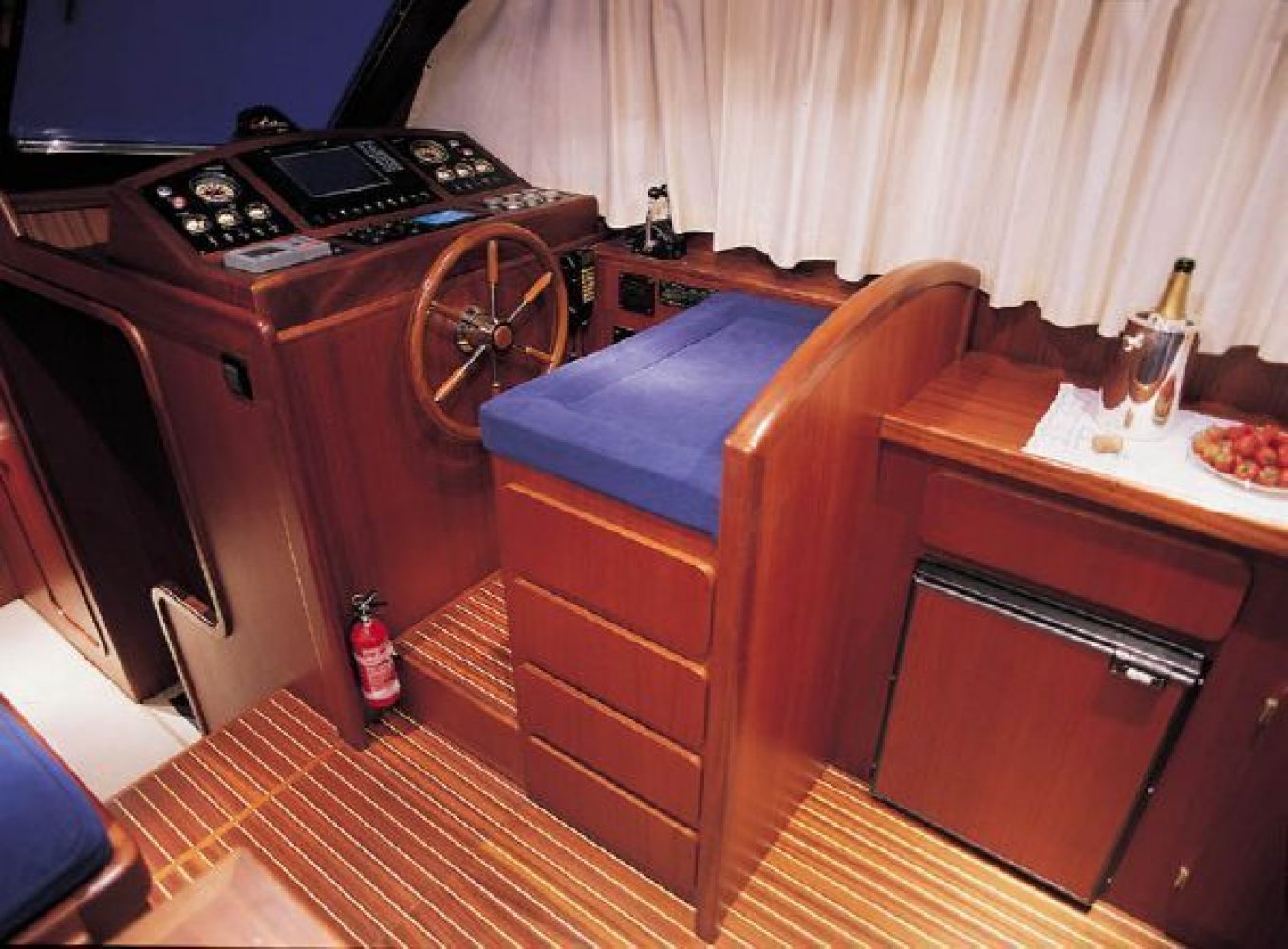 Deze power boot is gemaakt in Italië . De ontwerper Carlo Bassi Sciallino heeft zijn naam gemaakt in de Ferreti lijn en heeft dit prachtige motorjacht ontworpen. Er zijn geen andere motorjachten zo stijlvol gebouwd. Het geweldige vaarcomfort wat dit schip u biedt is werkelijk ongelofelijk. De krachtige Yanmars worden in de meeste power boten gebouwd. De reden is het perfecte koelsysteem en de lage toeren en bijzondere krachtig vermogen. 2 maal 360 pk is dan ruim voldoende om de geweldige vaarmomenten te beleven die dit motorjacht u kunt laten voelen. De romp is zo gebouwd dat langzaam varen geen moeite kost en snel varen bijzonder veilig aan voelt. De brede gangboorden zijn voorzien van voldoende handgrepen, plus is er een extra dikke en mooi afgewerkte rvs zeerailing, en de opstaande rand afgewerkt is met hoogglans teakhout. De gehele opbouw is afgewerkt met luxe teak op het deck. De flybridge geeft een enorm overzicht en maakt sturen kinderspel. Er is een gezellige lounge bank en mooi dashboard en een heerlijk stuur op deze flybridge. De achterkuip is bijzonder ruim er er is een grote en soliede zwemplateau gebouwd wat onder andere handig is voor het vervoer van een dinky of jetski of waterscooter. Op het voor deck kunnen er ligkussens worden geplaatst. Via de glazen schuifdeuren komen we in de salon van het schip. Meteen valt op het maximale comfort en de het gevoel voor een constructie met detail. Een enorme zithoek met ruime eettafel plus de grote RVS ramen op zit hoogte in deze salon. De binnen stuurstand heeft een hoogglans dashboard wat precies genoeg overzicht geeft voor alle benodigde functies. Met een heerlijk zit heeft u rondom een zeer goed zicht naar buiten. Veel luxe dus ieder verblijf een apart toilet. De banken zijn voorzien van zacht crème leer. Een voorcabine met hangkast en groot bed. Alles is voorzien van veel daglicht en voldoende ventilatie. Geen condens beschadigingen van het teak rond om de ramen of van de vloer. Vele extra's en handige oplossingen zoals inklapbaar flat screen en zeer grote wastafel in het toilet. De keuken is zeer praktisch en heeft veel handige opbergruimtes. Er is een 4 pits inductie kooktoestel. Dit reageert gelijk een gastoestel. Er is dus geen gas aan boord. De ruimtes in het onderschip zijn echt nieuw schoon en fris. De motoren zijn keurig onderhouden en hebben ongeveer 400 vaaruren. Belt u nu voor een afspraak en proefvaart met Pieter Pepping van White Whale Yachtbrokers. 0031 0653345219 of email [email protected]