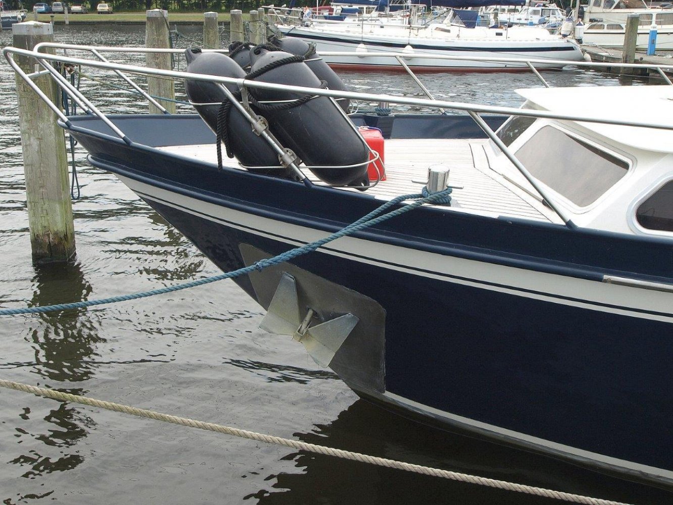 Goed onderhouden Valkkruiser 1200 Sport aangeboden, vaarklaar voor de nieuwe eigenaar. Deze Valkkruiser is anders dan de gebruikelijke kruisers die u ongetwijfeld veel voorbij ziet komen op het water of internet. Dit schip is laag gehouden zodat u minder rekening hoeft te houden met eventuele bruggen en uiteraard speelt een stukje esthetiek ook een rol. Dit schip wordt niet voor niets aangeduid als "sport". De lijn van het schip geeft het zeker en sportievere aanblik dan de gebruikelijke kruisers. Maar het is niet alleen cosmetisch waarmee dit schip zich onderscheidt. Praktisch heeft deze Valkkruiser zeker ook een aantal voordelen ten opzichte van de conventionele ontwerpen. Zo is er bijvoorbeeld een riante midden kuip. Hier zit u meer beschut en op een lager zwaartepunt dan op een hoog achterdek. Dit geeft een rustiger gevoel als het water wat ruwer is. Uiteraard is deze kuip geheel af te sluiten met een mooi kap zodat u ook in de regen droog zit. Het ruime achterdek biedt natuurlijk ook de mogelijkheid om van mooi weer te genieten. Vanuit de kuip heeft u toegang tot de salon en de achterhut. De achterhut is ruim en voorzien van een dubbel bed en erg veel bergruimte. De salon is aan stuurboord voorzien van een flinke bank met een tafel. Daar tegenover een in lengte geplaatst kombuis, uiteraard voorzien van alle comfort zoals warm en koud stromend water, een koelkast, vier pits fornuis en ook hier veel bergruimte. In de voorpiek is de natte cel met elektrisch toilet en de tweede slaap gelegenheid. Deze Valkkruiser Sport is een opvallende verschijning waar de huidige eigenaar veel in heeft geïnvesteerd. Om u alvast een indruk te geven; boegschroef revisie in 2013, nieuwe omvormer in 2009, wasmachine 2009, verstuivers van de motor 2008, koppeling revisie in 2013, nieuwe Webasto 2009 en dat is nog maar een kleine greep uit de lijst. Kortom, een goed onderhouden schip vaarklaar voor een nieuwe eigenaar die opzoek is naar een fraai schip met een beperkte doorvaarthoogte om lekker door de Europese wateren te varen. Geïnteresseerd? Dit schip is op afspraak te bezichtigen in Dinteloord. Neem dan gerust contact op via tel.: 0168-820208 of email: [email protected] om een afspraak te maken voor een bezichtiging.
