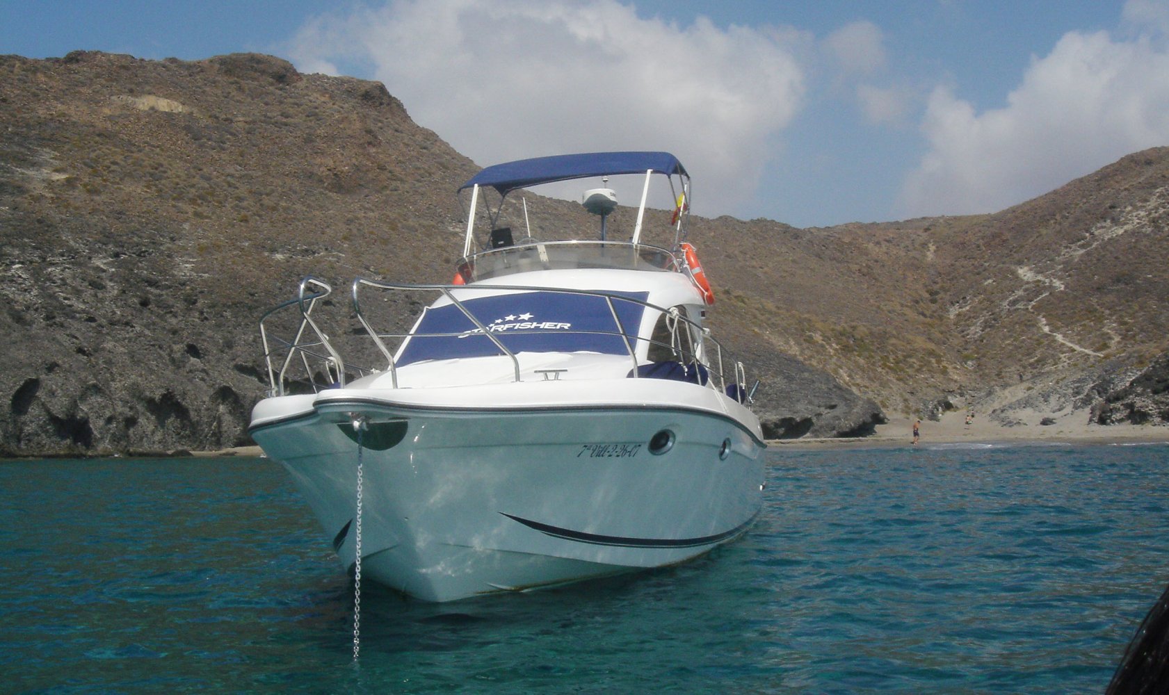 OPPORTUNITY! Family powerboat, hardly used, ready to sail the med. Powerful Yanmar diesel engines provide 630 Hp and guarantees speeds up to 25 knots. Call us for a visit in sunny Marina Aguadulce, Spain, Frans Bennekers, tel. +34 629 979 667. OPORTUNIDAD! Barco de motor familiar, ideal para salidas por la costa y travesias. 2 Motores Yanmar proporcionan 630 caballos de potencia. Llamanos para una visita en Aguadulce, Almería. Pregunta por Frans Bennekers, tel. (España) 629 979 667.