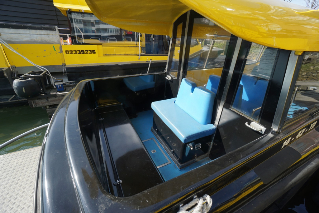 Met gepaste trots mogen wij u een Rotterdams icoon aanbieden; de beroemde zwart met gele watertaxi! Het bedrijf gaat een aantal schepen verkopen en daarmee heeft u de kans om niet alleen een icoon aan te kopen maar vooral ook een super robuust en solide schip. Ideaal natuurlijk voor personen vervoer in een waterrijke omgeving om bijvoorbeeld klanten van en naar een horeca gelegenheid te vervoeren of bijvoorbeeld personeel van een havenbedrijf. Eigenlijk maakt het niet uit, als u mensen wilt vervoeren over het water op een leuke, veilige en snelle manier, dan is deze watertaxi de ideale oplossing. Er kunnen 8 personen mee op de praktische en comfortabele zittingen. En er is zelfs gedacht aan zitplaatsen buiten. Super leuk natuurlijk op een mooie dag.