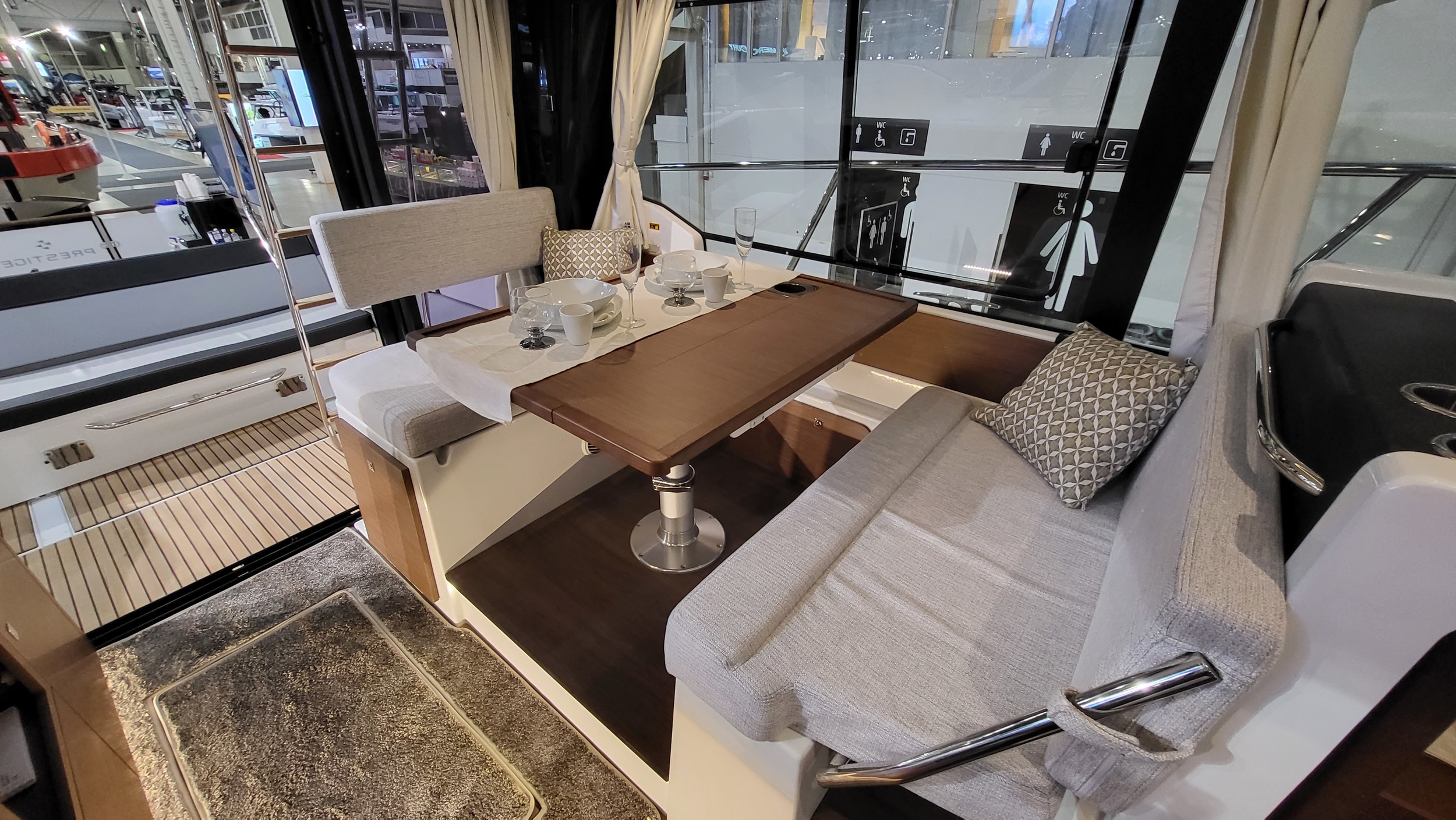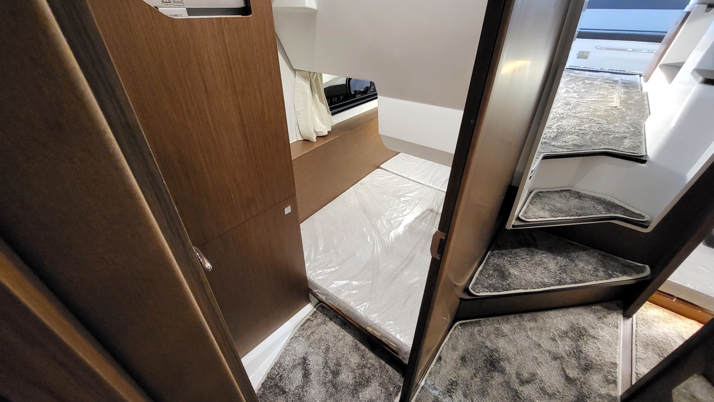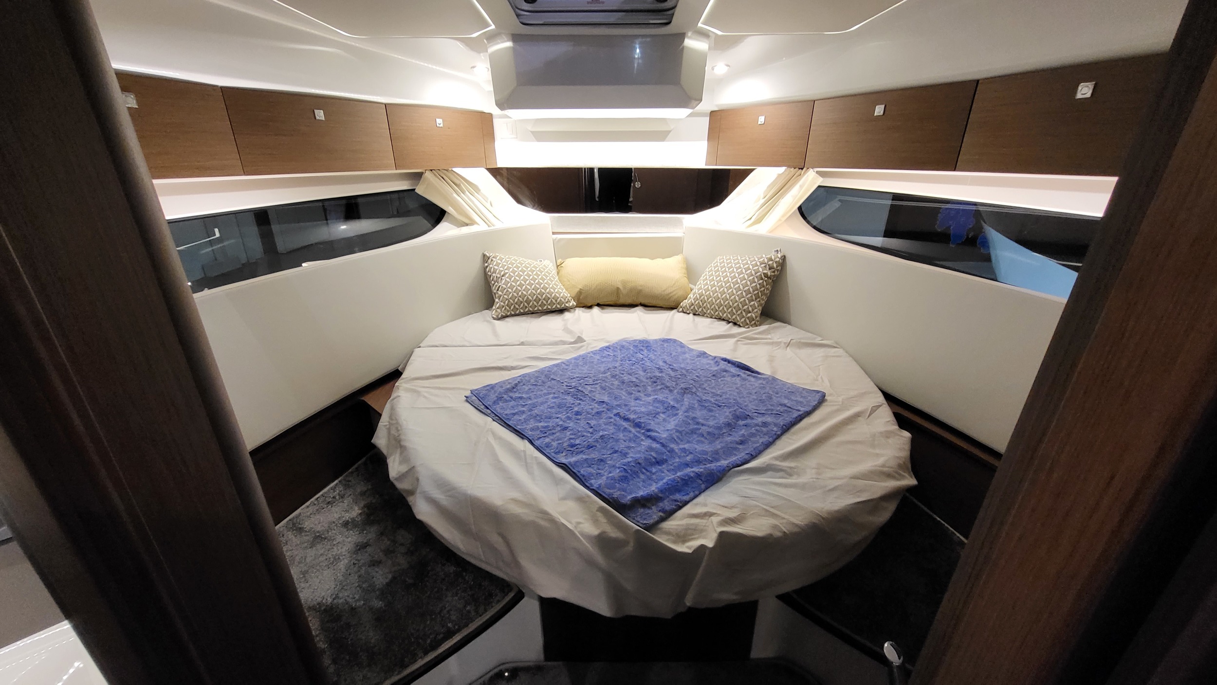 All factory standard equipment + extras: @TRIM LEVEL PREMIERE FLY: @- ELECTRIC BOW WINDLASS @- COCKPIT SHOWER (hot & cold water) @- AMBIANCE LED LIGHTS (SALOON & CABINS) @- LED LIGHTS IN COCKPIT FLOOR @- LED LIGHTS IN FLYBRIDGE FLOOR @- ELECTRICAL TRIM TABS LENCO WITH DOUBLE CONTROL (WHEELHOUSE AND FLY) @- 220V WATER HEATER @- INTERIOR CURTAINS @- STERN MOORING CLEATS FOR CROSS DOCKING @- 2 REAR COCKPIT WORKLIGHTS @COMFORT PACK FLY VERSION INCLUDES: @- FRESH WATER ELECTRIC TOILET in lieu of standard marine toilet @- CONNECTOR FOR DIRECT WATER SUPLY FROM SHORE @- CONTROL OF WINDLASS FROM PILOT STATION AND FROM FLY @NAVIGATION PACK LOWRANCE LIVE 12/16 @- 2X HDS LIVE 12" & 16" DISPLAY @- TRANSDUCER ACTIVE IMAGING 3-1 (in lieu standard) @MOORING KIT @ANCHORING KIT @BOW LADDER WITH WOODEN PLATFORM @2 WOOD COCKPIT TABLES FOR FLYBRIDGE VERSION @FLYBRIDGE TABLE + CUSHION FOR LONG CHAIR @BOW THRUSTER WITH DOUBLE CONTROL (FLY AND WHEELHOUSE) @ADDITIONAL WATER TANK (100 LITERS) @DECK SEARCHLIGHT @ADDITIONAL FRIDGE IN STORAGE COMPARTMENT / THIRD CABIN @PRE-FIT FOR MICROWAVE OVEN 230V @DIESEL FORCED AIR HEATING @MATTRESS FOR 3RD CABIN @DOUBLE BERTH COMPLEMENT IN SALOON @OVERHEAD STORAGE LOCKER IN THE GALLEY @OVERHEAD LOCKER AT PORTSIDE IN SALOON @OVERHEAD LOCKERS IN THE FRONT CABIN @REMOVABLE CARPET SET IN WHEELHOUSE AND IN CABINS @TV ANTENNA @PRE-WIRING TV 220V @HORN IN WHEELHOUSE AND ON FLY @MERCURY VESSELVIEW 403 @MERCURY VESSELVIEW MOBILE @ANTIFOULING