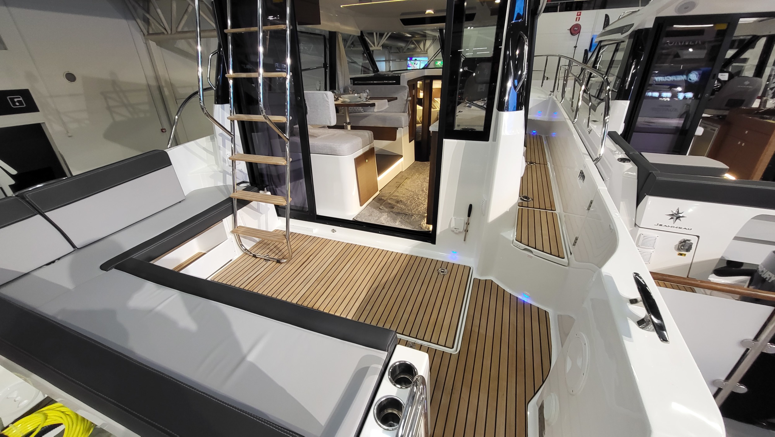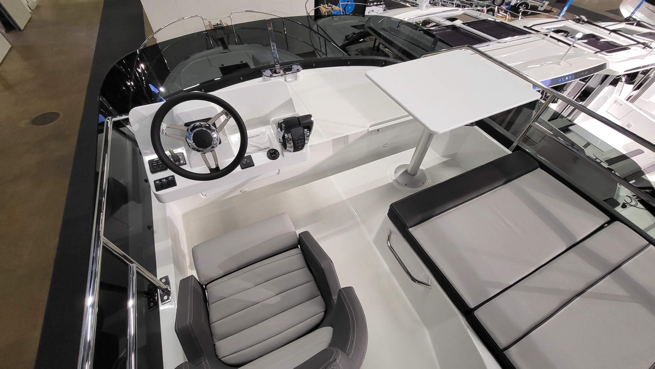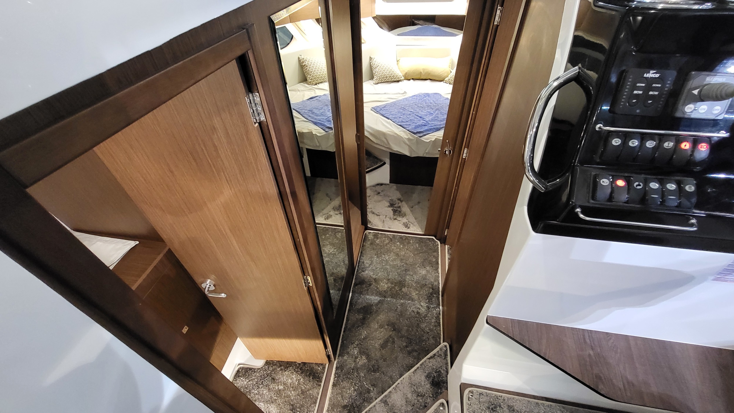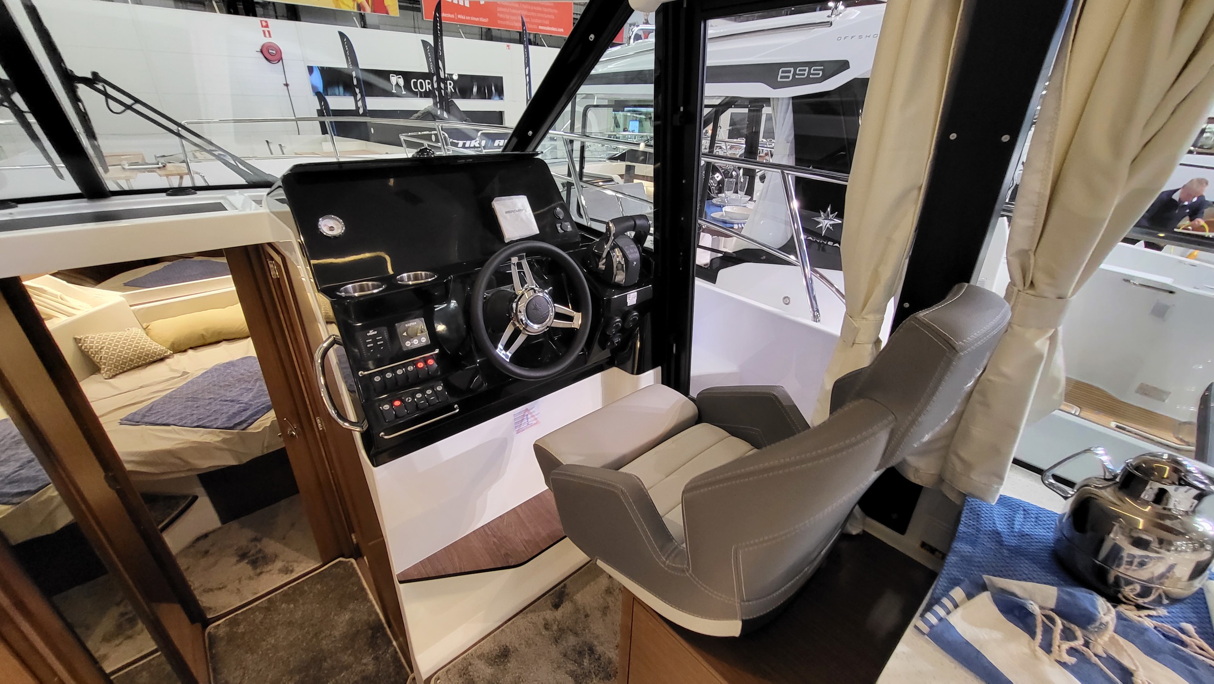 All factory standard equipment + extras: @TRIM LEVEL PREMIERE FLY: @- ELECTRIC BOW WINDLASS @- COCKPIT SHOWER (hot & cold water) @- AMBIANCE LED LIGHTS (SALOON & CABINS) @- LED LIGHTS IN COCKPIT FLOOR @- LED LIGHTS IN FLYBRIDGE FLOOR @- ELECTRICAL TRIM TABS LENCO WITH DOUBLE CONTROL (WHEELHOUSE AND FLY) @- 220V WATER HEATER @- INTERIOR CURTAINS @- STERN MOORING CLEATS FOR CROSS DOCKING @- 2 REAR COCKPIT WORKLIGHTS @COMFORT PACK FLY VERSION INCLUDES: @- FRESH WATER ELECTRIC TOILET in lieu of standard marine toilet @- CONNECTOR FOR DIRECT WATER SUPLY FROM SHORE @- CONTROL OF WINDLASS FROM PILOT STATION AND FROM FLY @NAVIGATION PACK LOWRANCE LIVE 12/16 @- 2X HDS LIVE 12" & 16" DISPLAY @- TRANSDUCER ACTIVE IMAGING 3-1 (in lieu standard) @MOORING KIT @ANCHORING KIT @BOW LADDER WITH WOODEN PLATFORM @2 WOOD COCKPIT TABLES FOR FLYBRIDGE VERSION @FLYBRIDGE TABLE + CUSHION FOR LONG CHAIR @BOW THRUSTER WITH DOUBLE CONTROL (FLY AND WHEELHOUSE) @ADDITIONAL WATER TANK (100 LITERS) @DECK SEARCHLIGHT @ADDITIONAL FRIDGE IN STORAGE COMPARTMENT / THIRD CABIN @PRE-FIT FOR MICROWAVE OVEN 230V @DIESEL FORCED AIR HEATING @MATTRESS FOR 3RD CABIN @DOUBLE BERTH COMPLEMENT IN SALOON @OVERHEAD STORAGE LOCKER IN THE GALLEY @OVERHEAD LOCKER AT PORTSIDE IN SALOON @OVERHEAD LOCKERS IN THE FRONT CABIN @REMOVABLE CARPET SET IN WHEELHOUSE AND IN CABINS @TV ANTENNA @PRE-WIRING TV 220V @HORN IN WHEELHOUSE AND ON FLY @MERCURY VESSELVIEW 403 @MERCURY VESSELVIEW MOBILE @ANTIFOULING