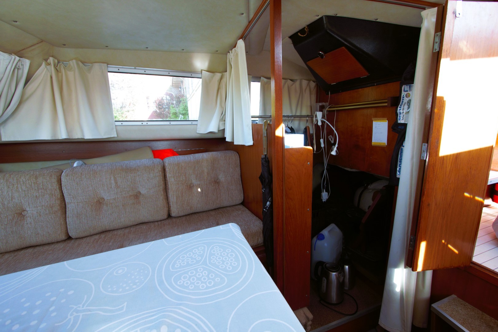 In het vooronder vind u een royale en ruime rondzit die tot een tweepersoonsbed is om te bouwen. Tevens vindt u hier een toilet en extra kooi met slaapplaats.