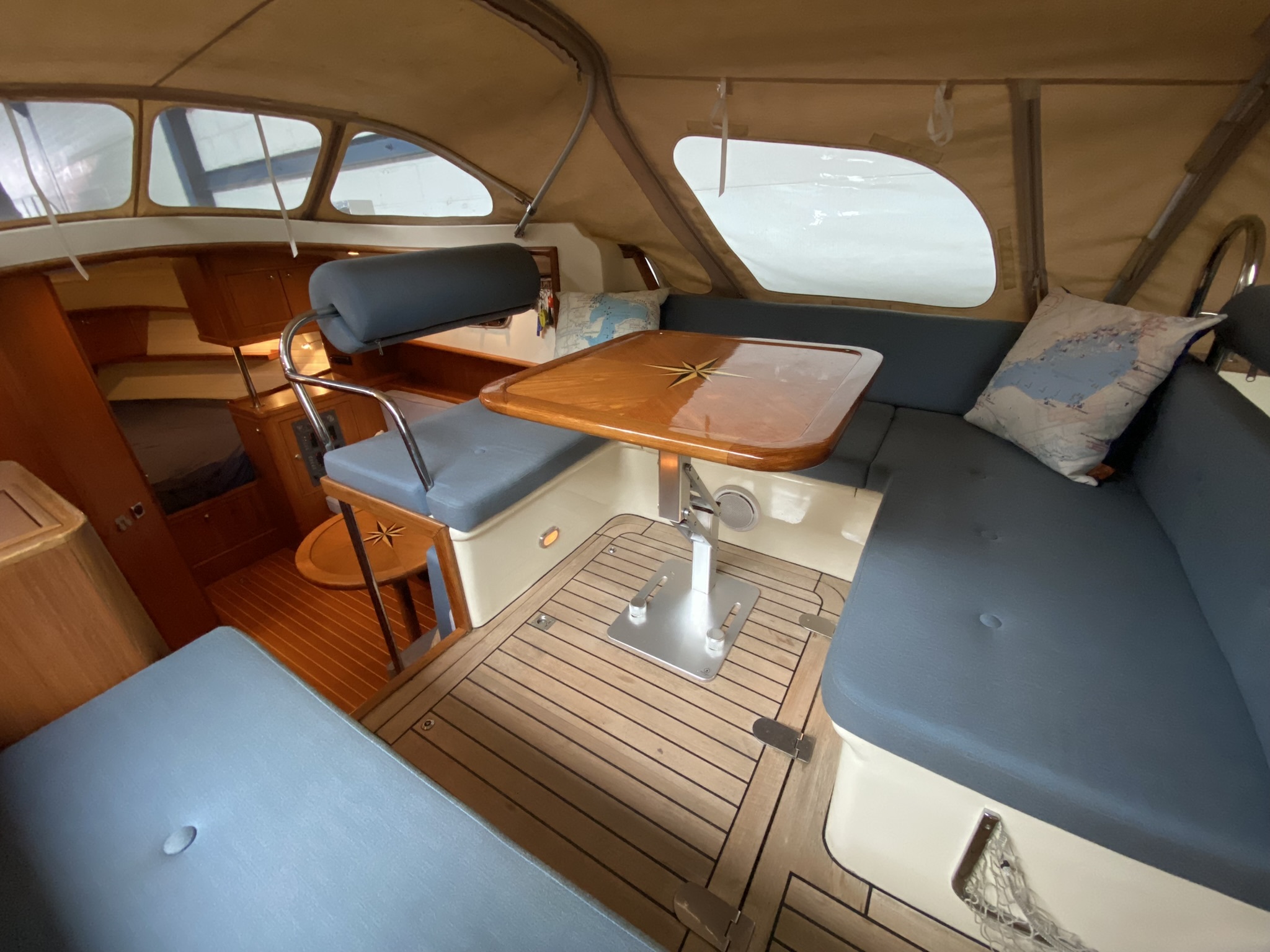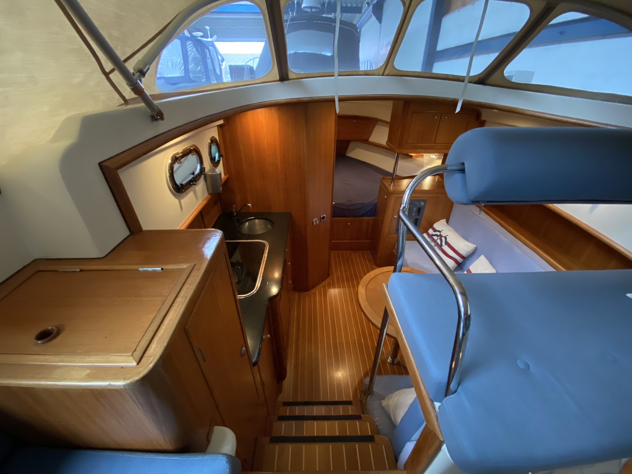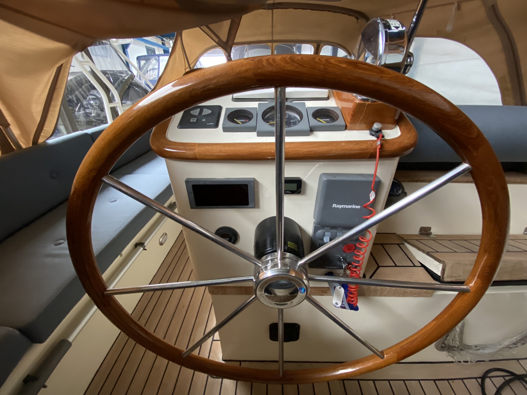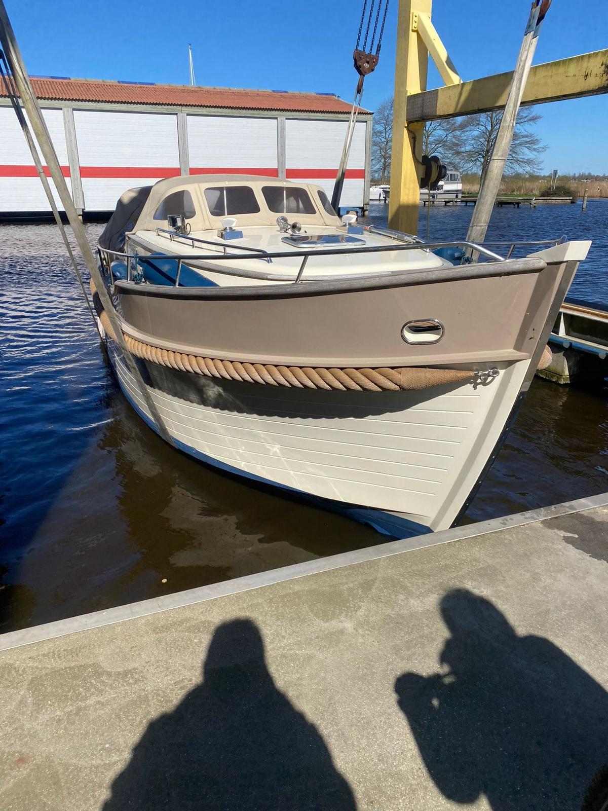 Newport Bass 900 uit 2008 Model: NEWPORT BASS 900 Type: motorjacht LOA (m): 9,00 LWL (m): 7,65 Breedte (m): 3,12 Diepgang (m): 1,00 Doorvaarthoogte (m): 1,85 Bouwjaar: 2008 Te water gelaten: 2008 Bouwer: Menken Maritiem B.V. - Sassenheim Land: Nederland Ontwerper: Martin de Jager Yachtdesign Waterverplaatsing (t): 4,5 CE-norm: C Rompmateriaal: GRP V-vormige romp Materiaal opbouw: GVK Stootlijst: fendertouw Dekmateriaal: GVK Dekafwerking: antislip ingegoten Bovenbouw dekafwerking: verf Kuipdekafwerking: teak Dorades: 2 x RVS dorades Dekluik: 2 x lewmar dekluik Patrijspoorten: 4 x RVS patrijspoorten Isolatie: steenwol Brandstoftank (liter): 260 liter (2 x 130L) Niveau-indicator (brandstoftank): VDO Zoetwatertank (liter): 1x 140 liter Niveau-indicator (zoetwater): VDO Vuilwatertank (liter): 1 x 42 liter Niveau-indicator (zwartwater): Vetus Afzuiging vuilwatertank: dekafzuiging + pomp Stuurwiel: - Stazo stuur hydraulisch Newport-Bass 900, Deze Newport Bass is gebouwd door Menken maritiem en ontworpen door Martin de Jager Yacht-ontwerp. Een goed gebouwde kajuitsloep. Uitgerust met een Yanmar dieselmotor en Vetus boegschroef. Geniet van de ruimte in de kuip met stuurstand en koelkast. Cabine met V-slaapplaats, bank en kombuis.Deze Newport Bass is vaarklaar.