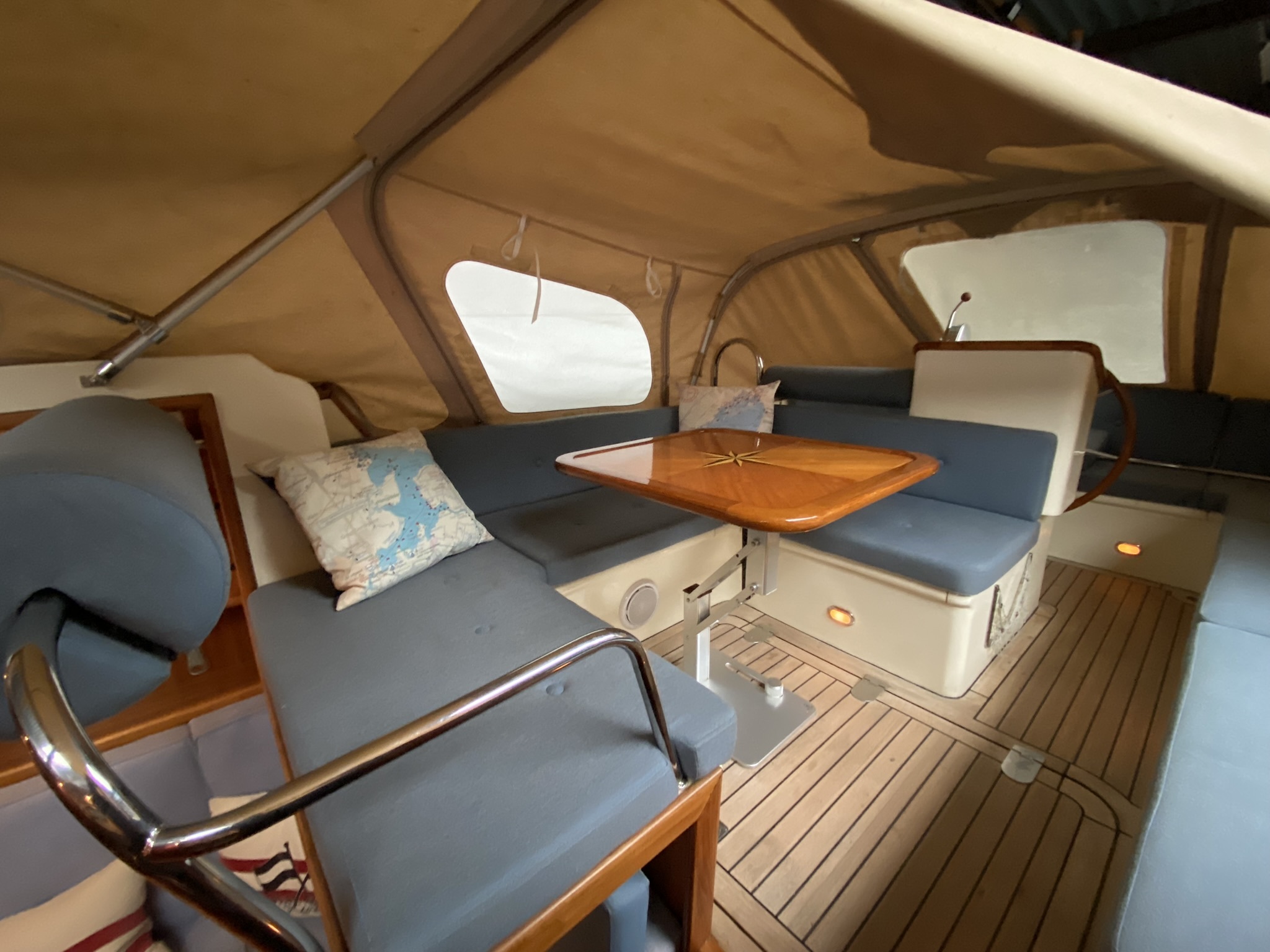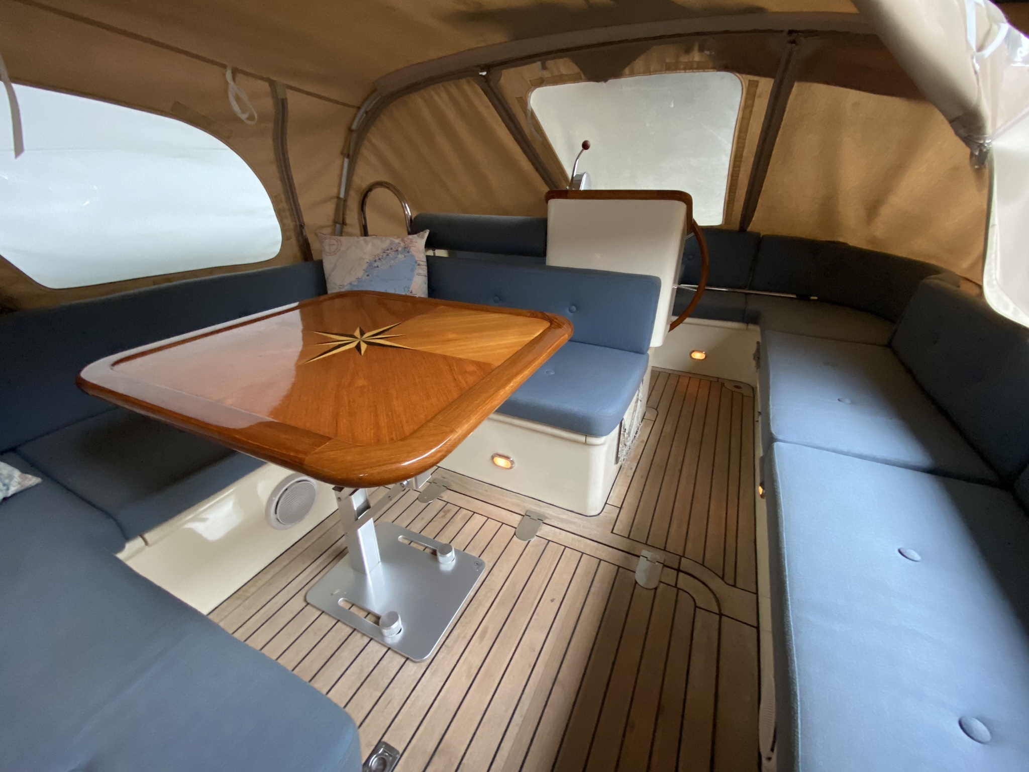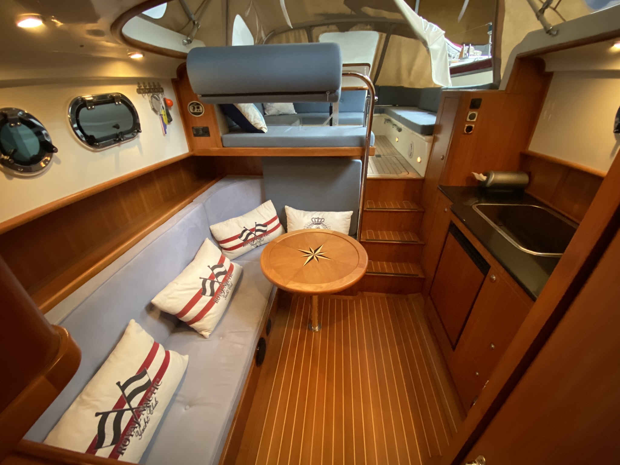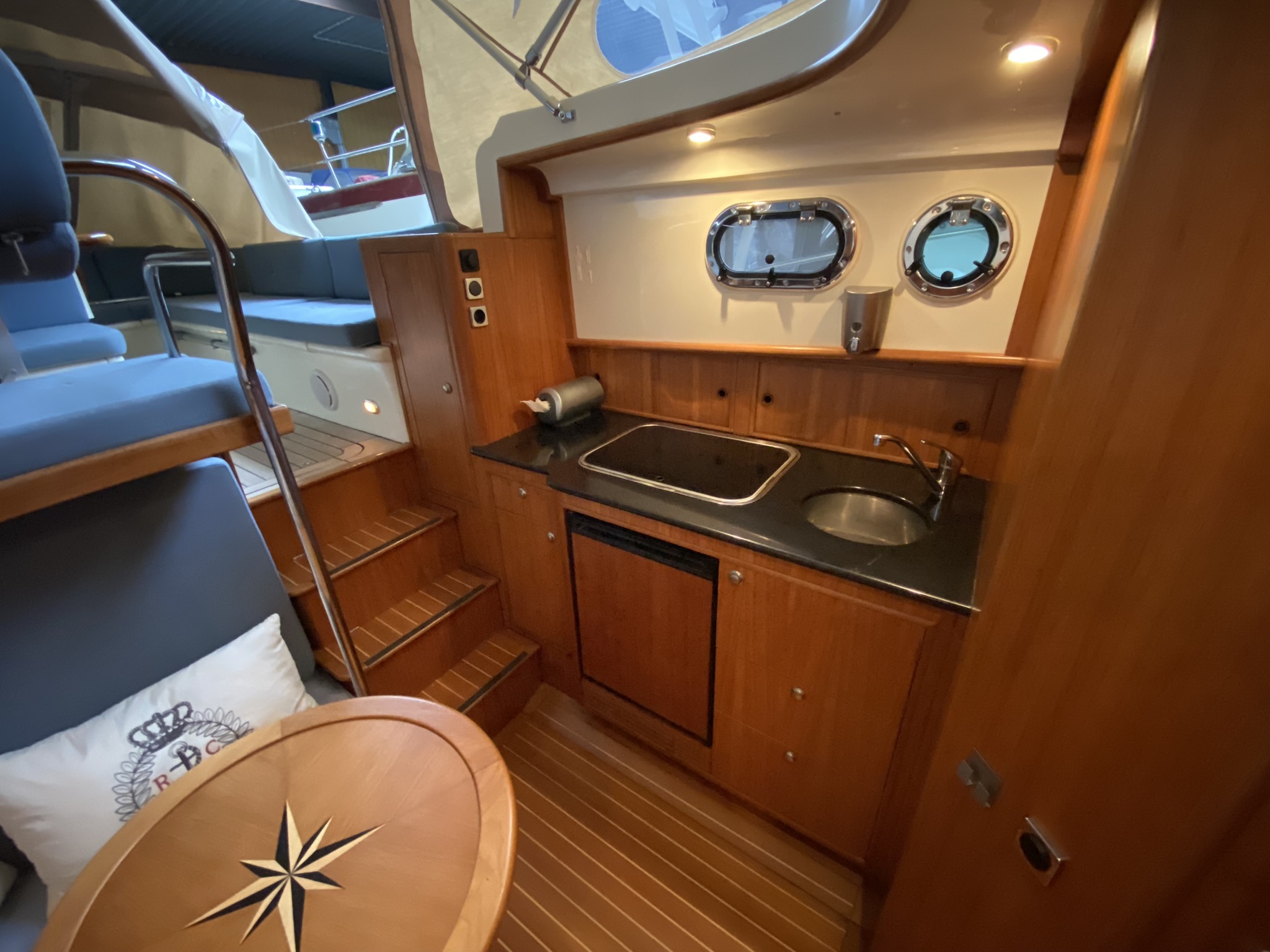 Newport Bass 900 uit 2008 Model: NEWPORT BASS 900 Type: motorjacht LOA (m): 9,00 LWL (m): 7,65 Breedte (m): 3,12 Diepgang (m): 1,00 Doorvaarthoogte (m): 1,85 Bouwjaar: 2008 Te water gelaten: 2008 Bouwer: Menken Maritiem B.V. - Sassenheim Land: Nederland Ontwerper: Martin de Jager Yachtdesign Waterverplaatsing (t): 4,5 CE-norm: C Rompmateriaal: GRP V-vormige romp Materiaal opbouw: GVK Stootlijst: fendertouw Dekmateriaal: GVK Dekafwerking: antislip ingegoten Bovenbouw dekafwerking: verf Kuipdekafwerking: teak Dorades: 2 x RVS dorades Dekluik: 2 x lewmar dekluik Patrijspoorten: 4 x RVS patrijspoorten Isolatie: steenwol Brandstoftank (liter): 260 liter (2 x 130L) Niveau-indicator (brandstoftank): VDO Zoetwatertank (liter): 1x 140 liter Niveau-indicator (zoetwater): VDO Vuilwatertank (liter): 1 x 42 liter Niveau-indicator (zwartwater): Vetus Afzuiging vuilwatertank: dekafzuiging + pomp Stuurwiel: - Stazo stuur hydraulisch Newport-Bass 900, Deze Newport Bass is gebouwd door Menken maritiem en ontworpen door Martin de Jager Yacht-ontwerp. Een goed gebouwde kajuitsloep. Uitgerust met een Yanmar dieselmotor en Vetus boegschroef. Geniet van de ruimte in de kuip met stuurstand en koelkast. Cabine met V-slaapplaats, bank en kombuis.Deze Newport Bass is vaarklaar.