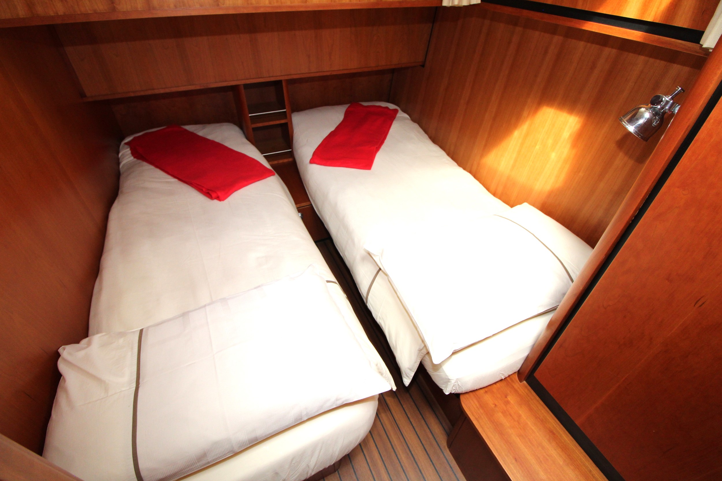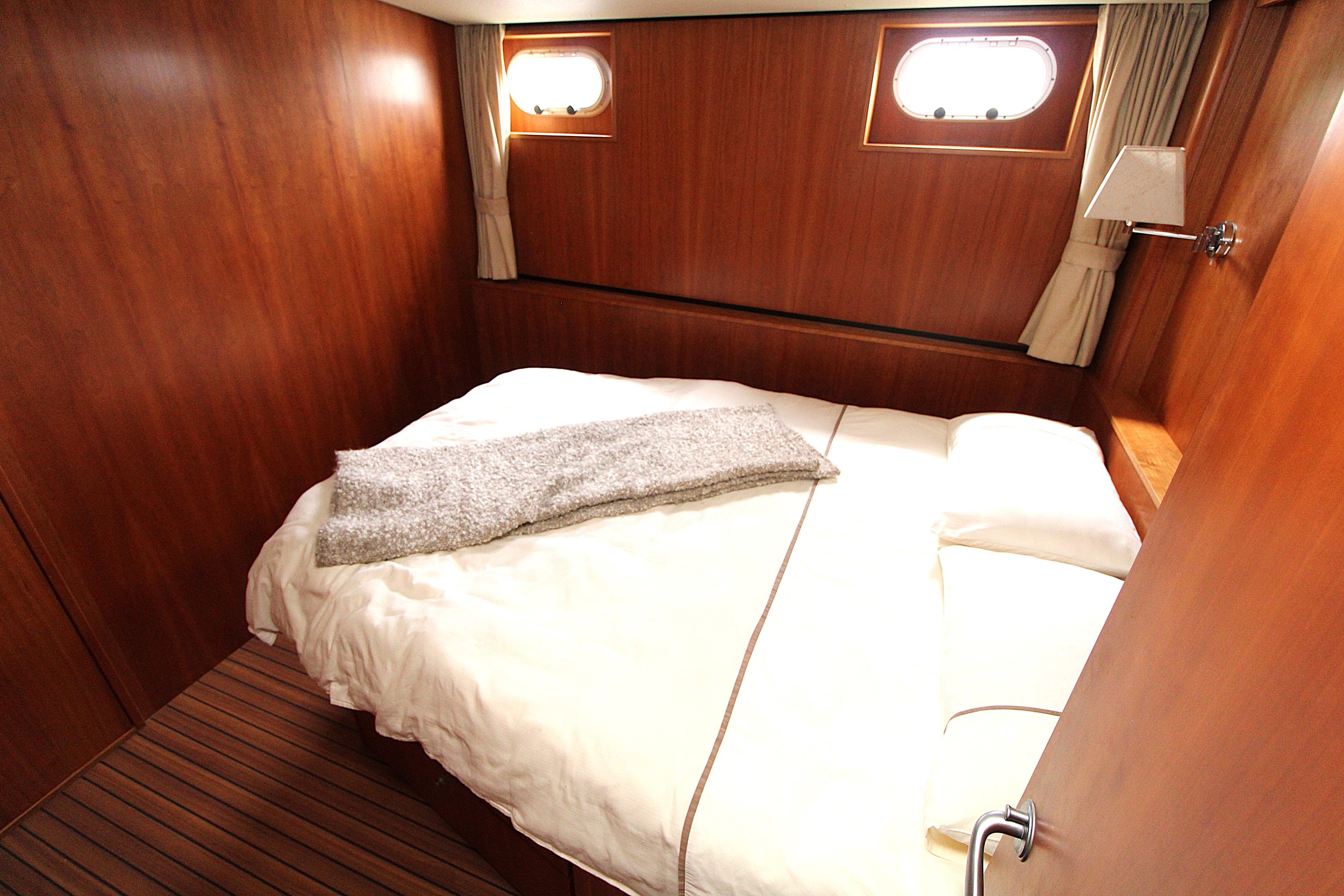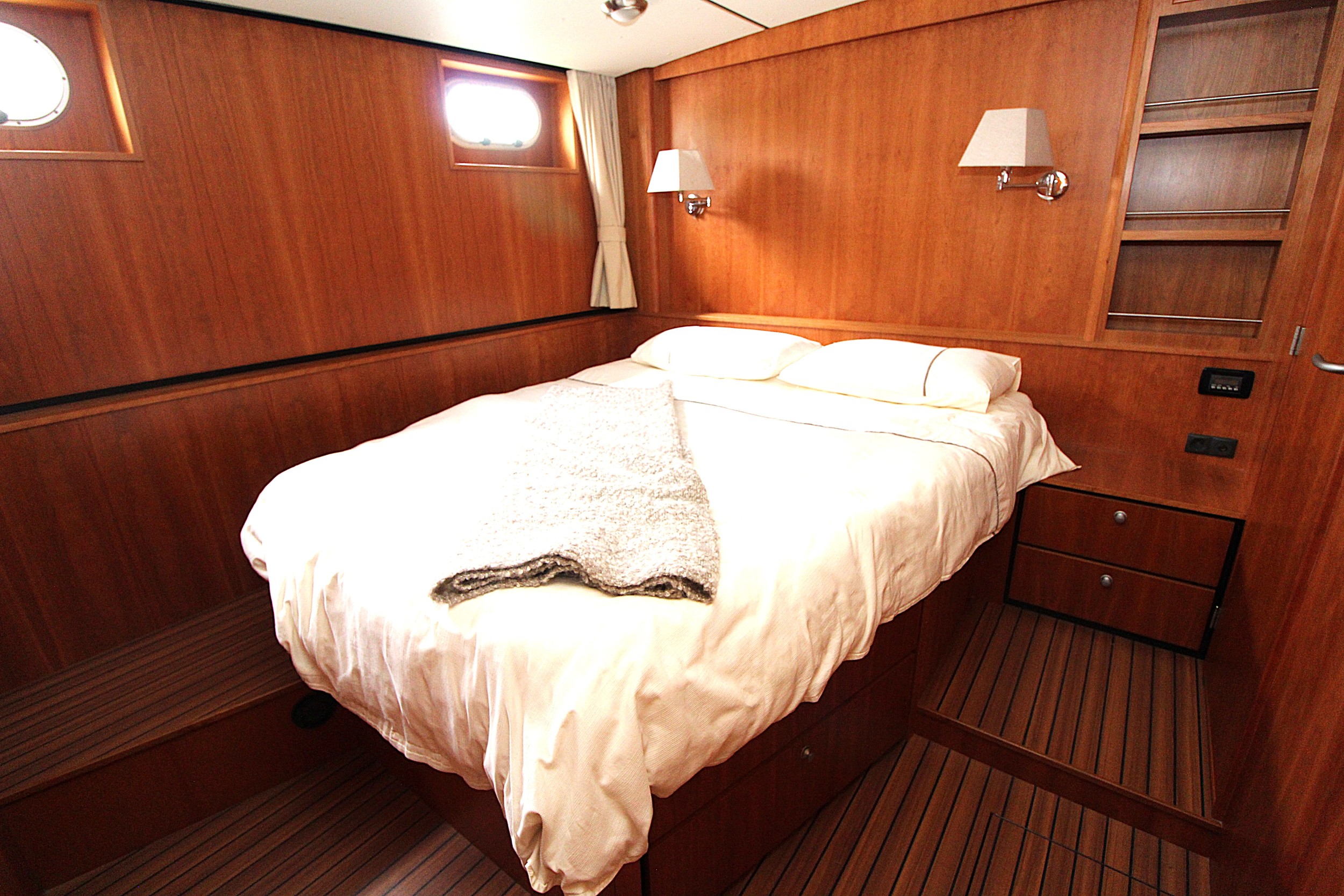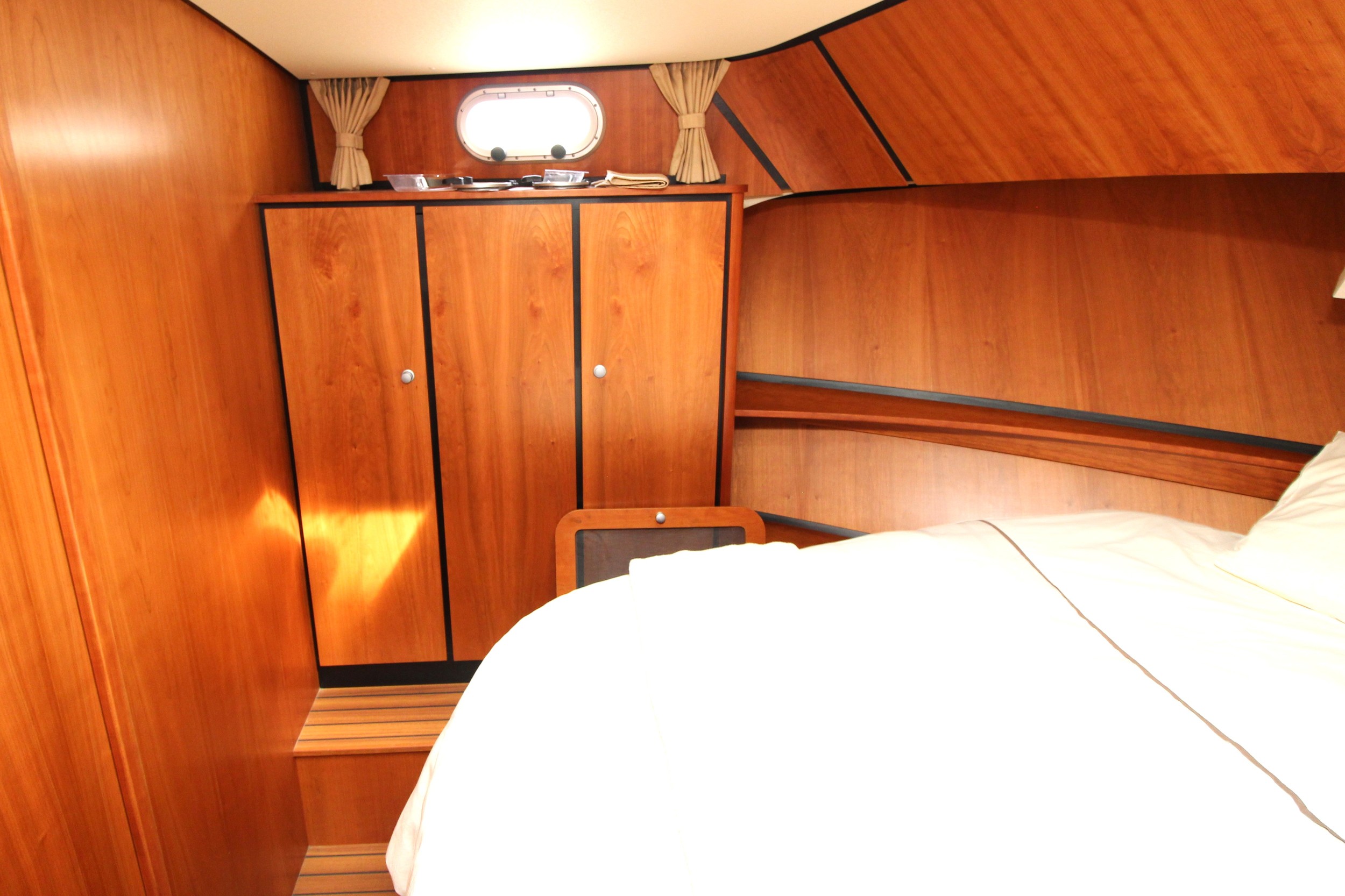 Indeling: De Linssen Grand Sturdy 40.9 AC is ontworpen met een slimme indeling. Aan boord vindt u een ruime salon met panoramisch uitzicht, een volledig uitgeruste keuken, drie luxe hutten en twee badkamers. Voor extra gasten heeft u zelfs de beschikking over het Easy Sleep Convert System.