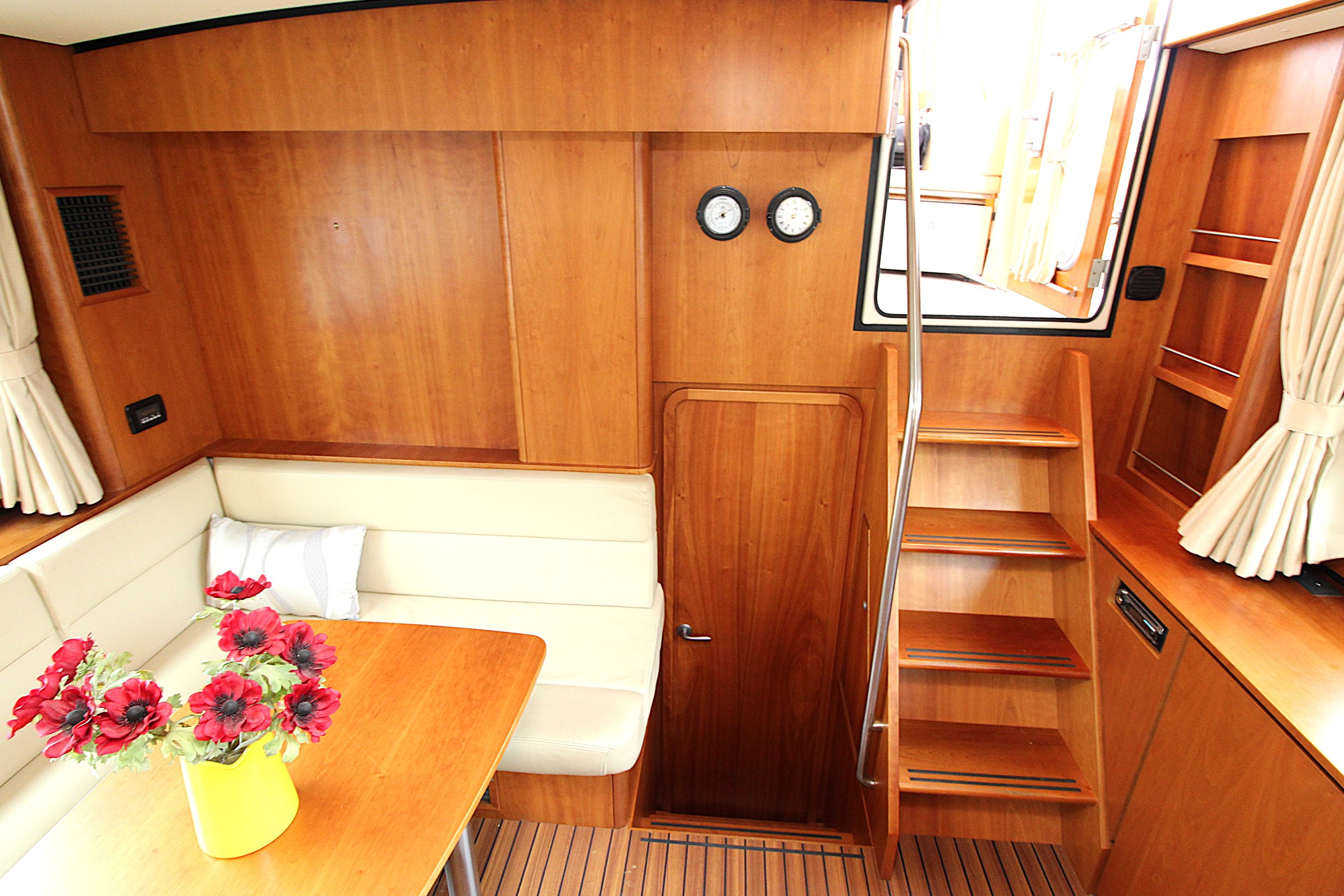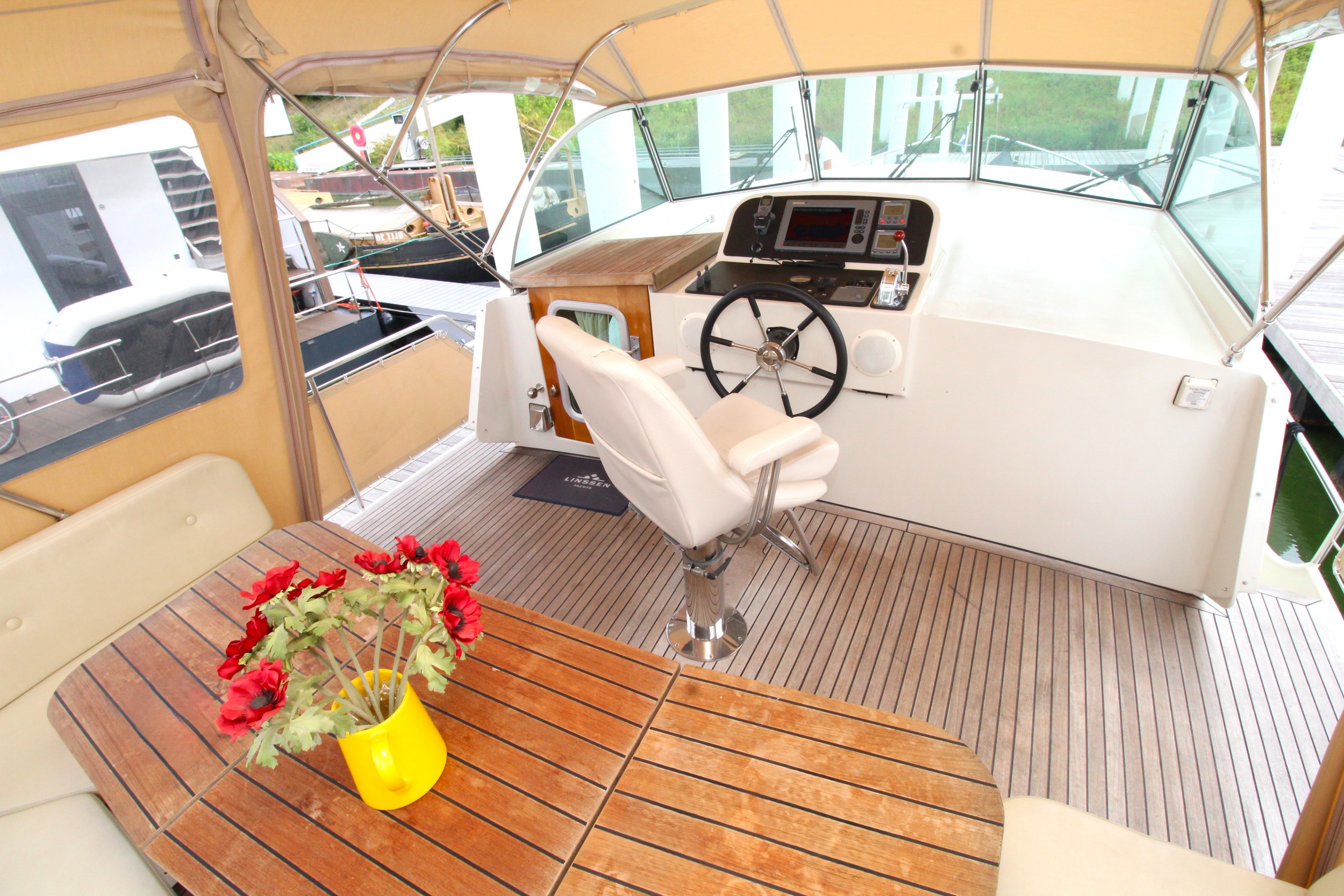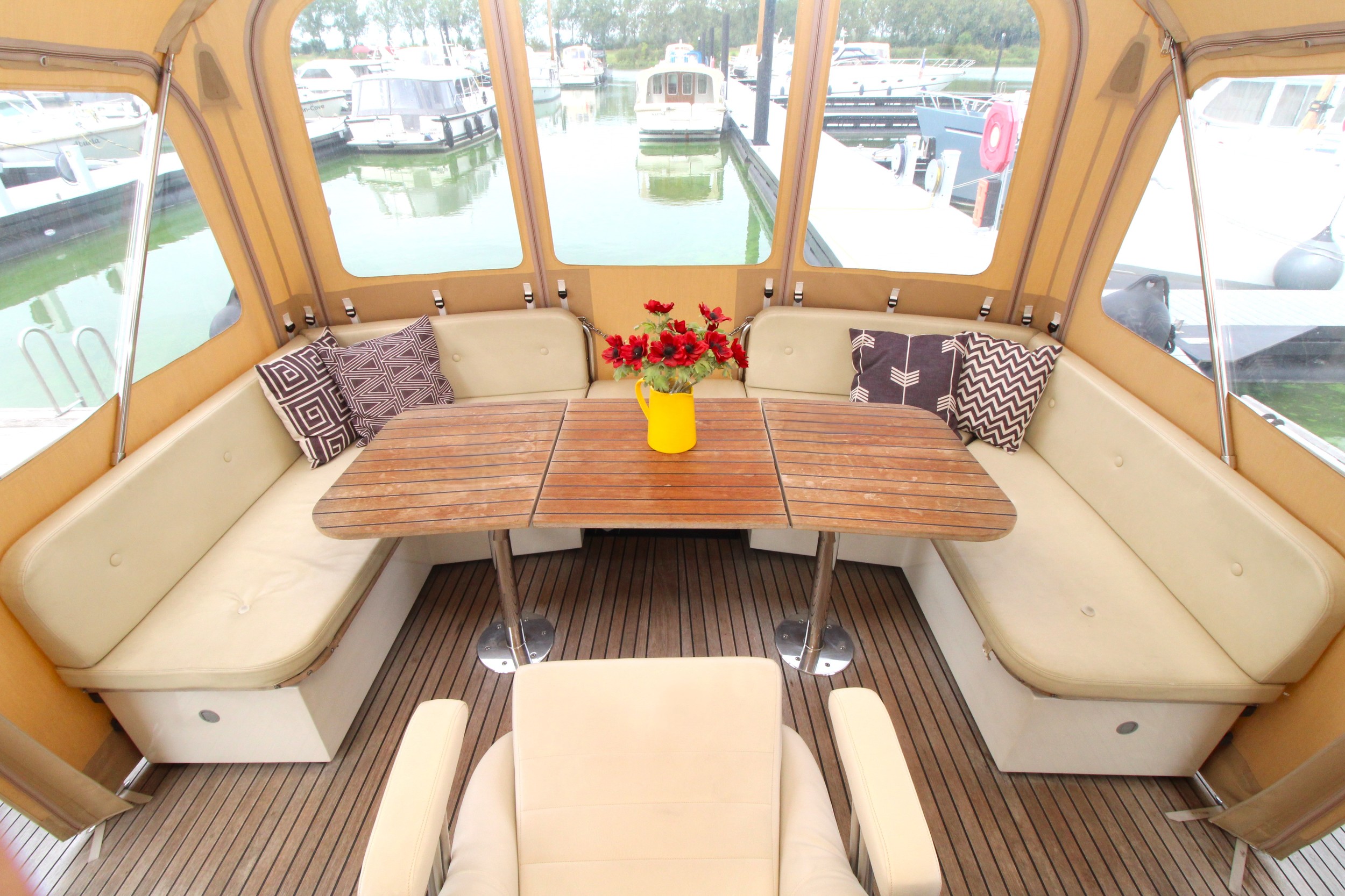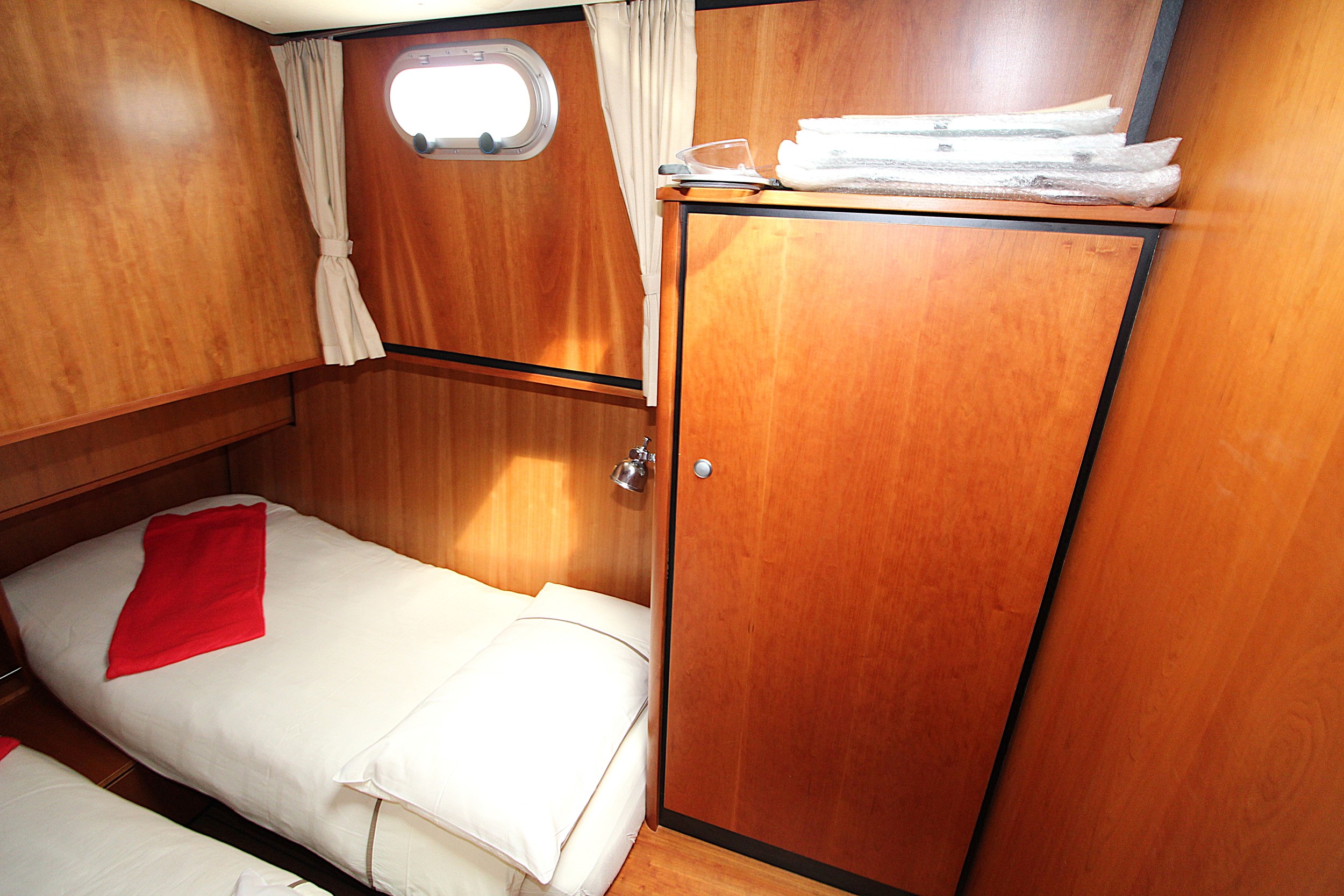 Indeling: De Linssen Grand Sturdy 40.9 AC is ontworpen met een slimme indeling. Aan boord vindt u een ruime salon met panoramisch uitzicht, een volledig uitgeruste keuken, drie luxe hutten en twee badkamers. Voor extra gasten heeft u zelfs de beschikking over het Easy Sleep Convert System.