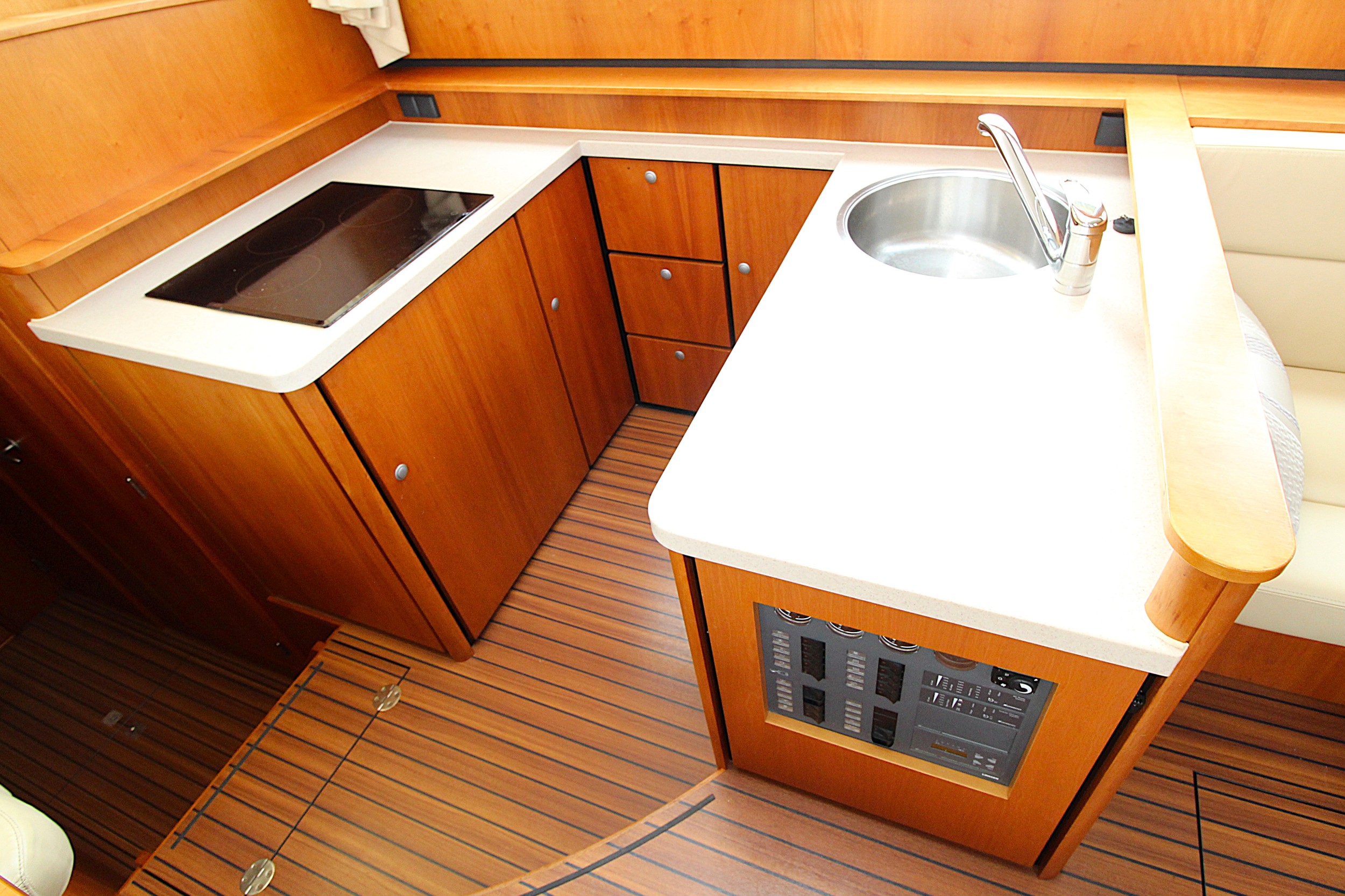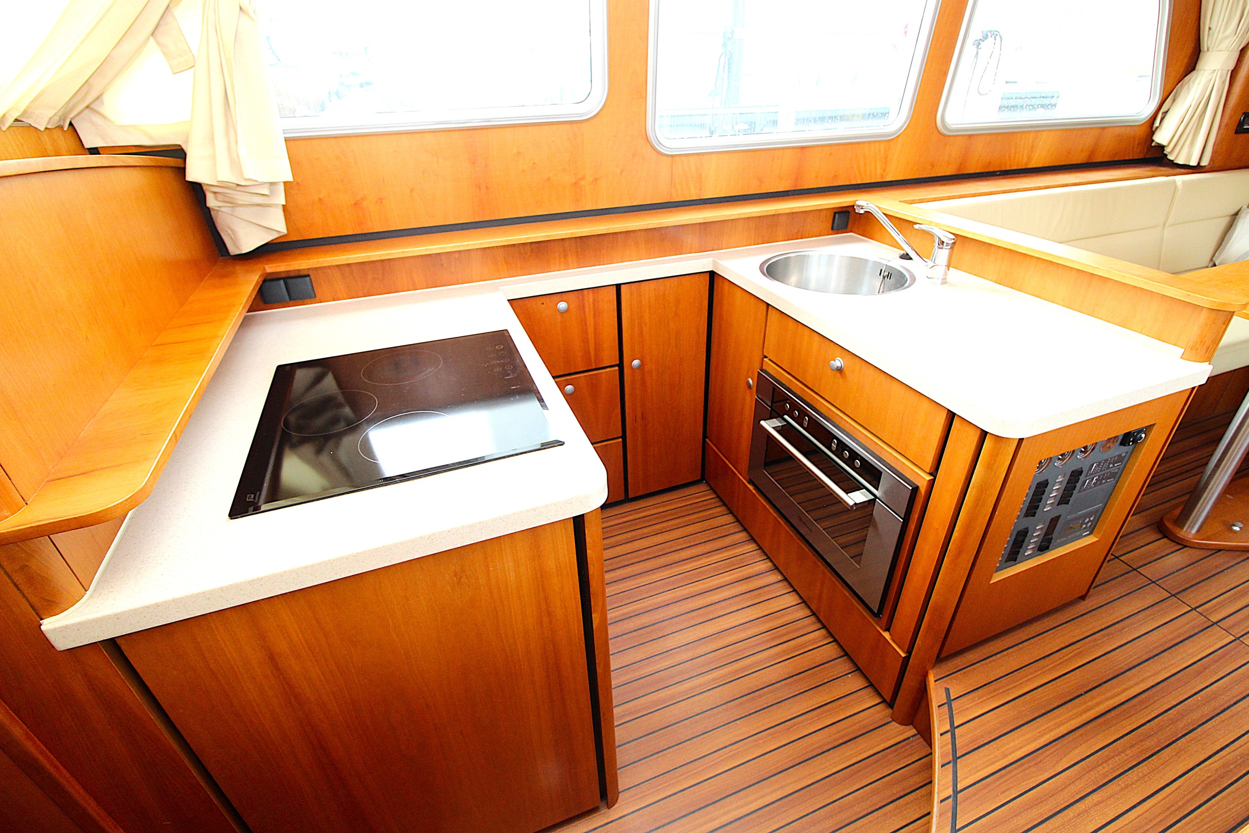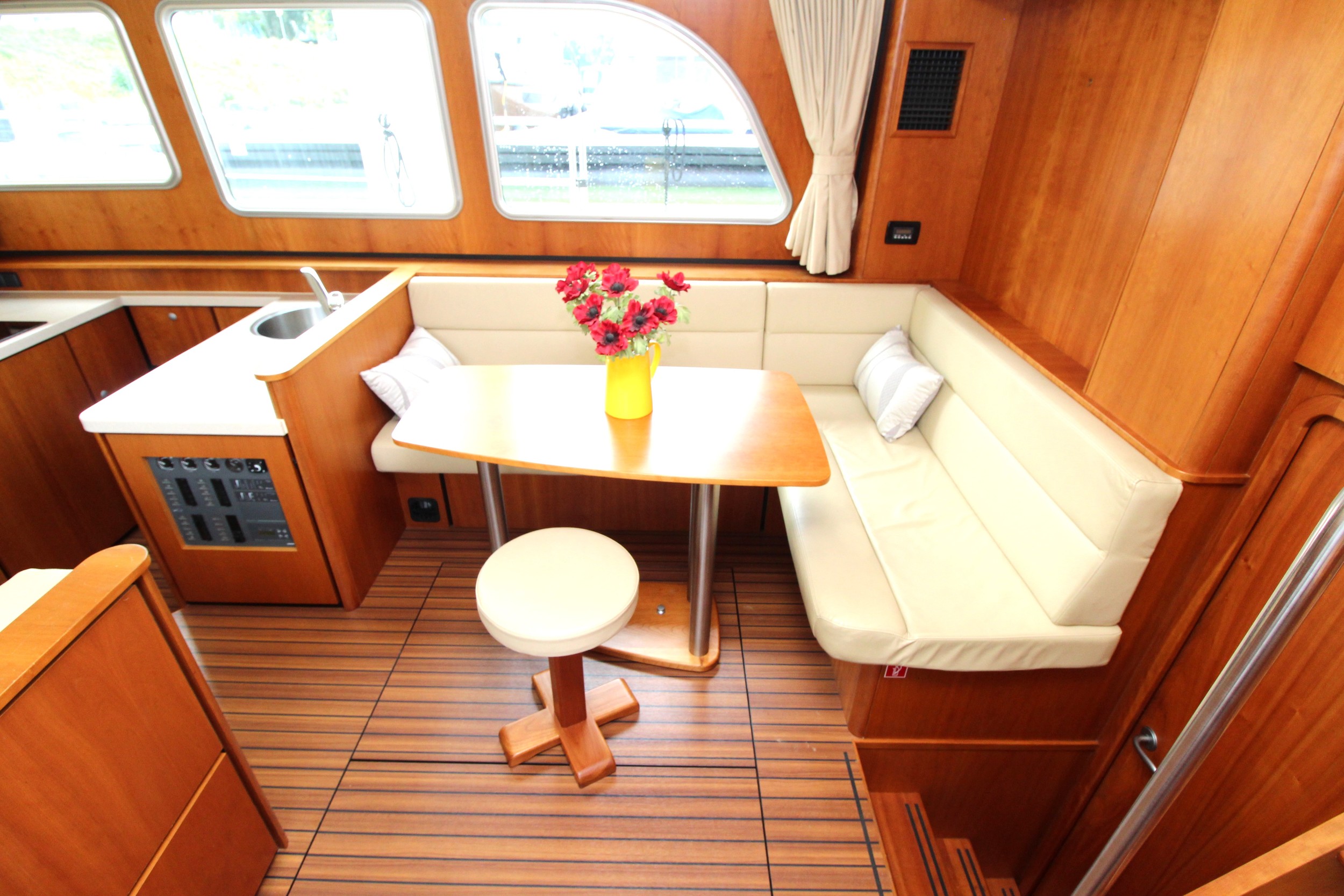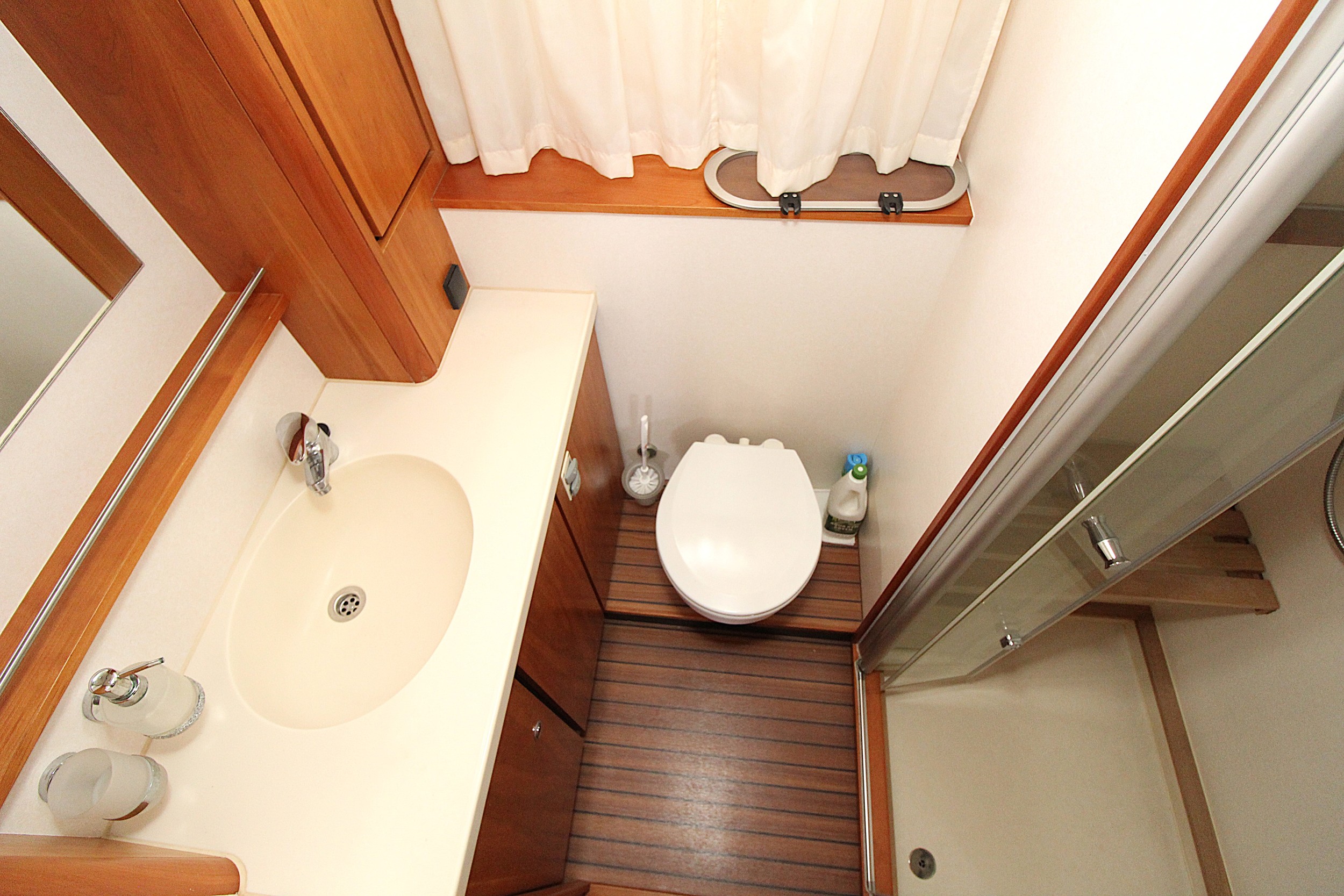 Indeling: De Linssen Grand Sturdy 40.9 AC is ontworpen met een slimme indeling. Aan boord vindt u een ruime salon met panoramisch uitzicht, een volledig uitgeruste keuken, drie luxe hutten en twee badkamers. Voor extra gasten heeft u zelfs de beschikking over het Easy Sleep Convert System.