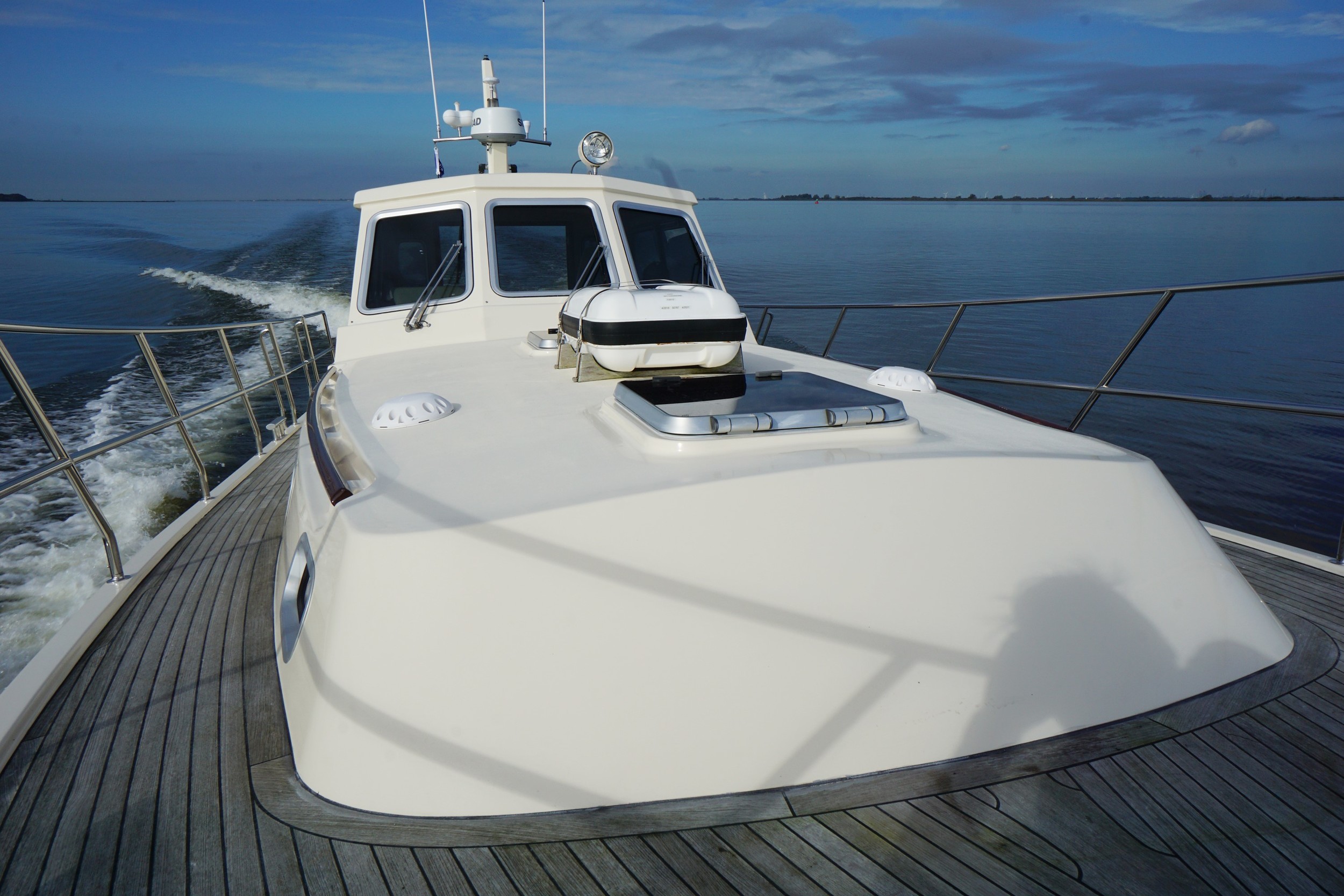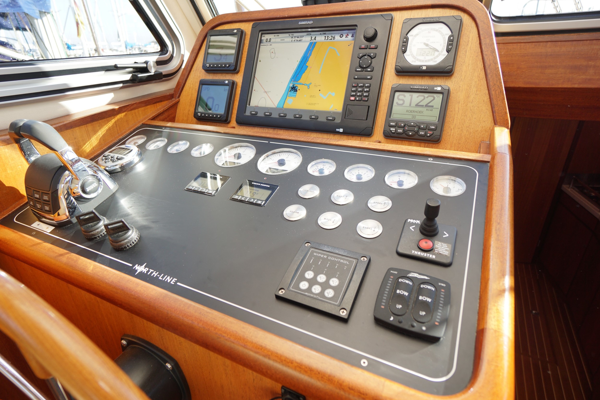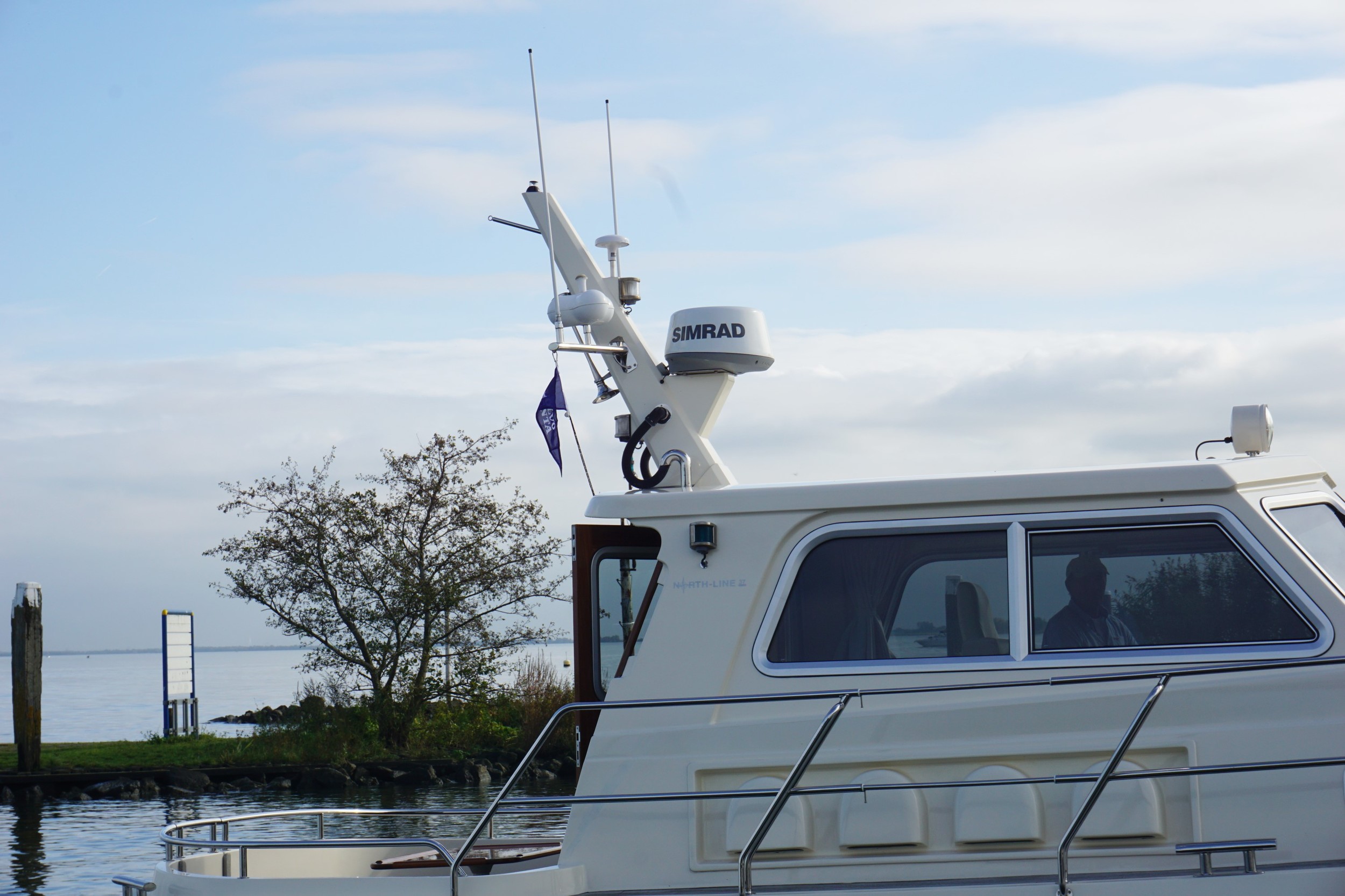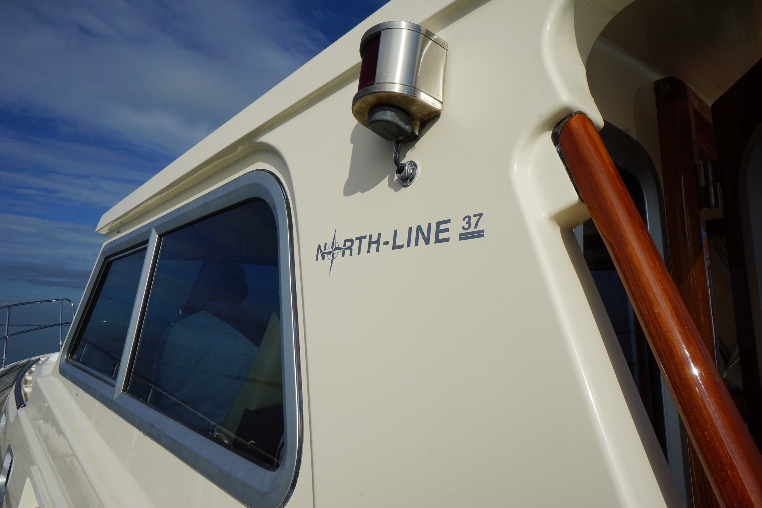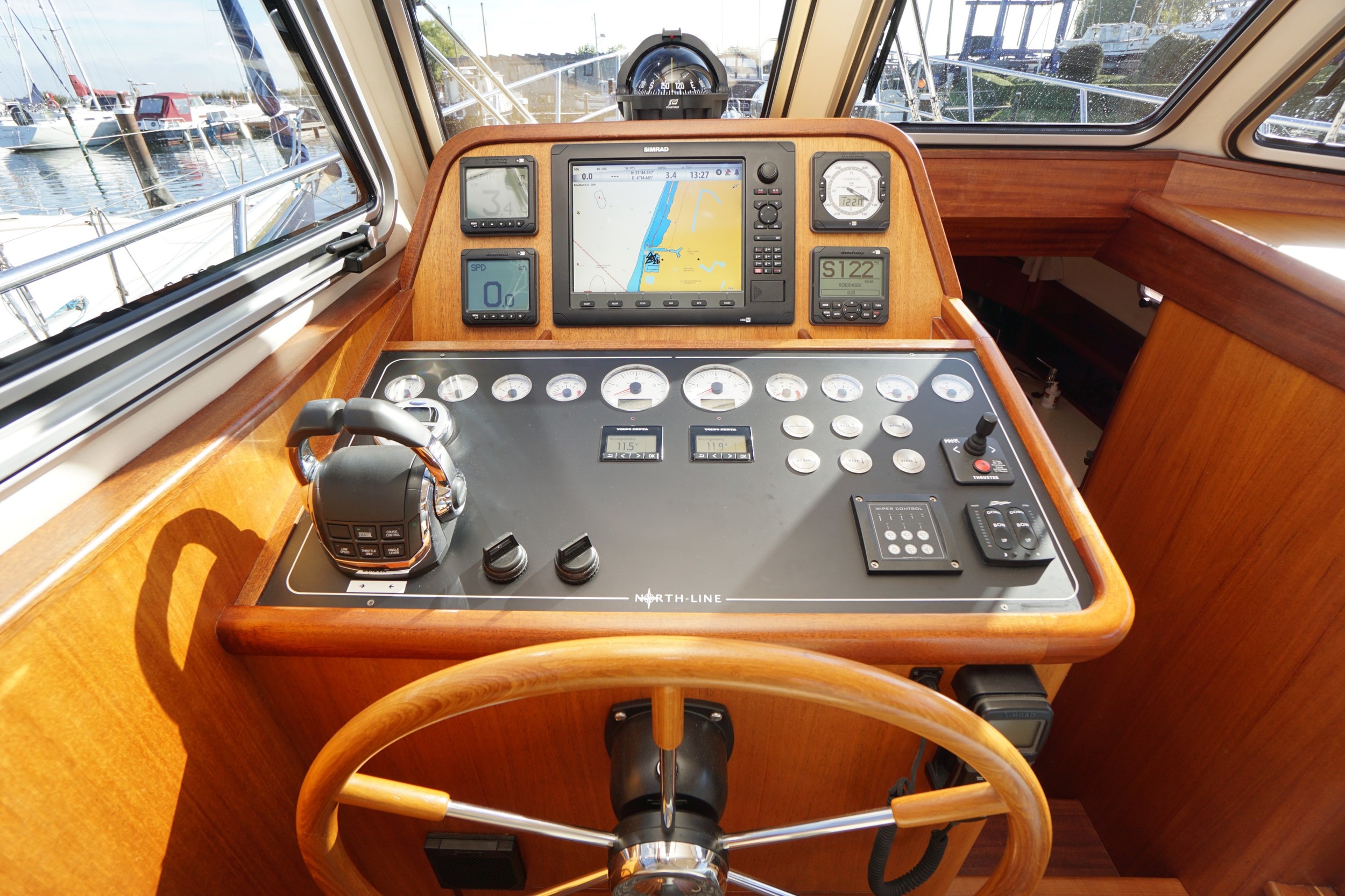Deze North-Line is voorzien van twee sterke Volvo Penta D6-330 motoren (ca. 645 draaiuren), boegschroef, radar, stuurautomaat, twee dubbele hutten en ga zo maar door.